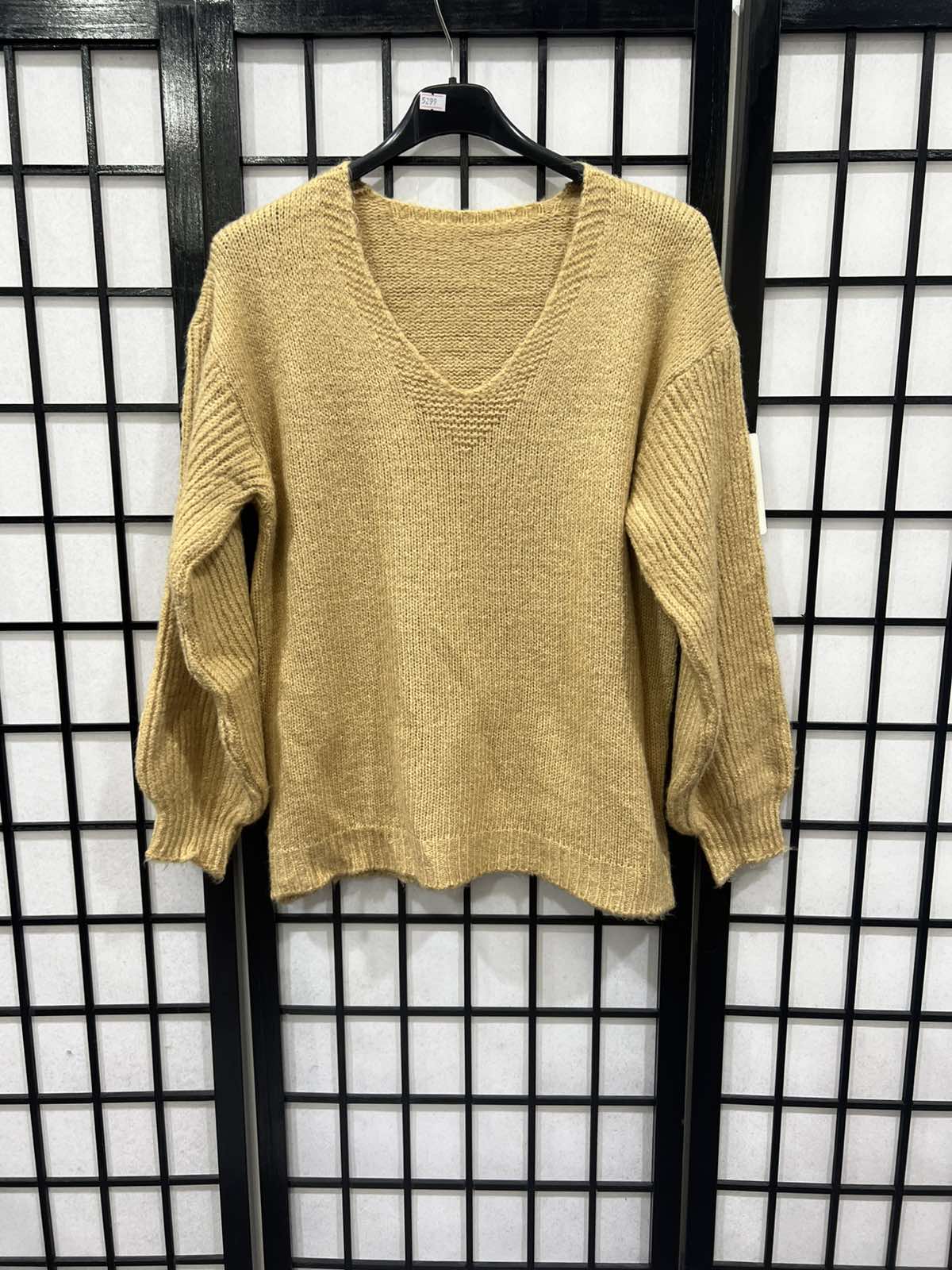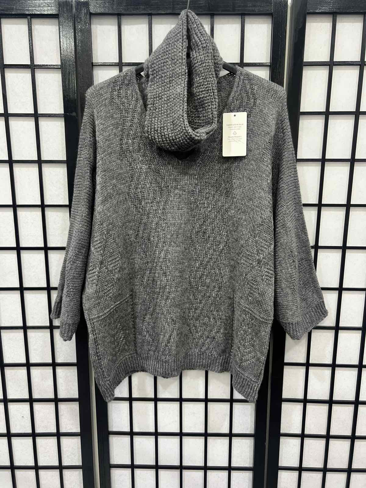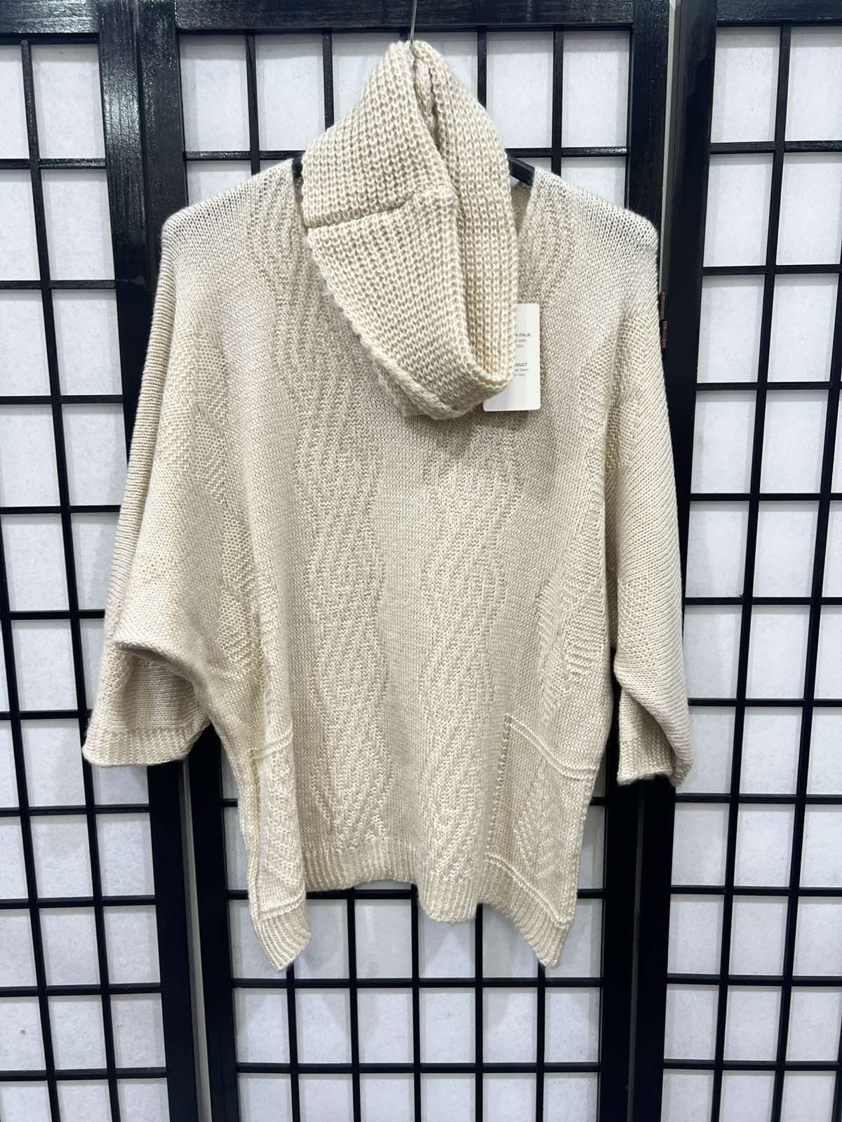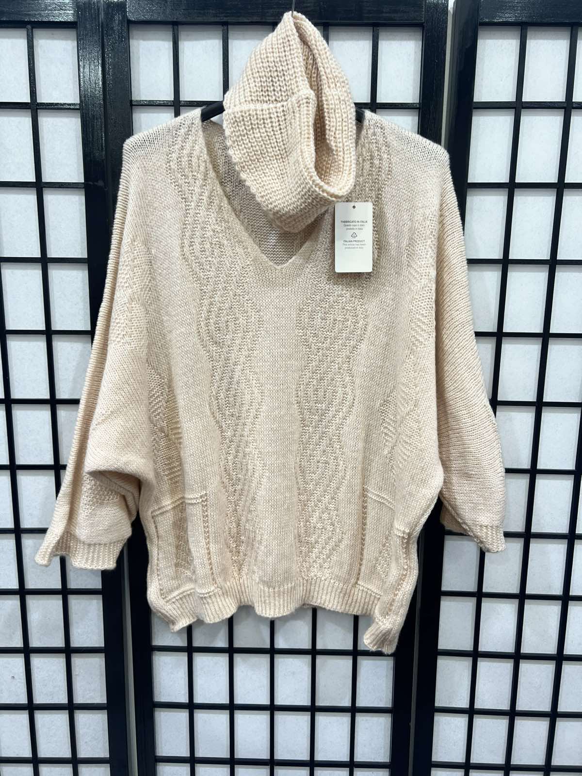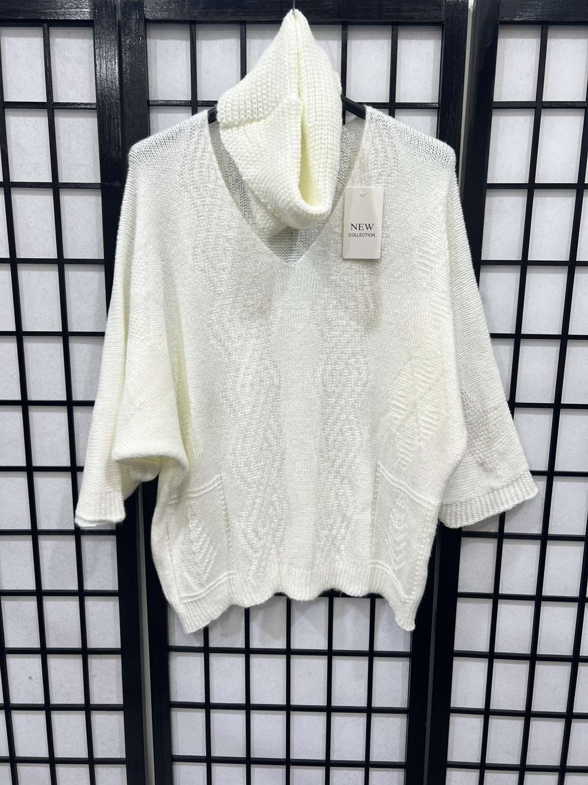 Italian V Neck Knitted Top With Cable Knit Detail With Snood- 5291