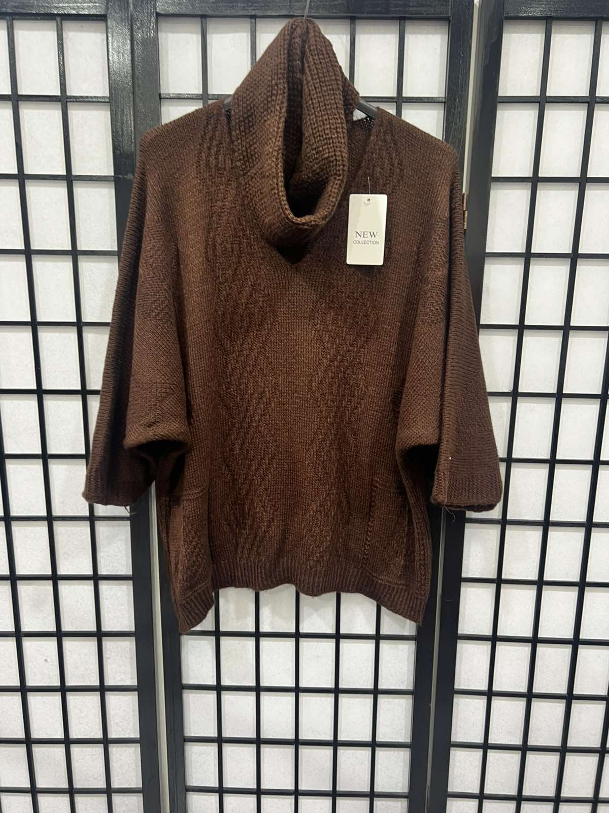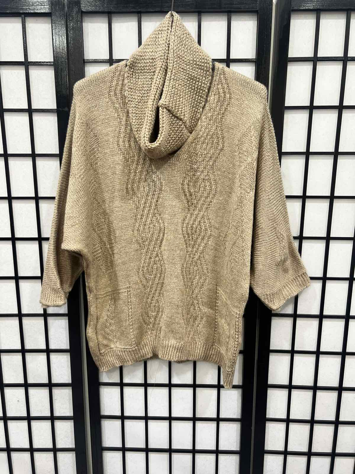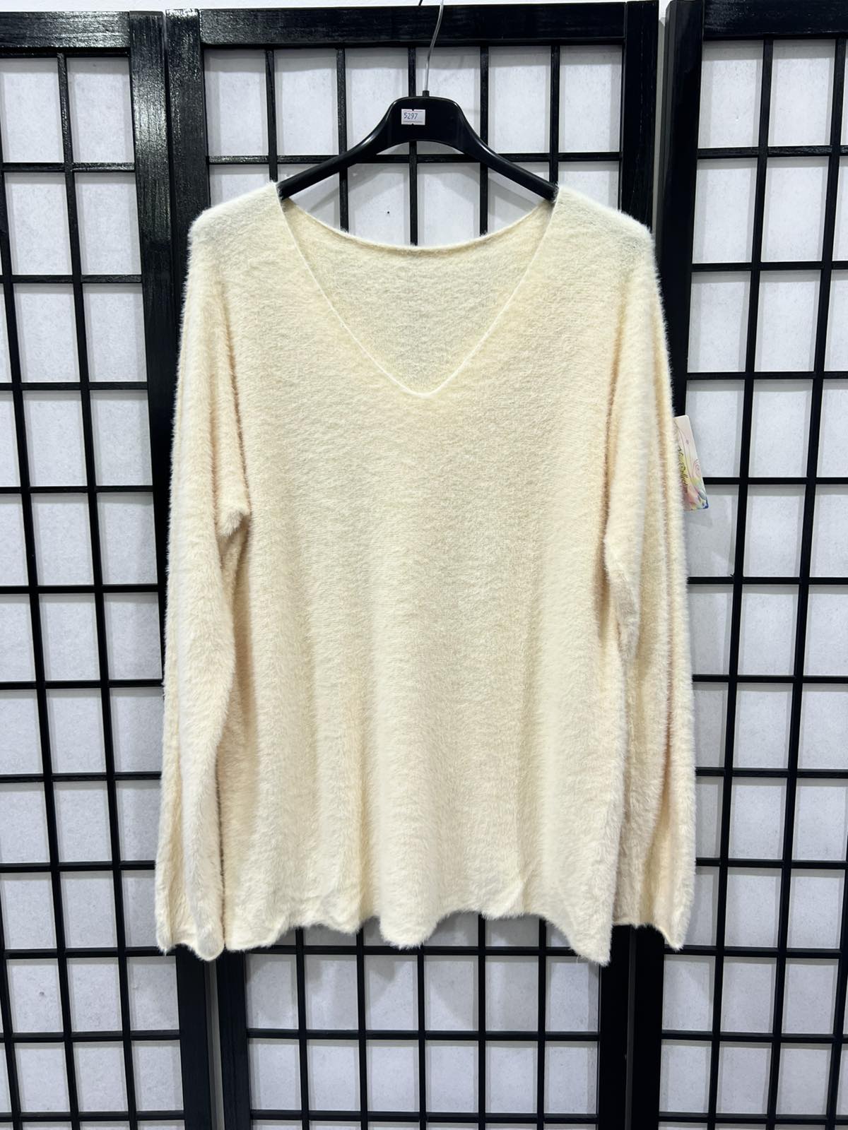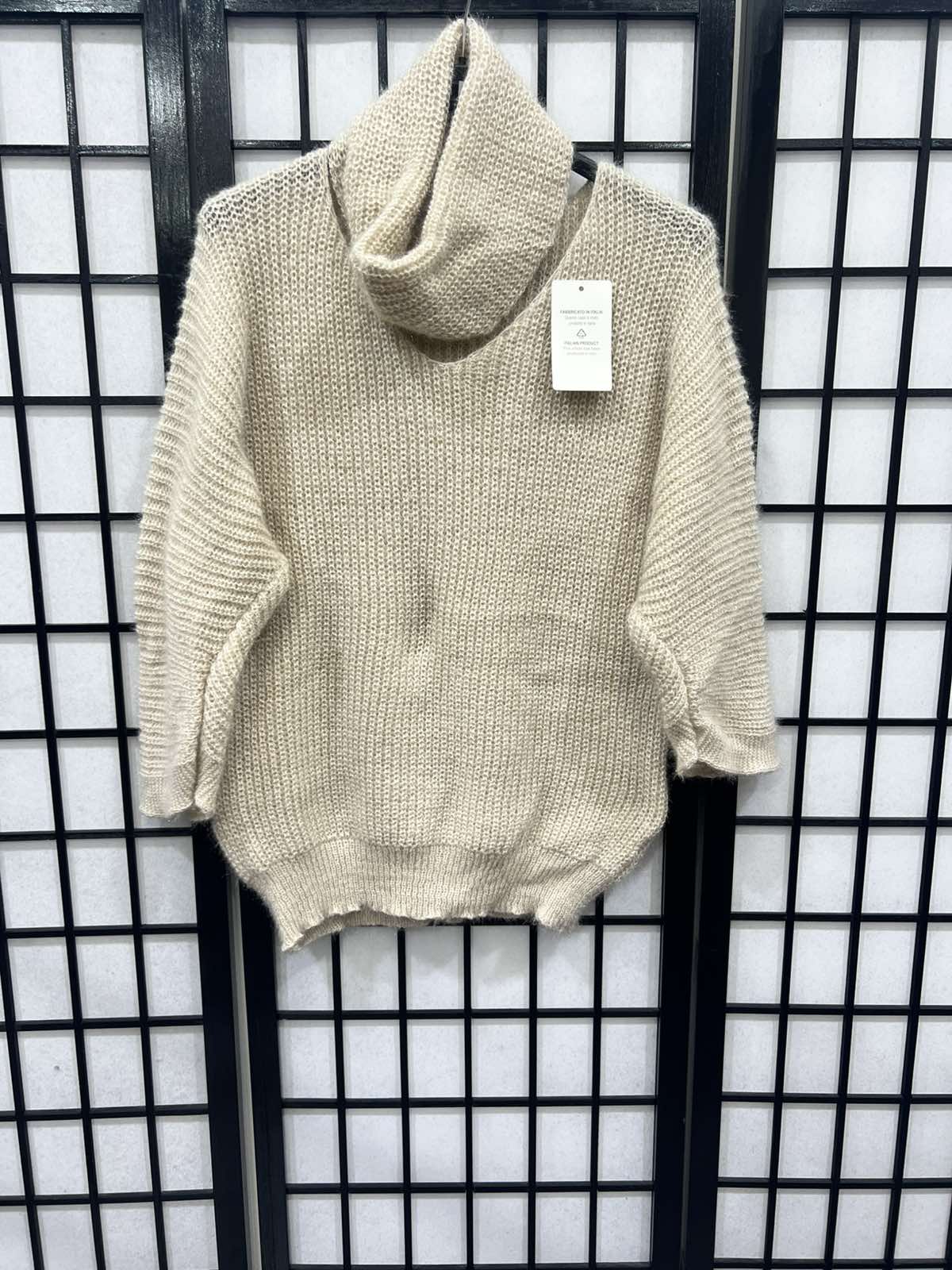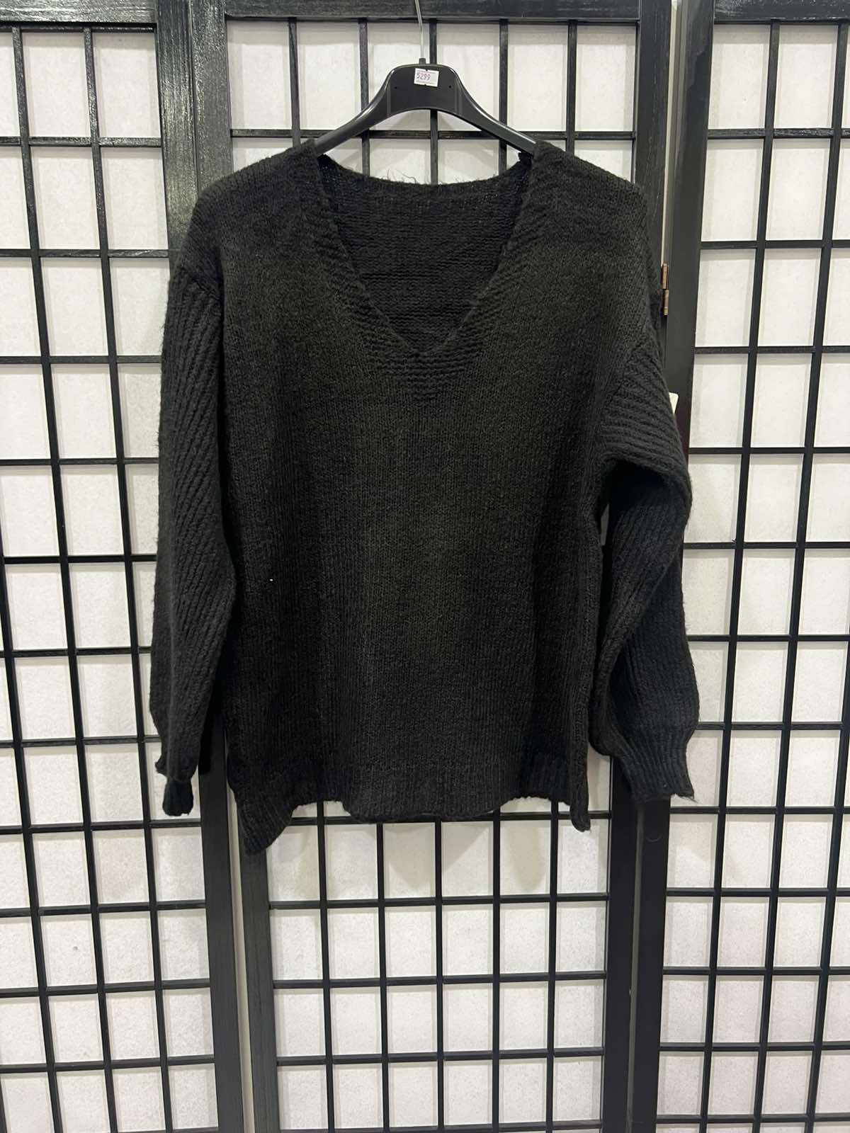 Italian V Neck Knitted Top With Cable Knit Detail With Snood- 5291