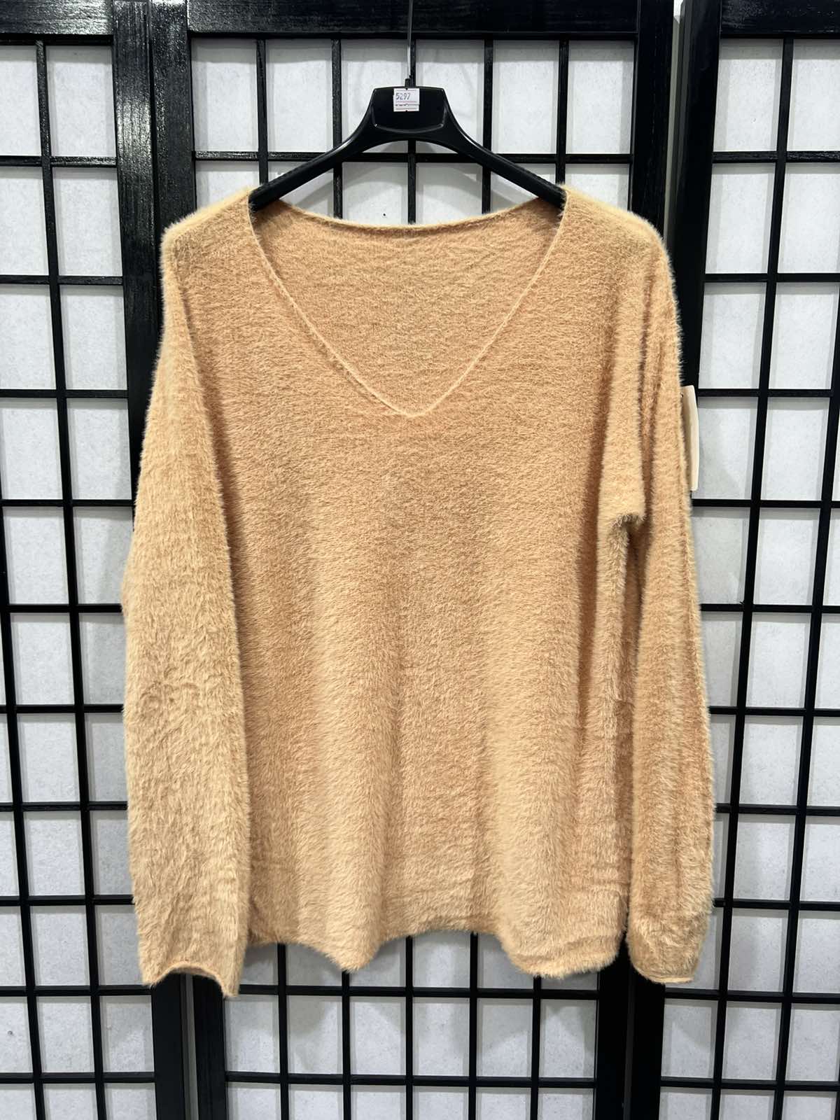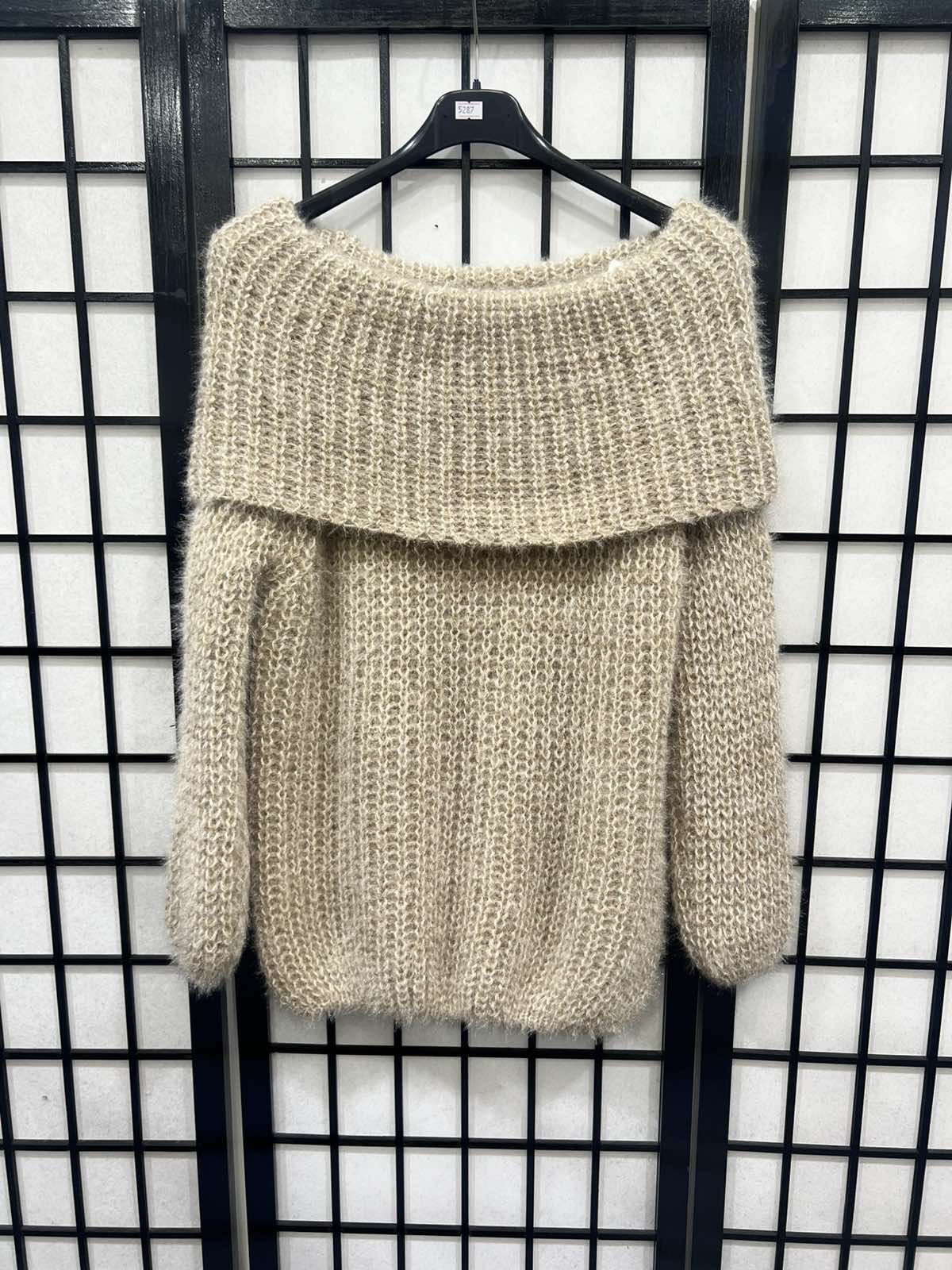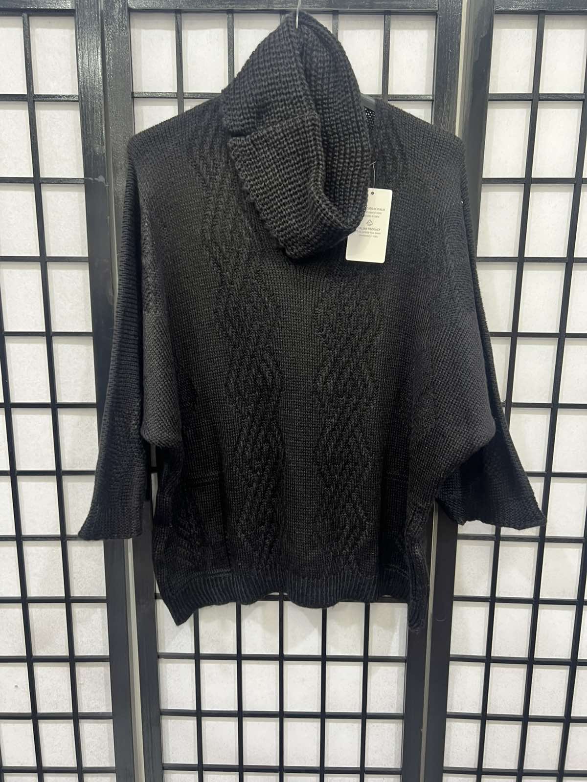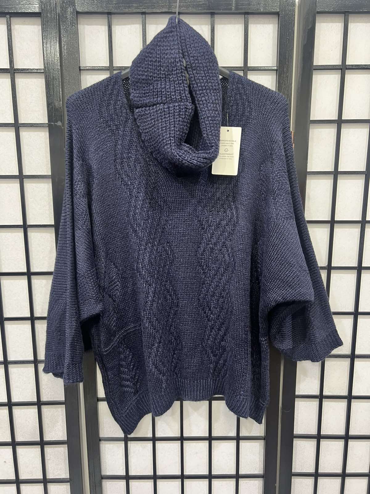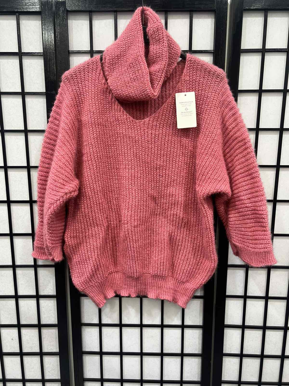 Italian V Neck Knitted Top With Cable Knit Detail With Snood- 5291