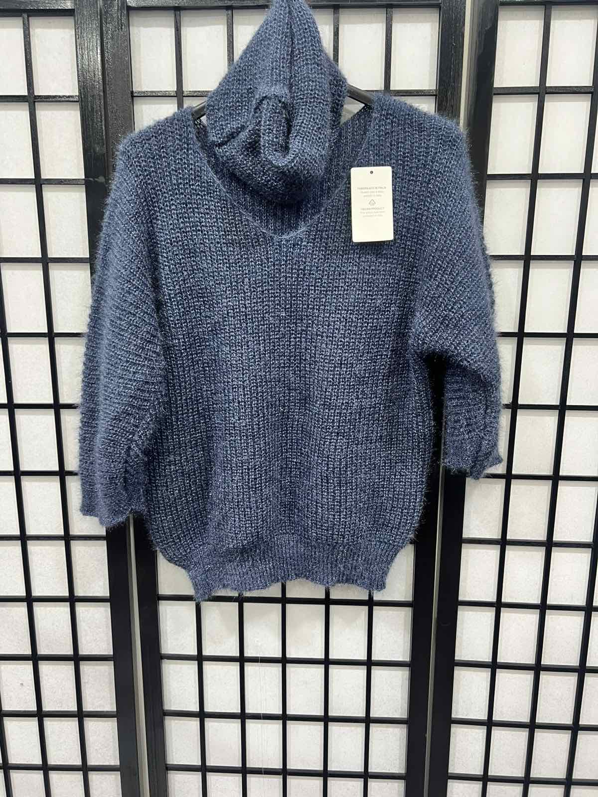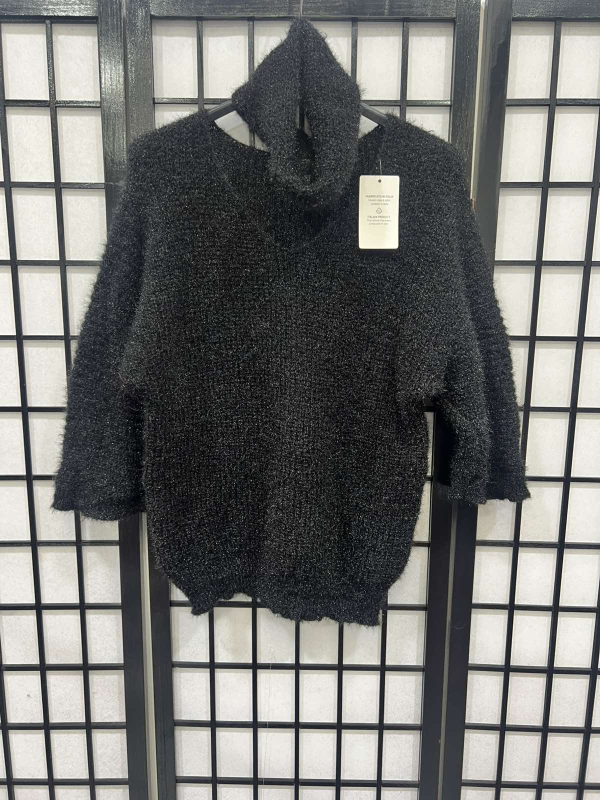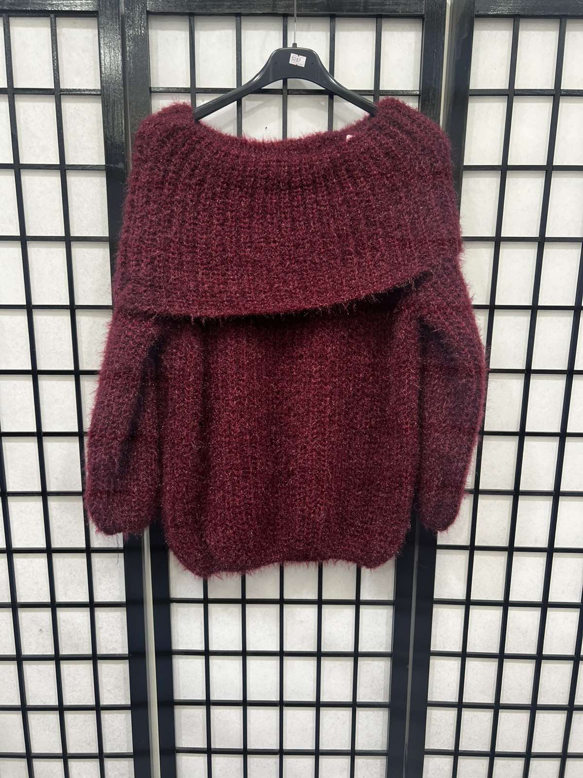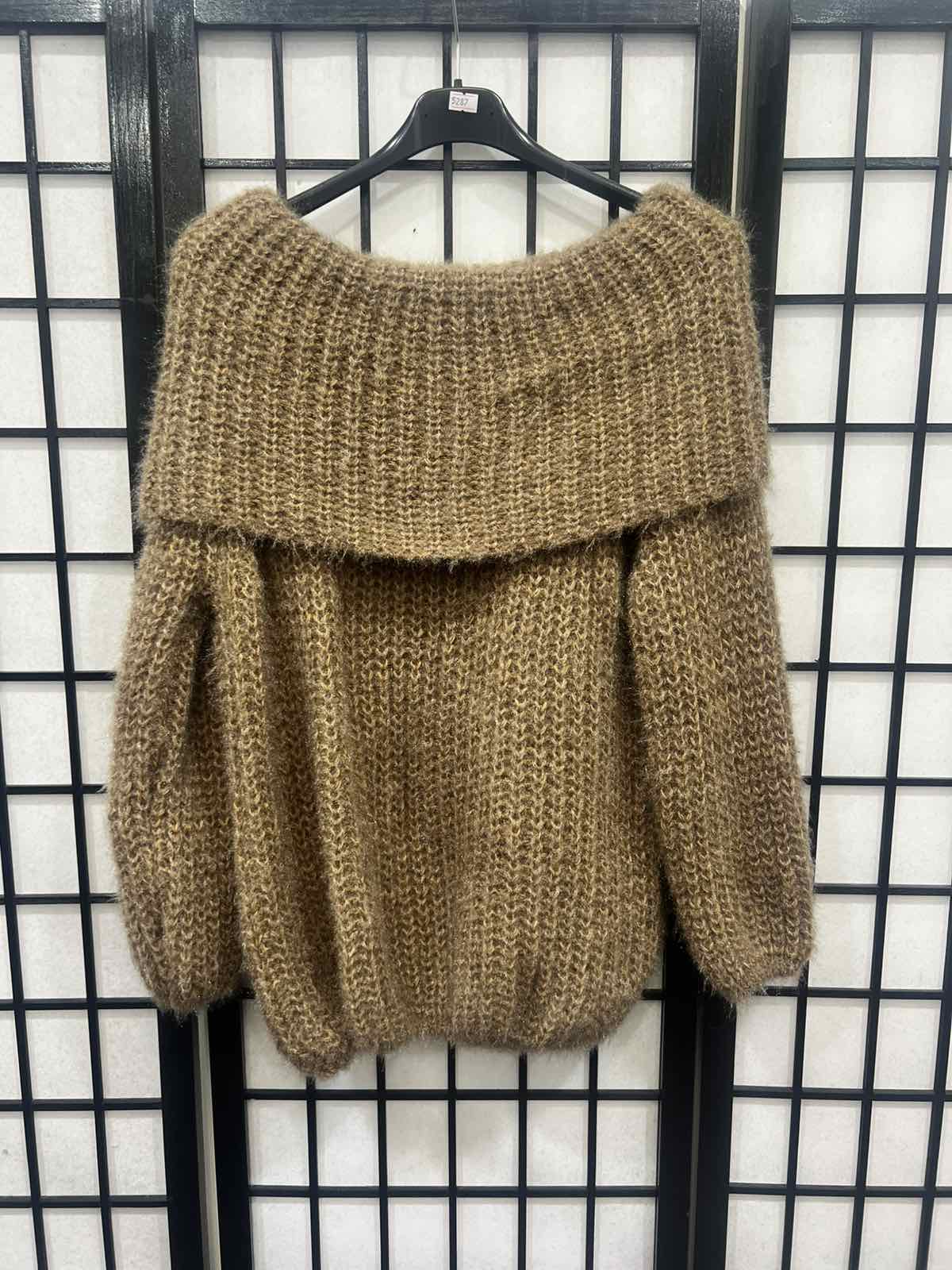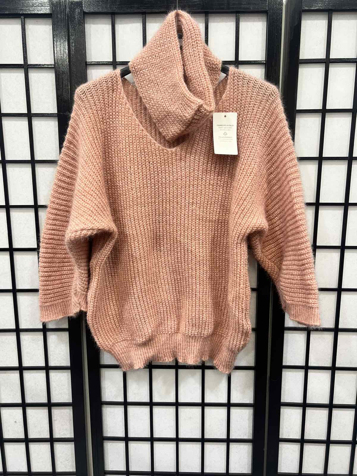 Italian V Neck Knitted Top With Cable Knit Detail With Snood- 5291