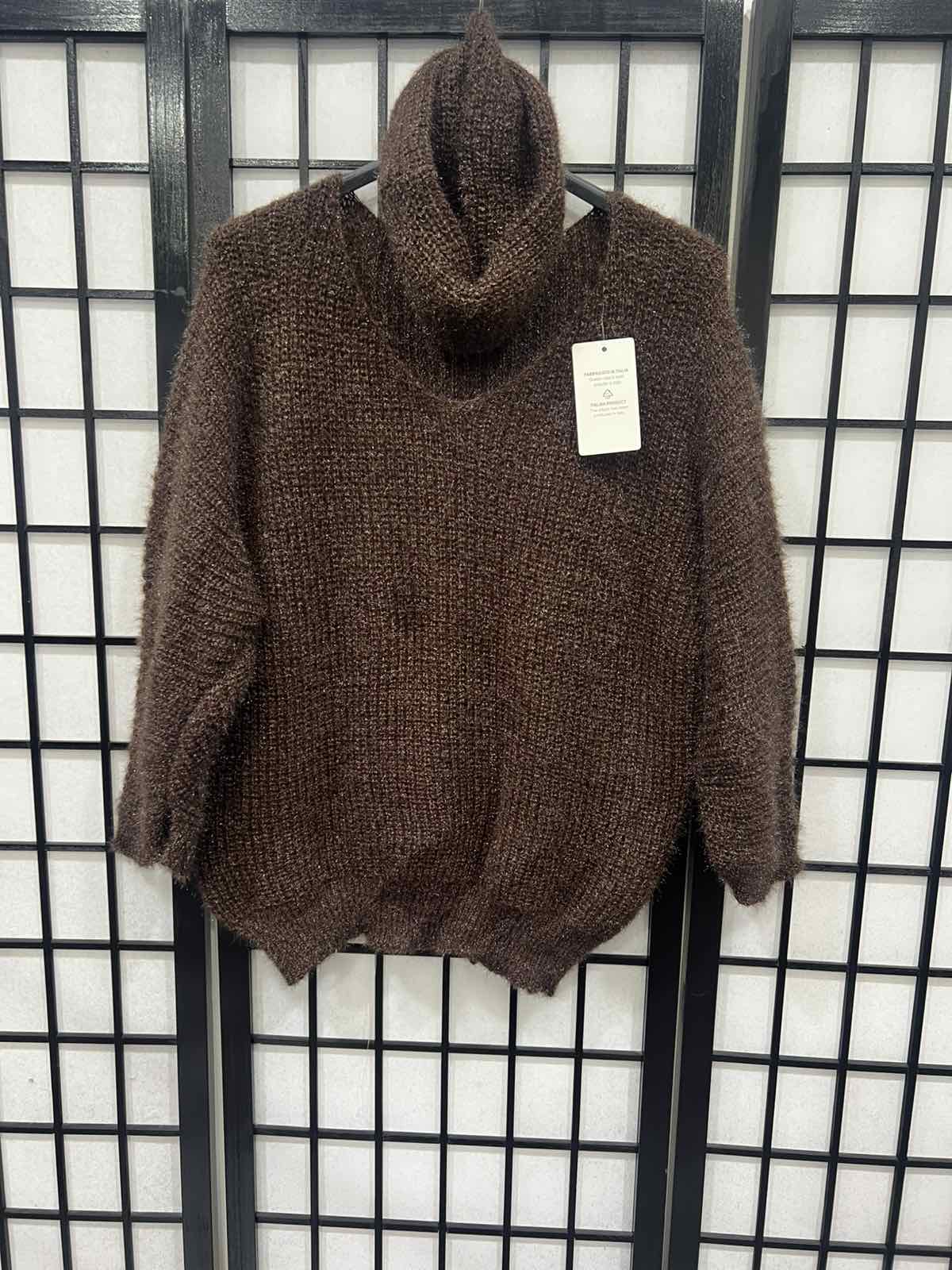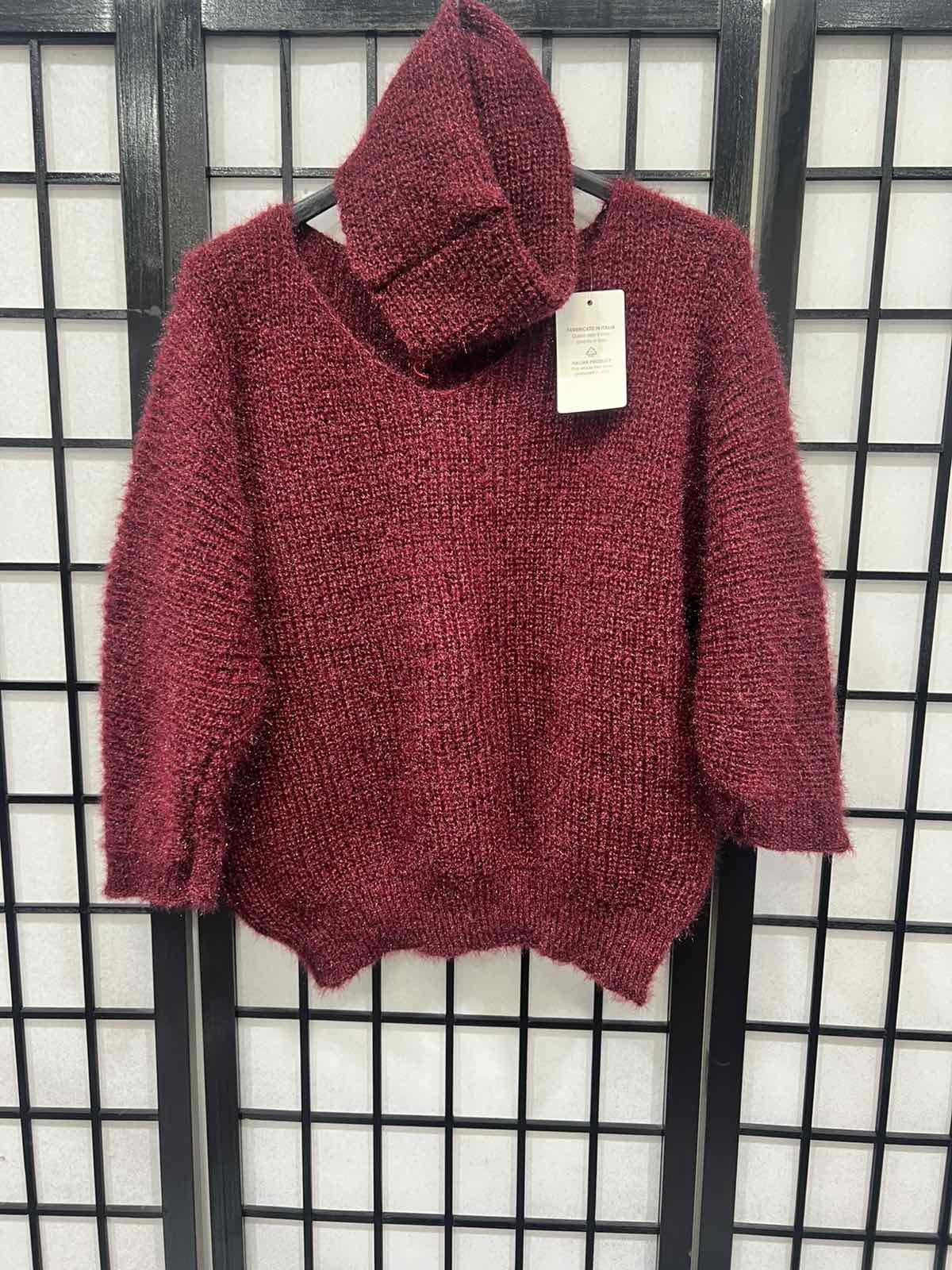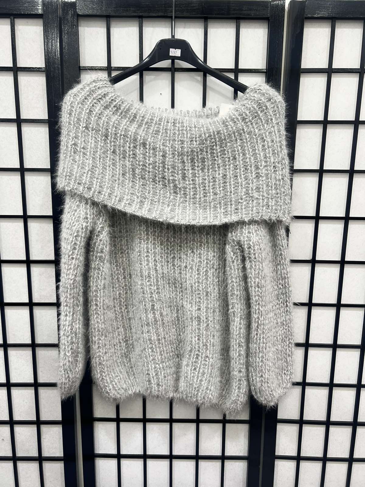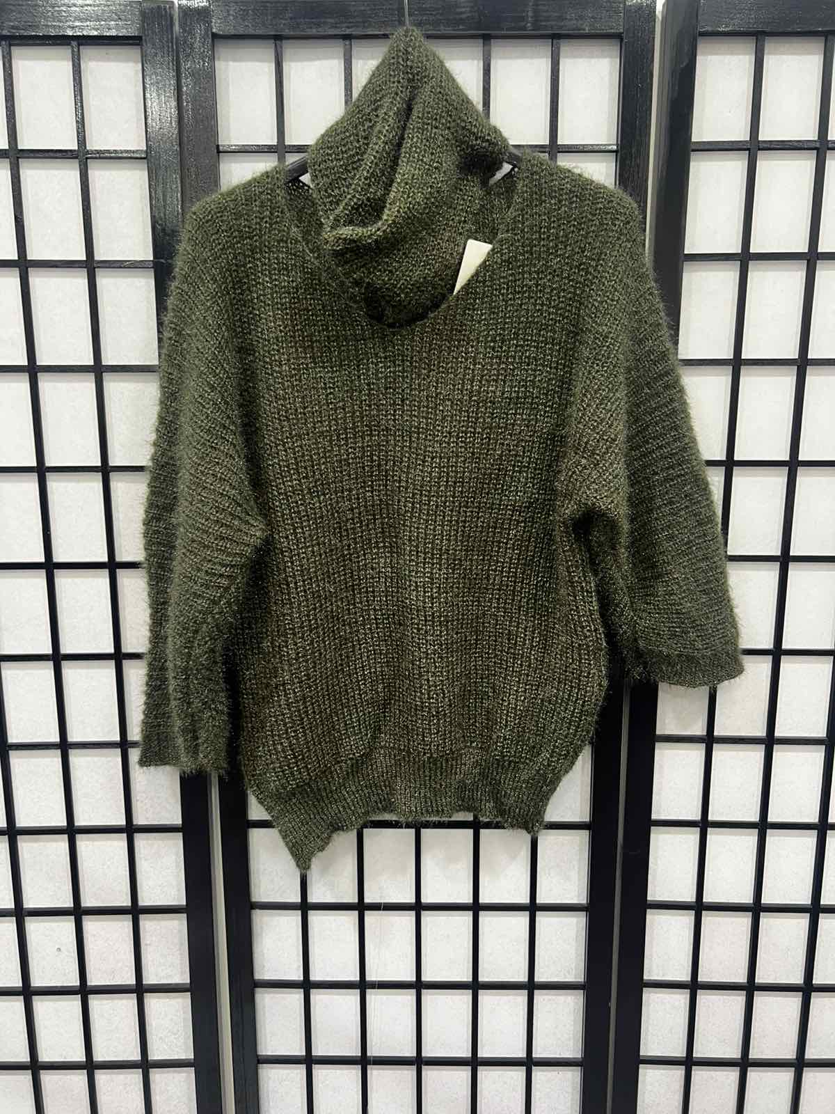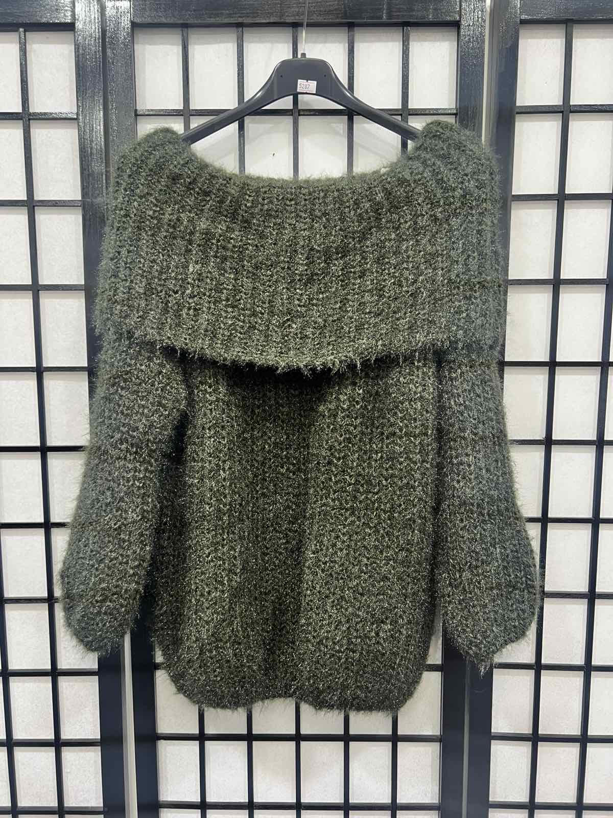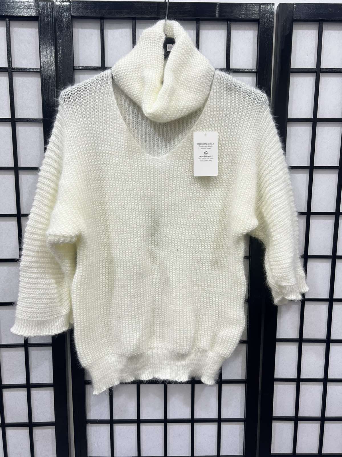 Italian V Neck Knitted Top With Cable Knit Detail With Snood- 5291