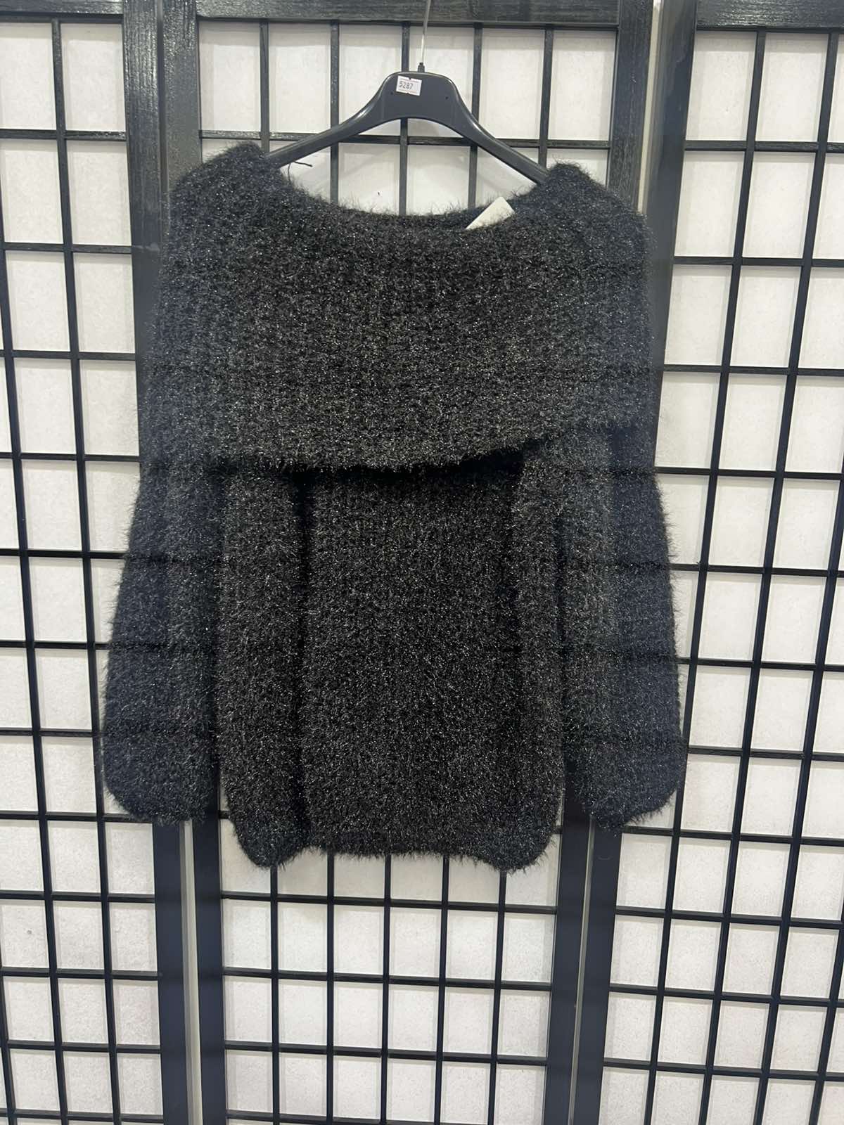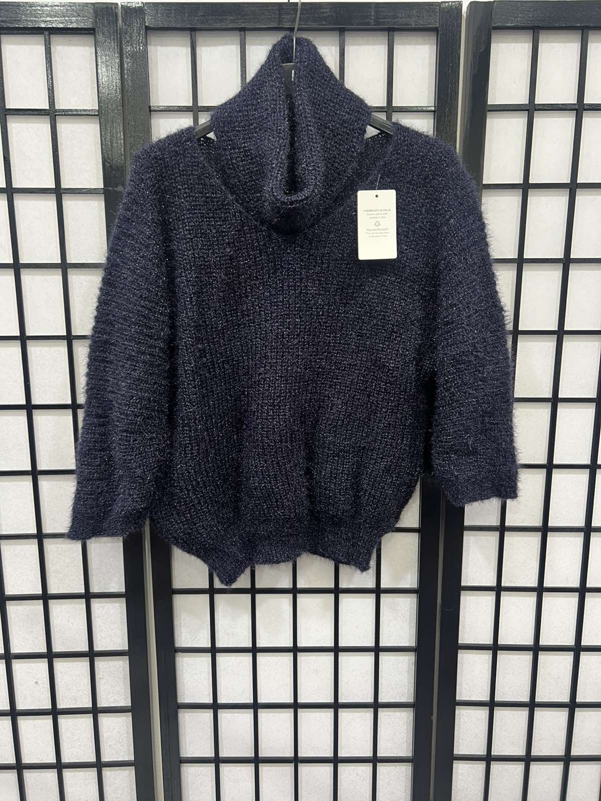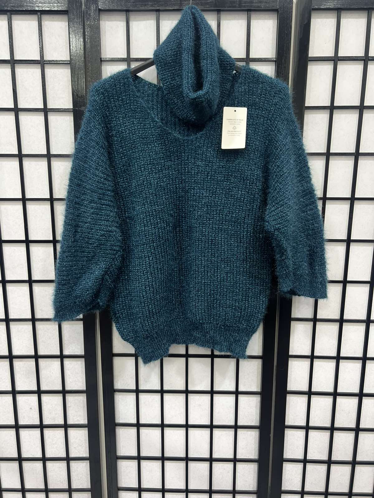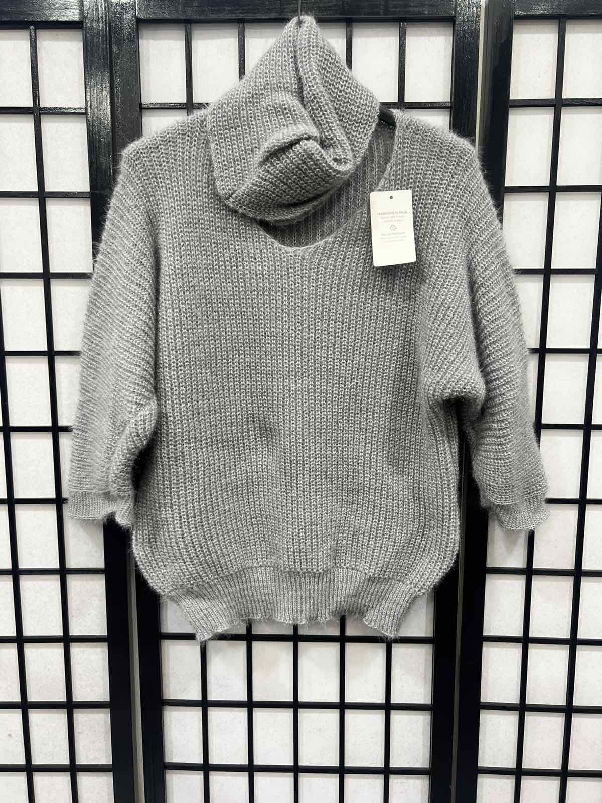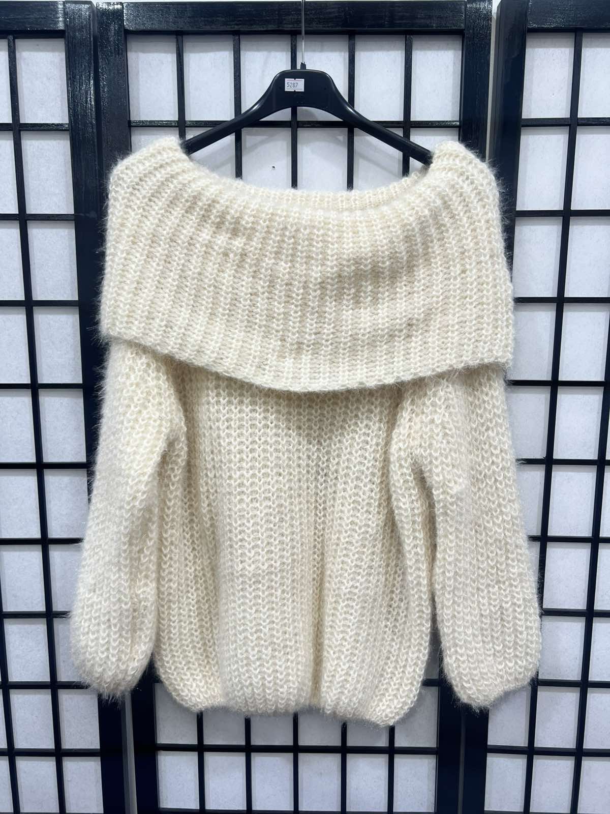 Italian V Neck Knitted Top With Cable Knit Detail With Snood- 5291