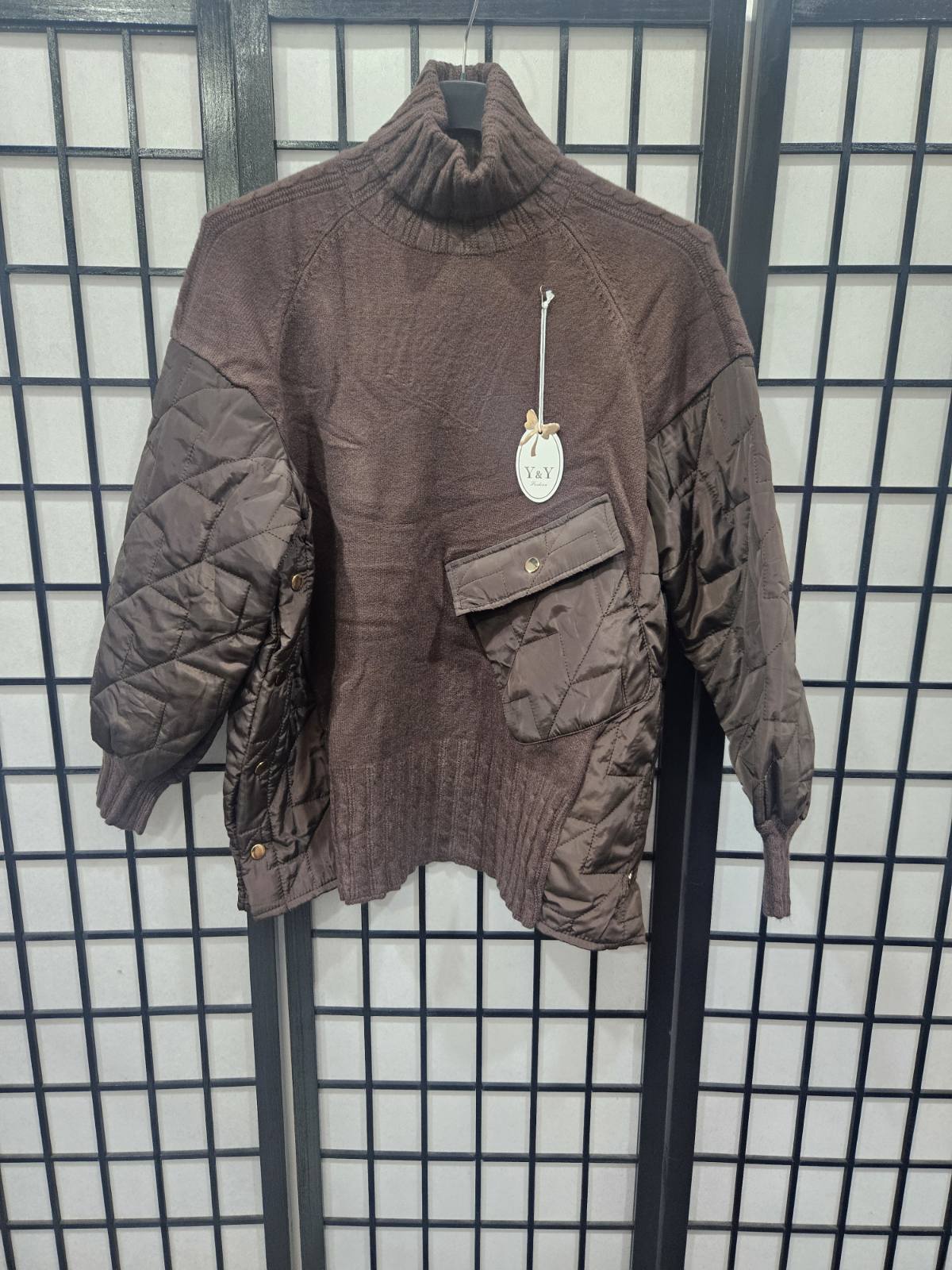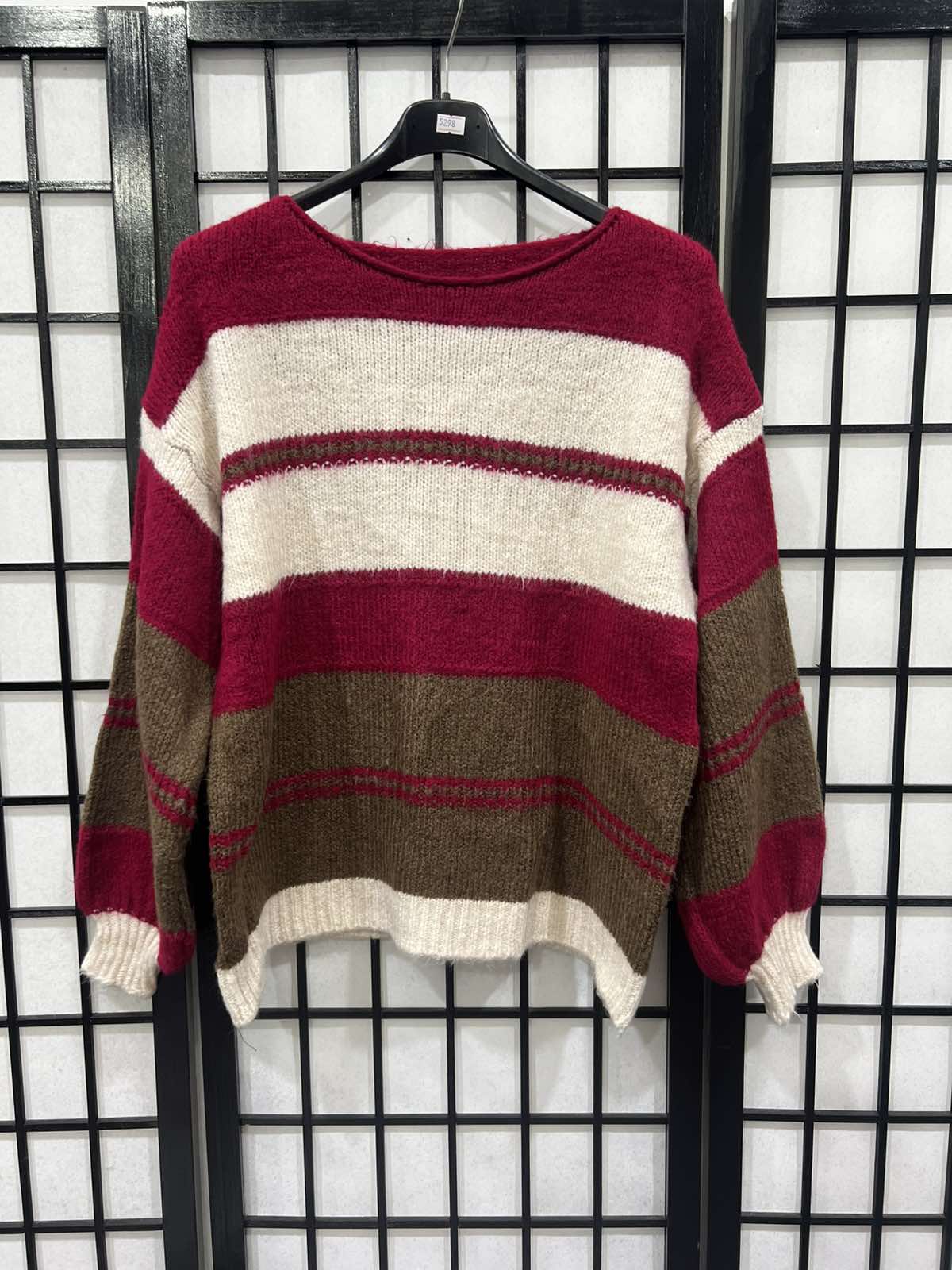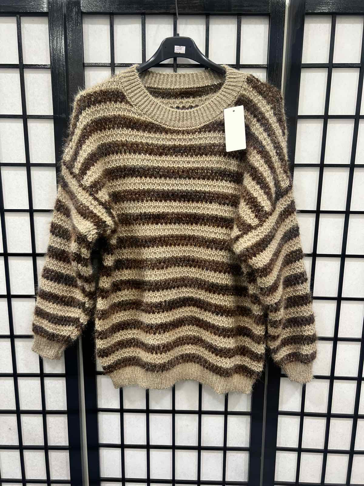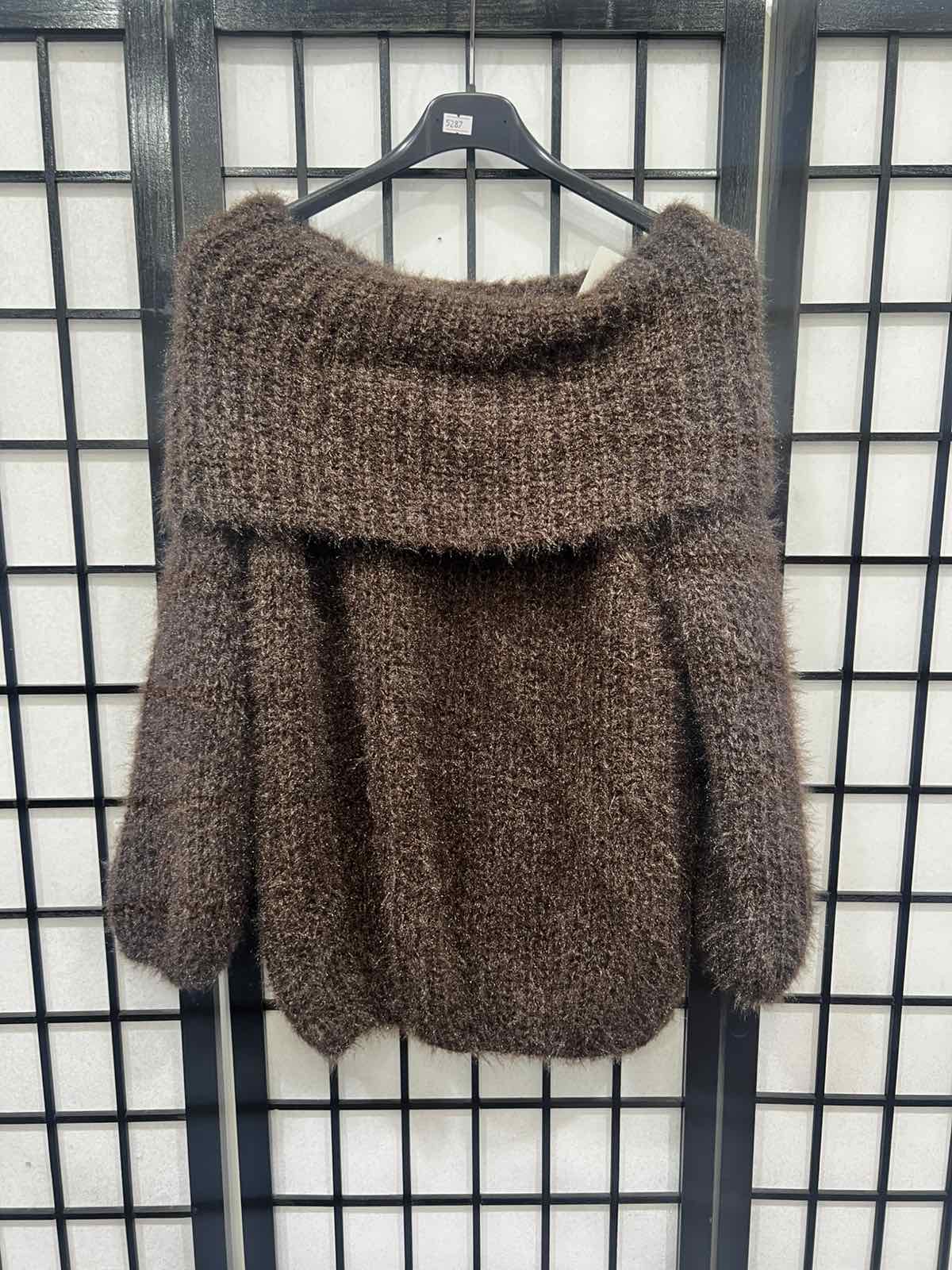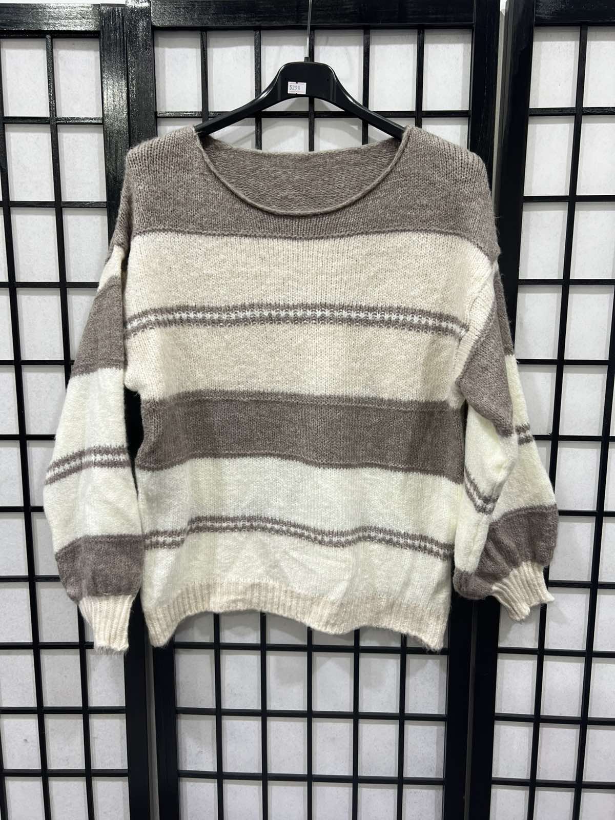 Italian V Neck Knitted Top With Cable Knit Detail With Snood- 5291