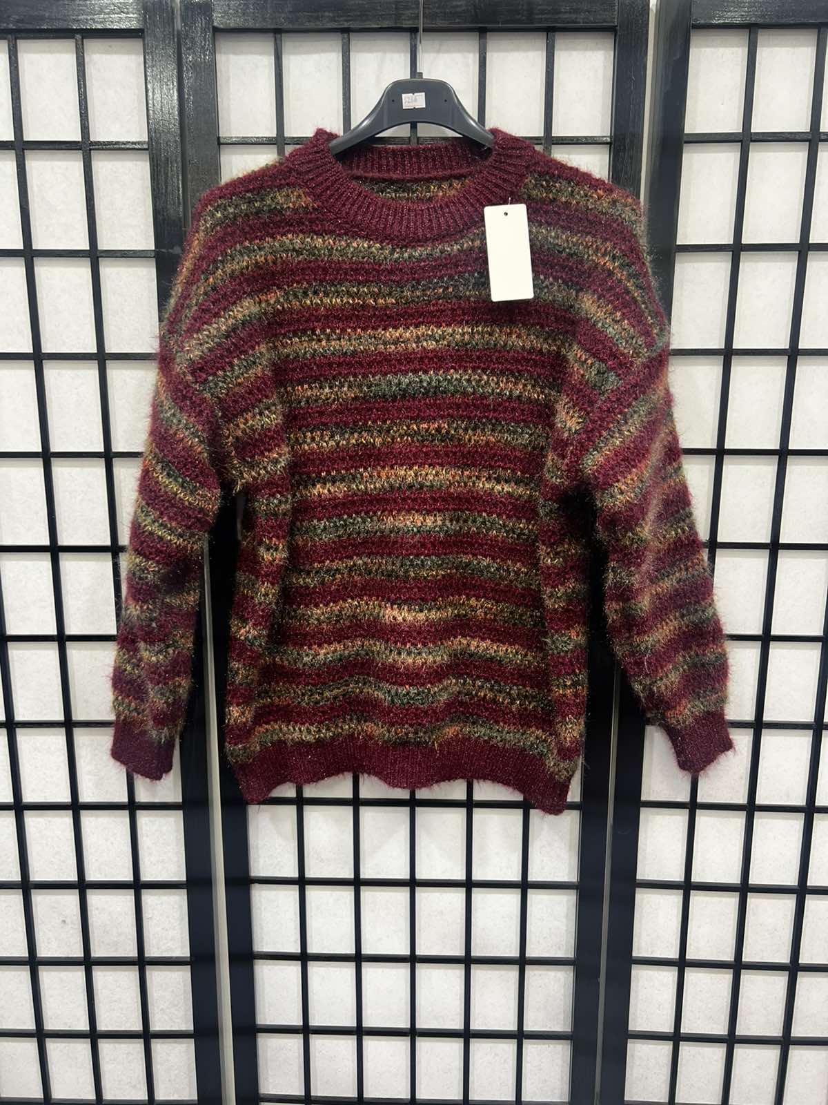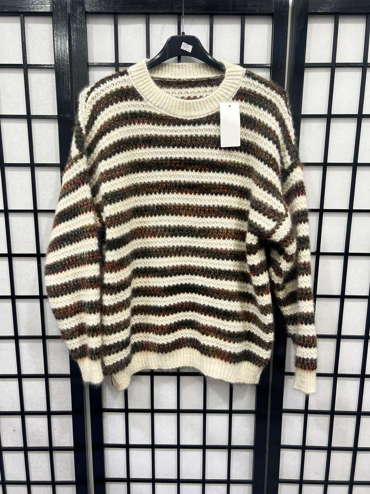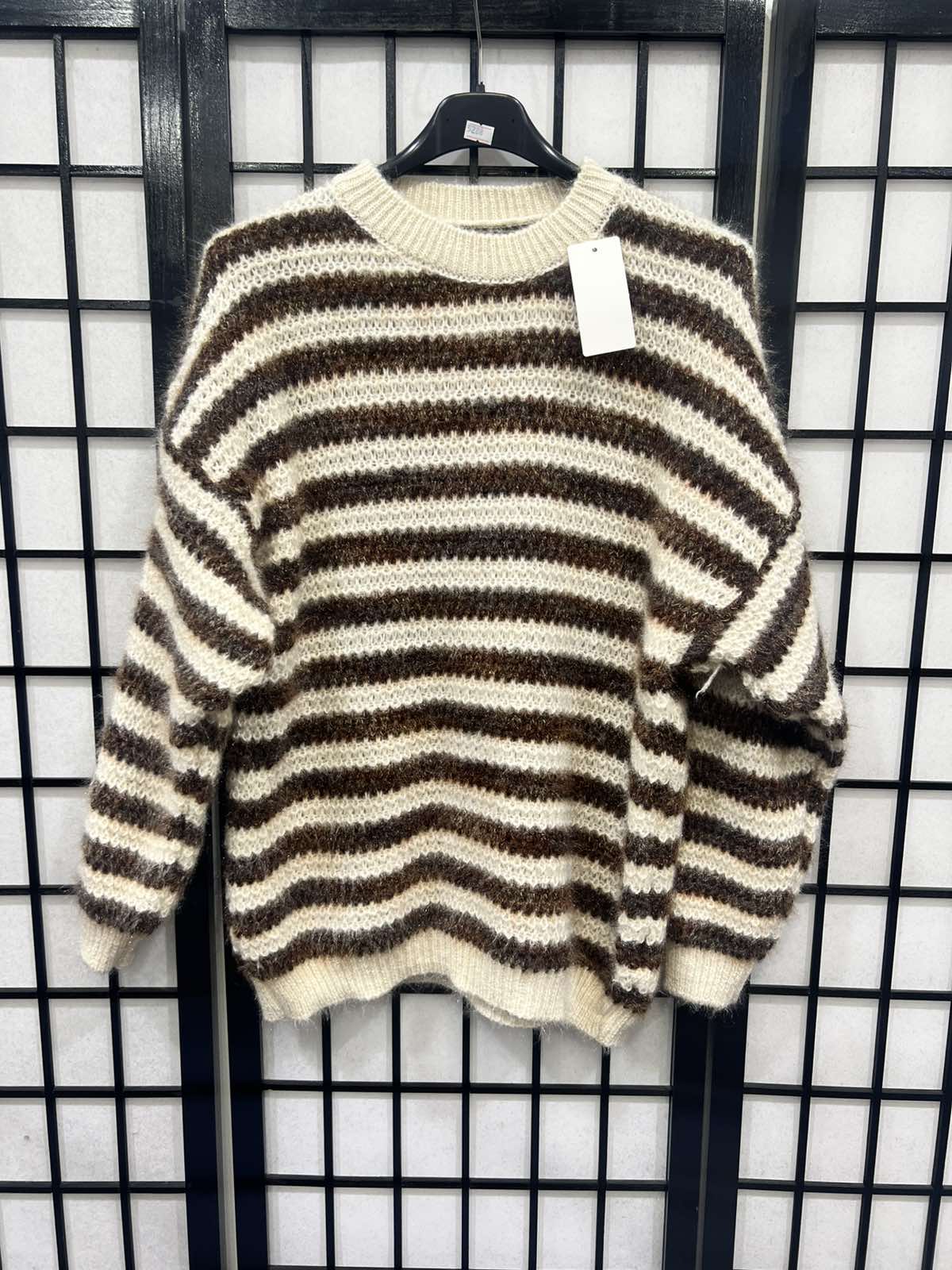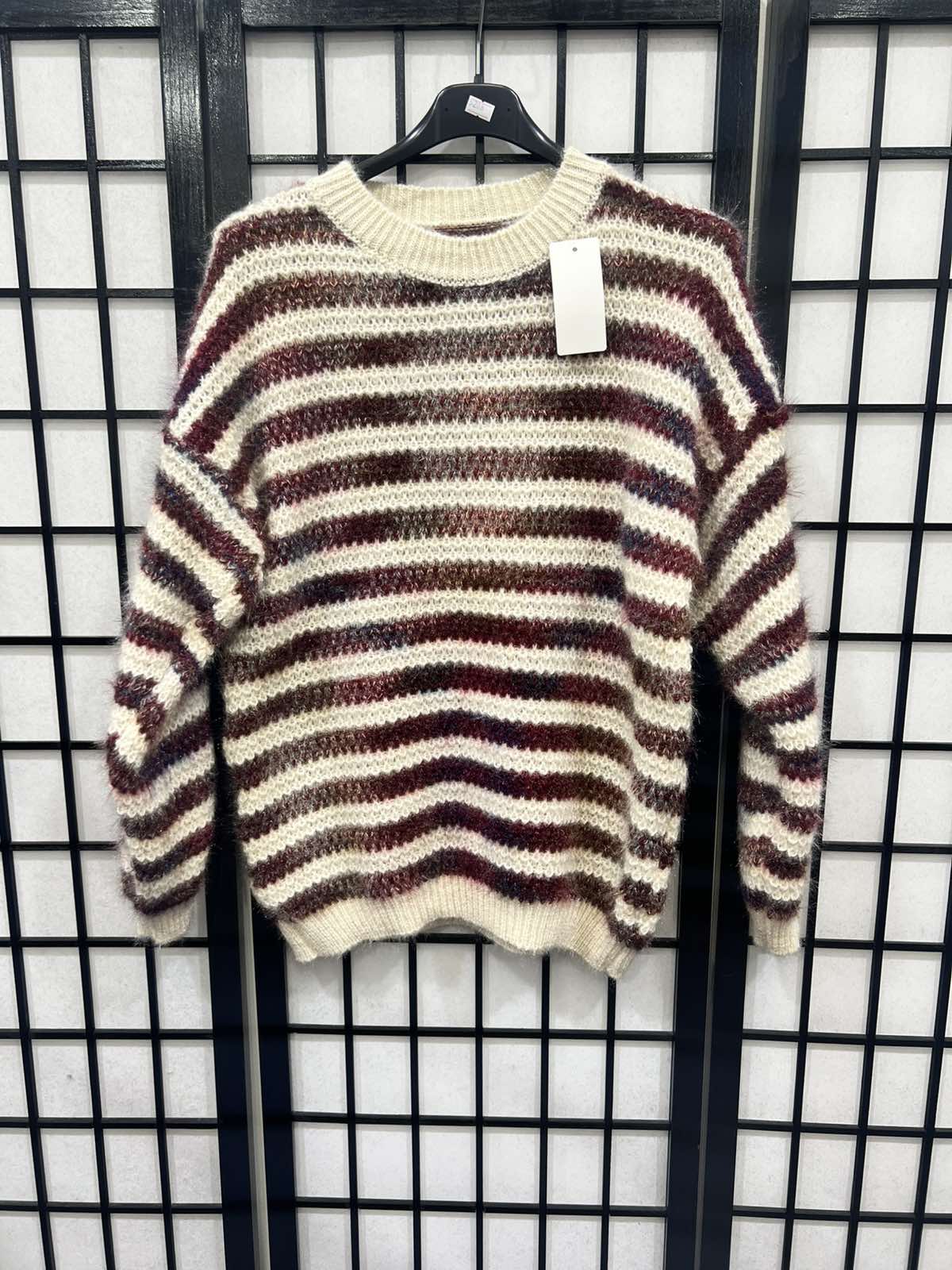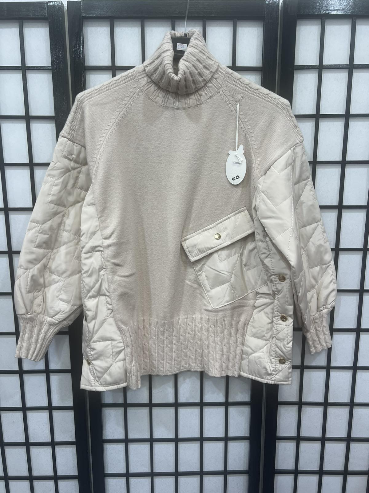 Italian V Neck Knitted Top With Cable Knit Detail With Snood- 5291