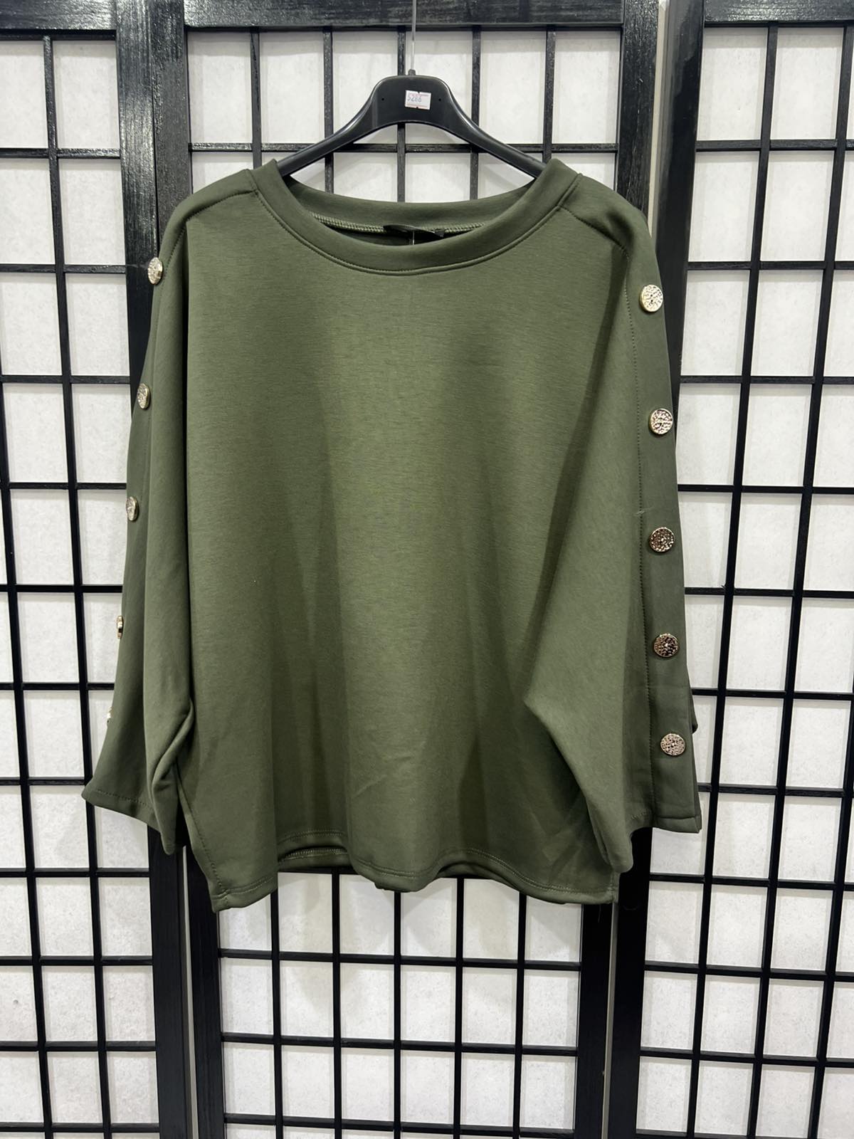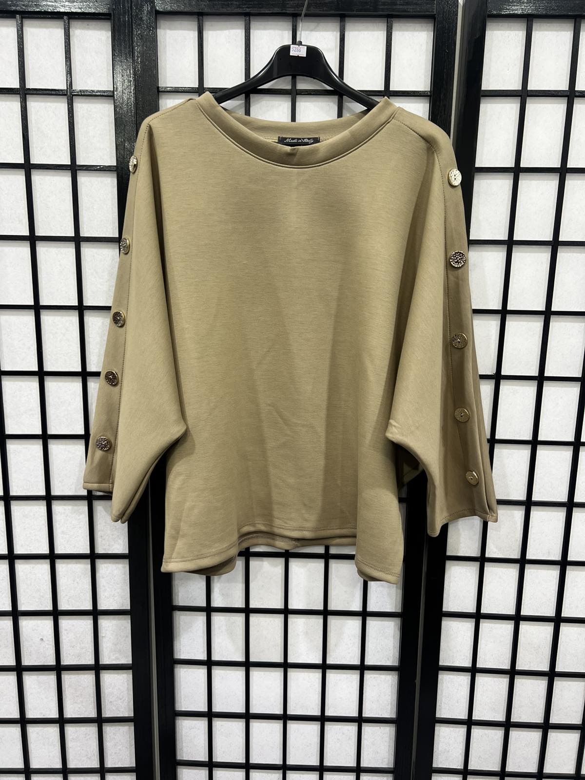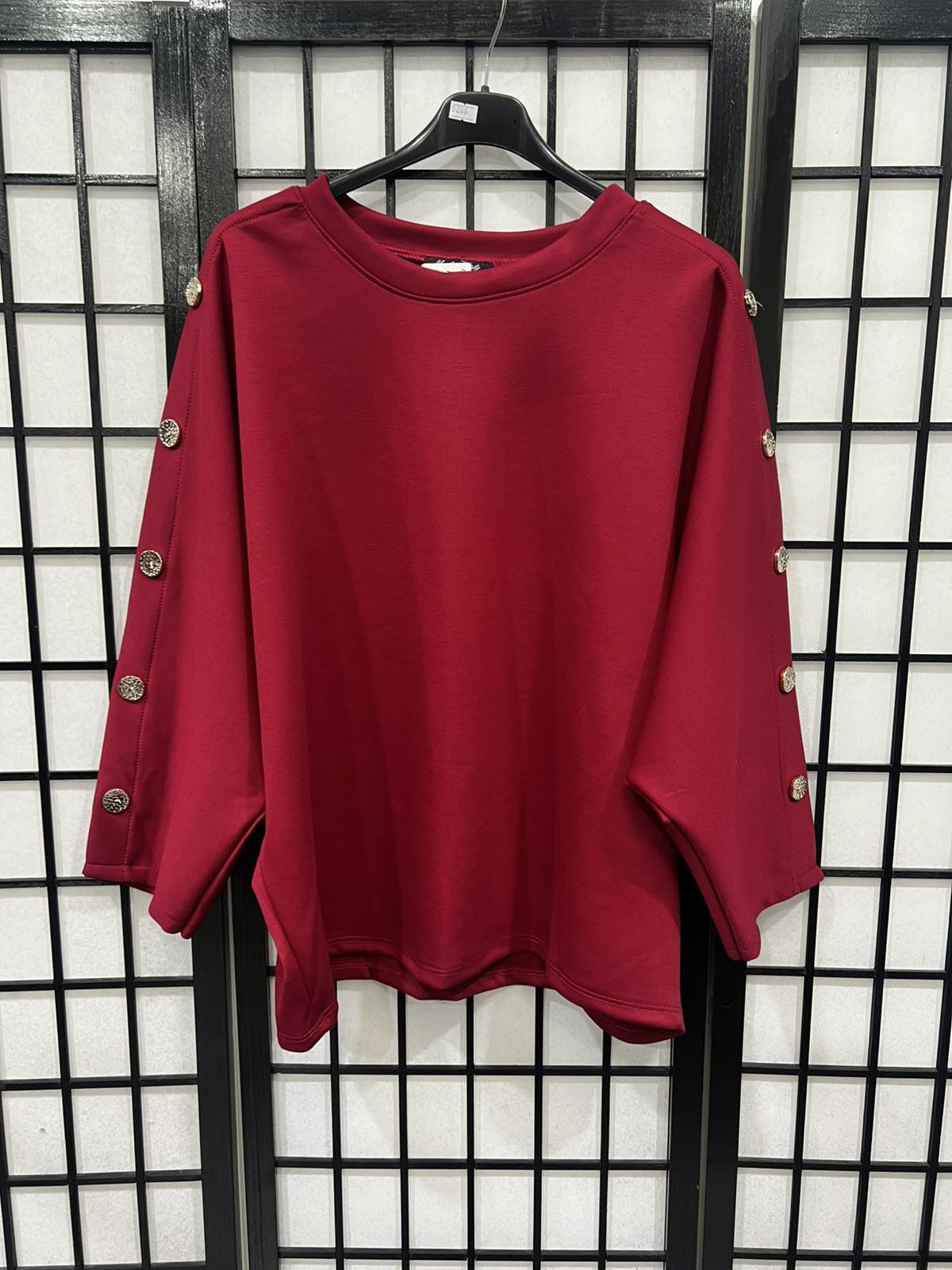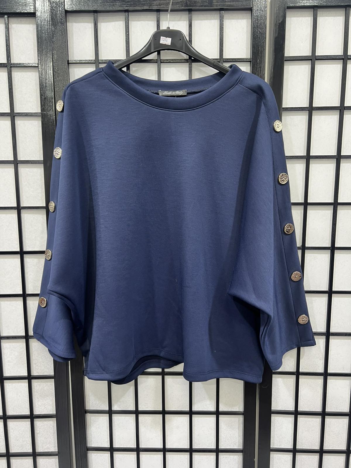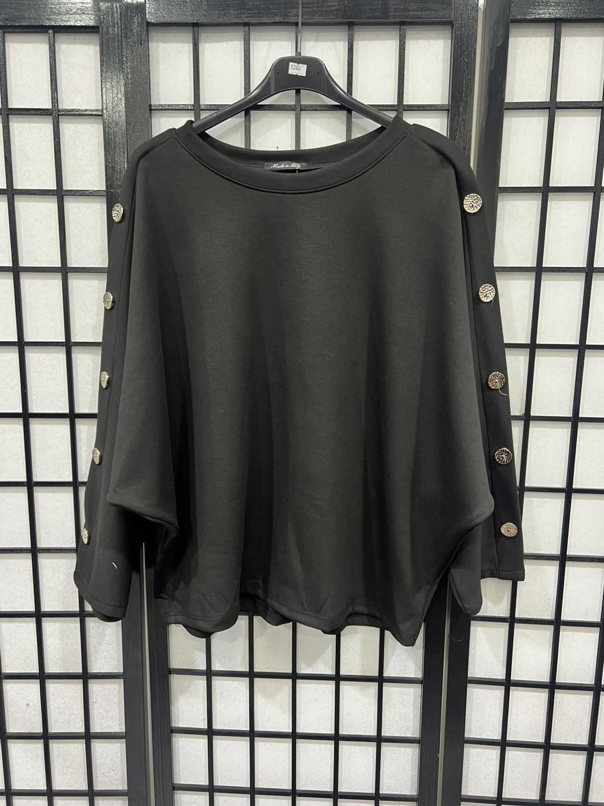 Italian Plain Batwing Top With Gold Button Detail On Arms- 5286