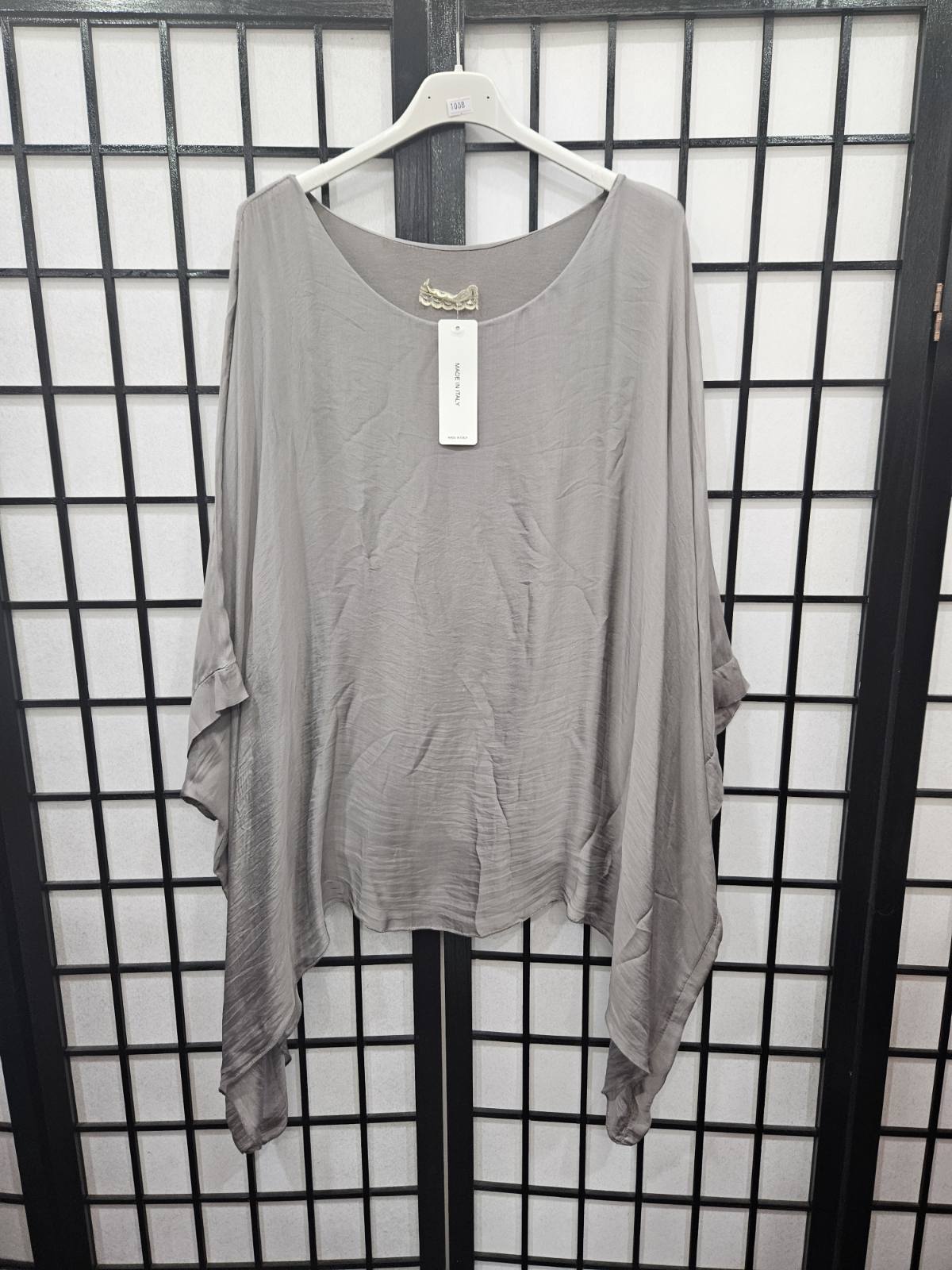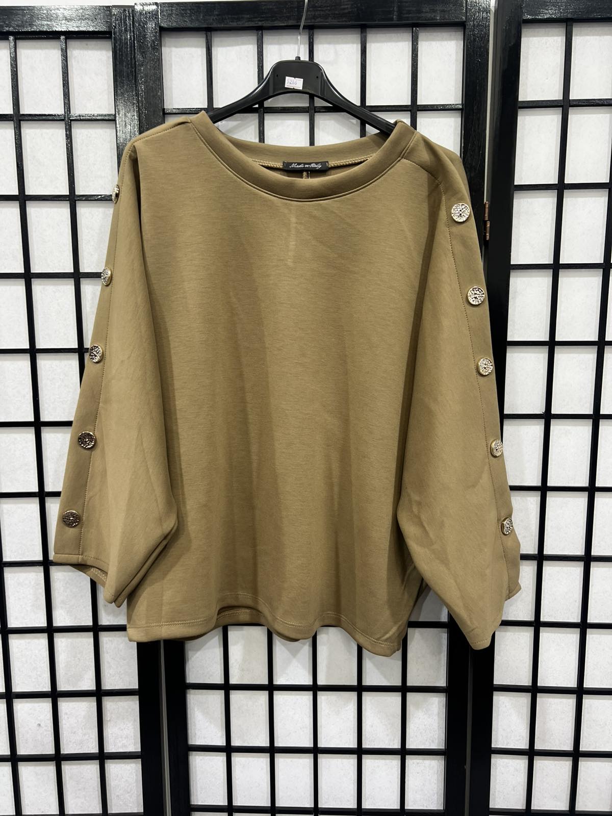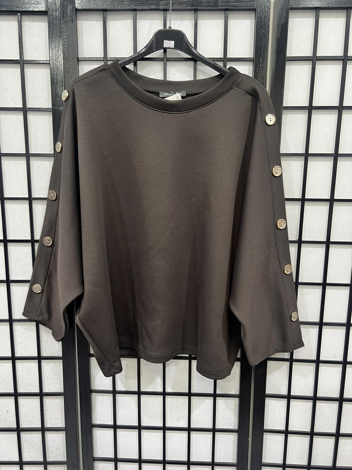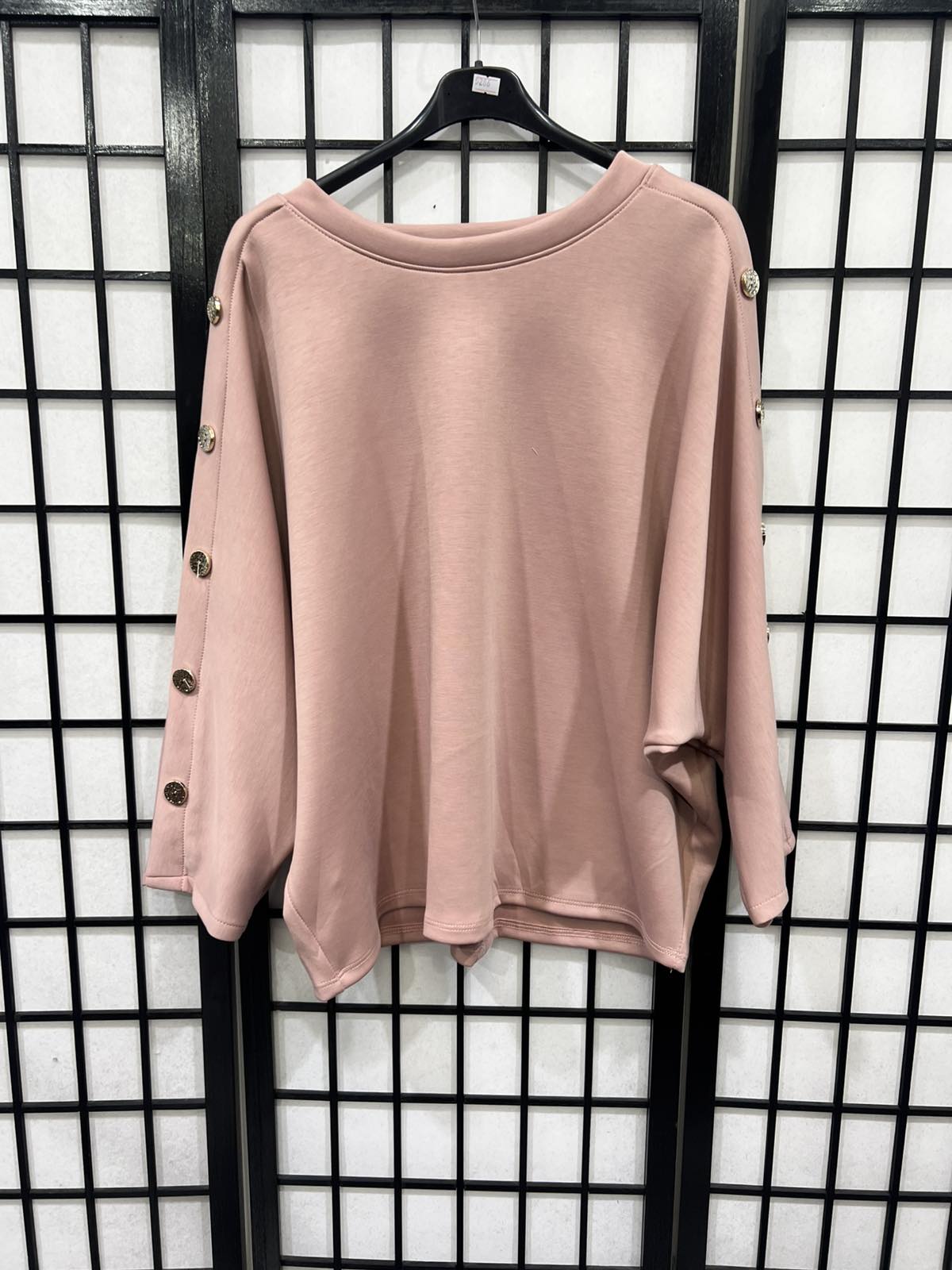 Italian Plain Batwing Top With Gold Button Detail On Arms- 5286