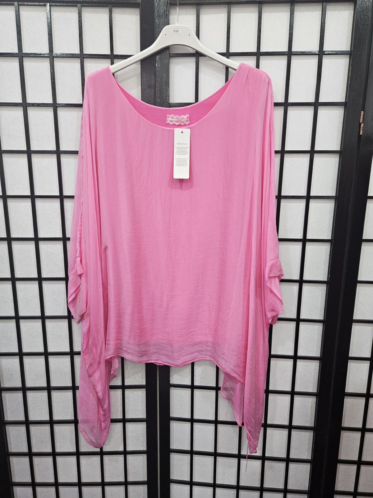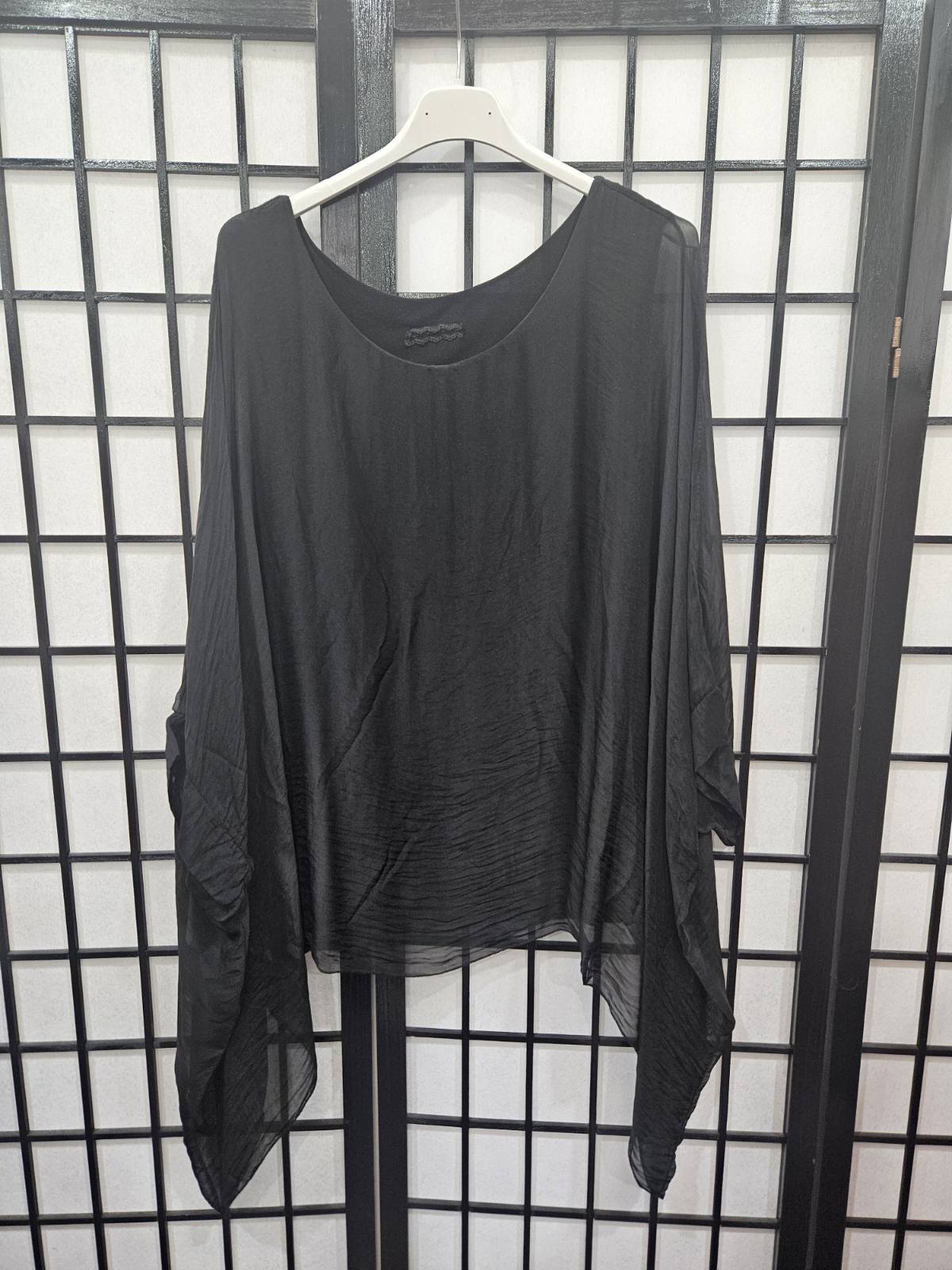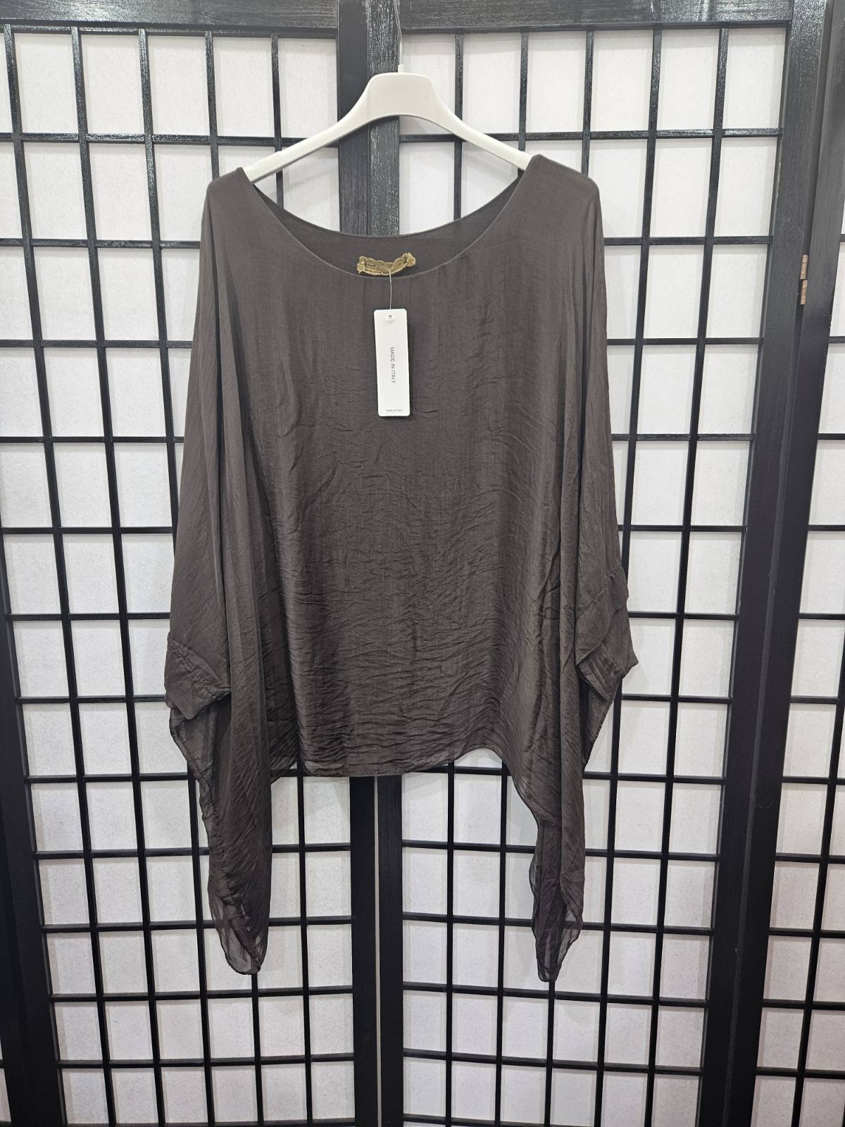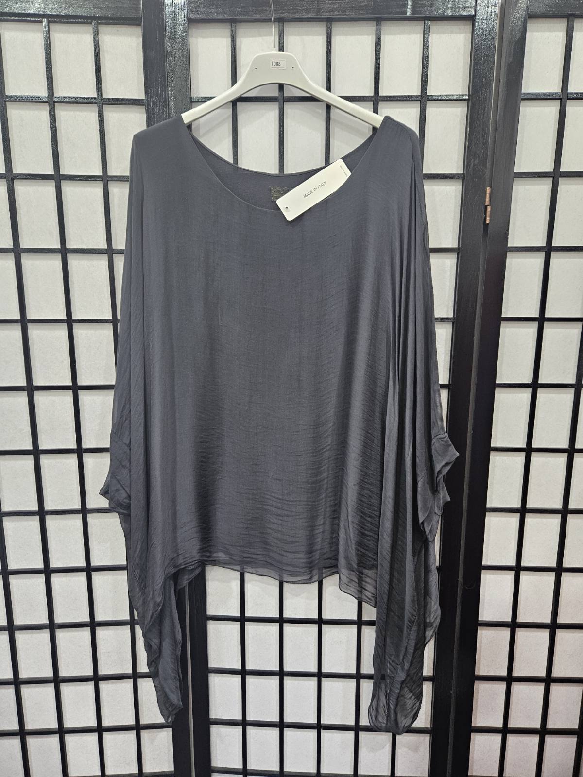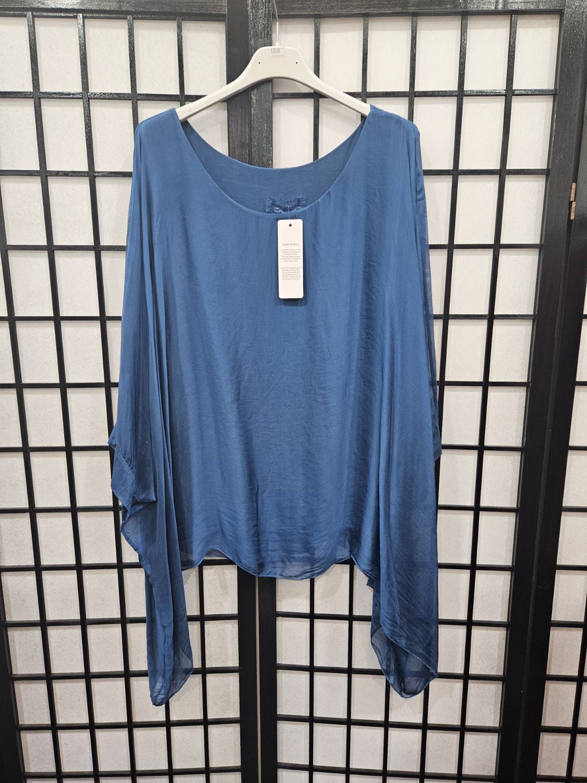Italian Plain Batwing Top With Gold Button Detail On Arms- 5286