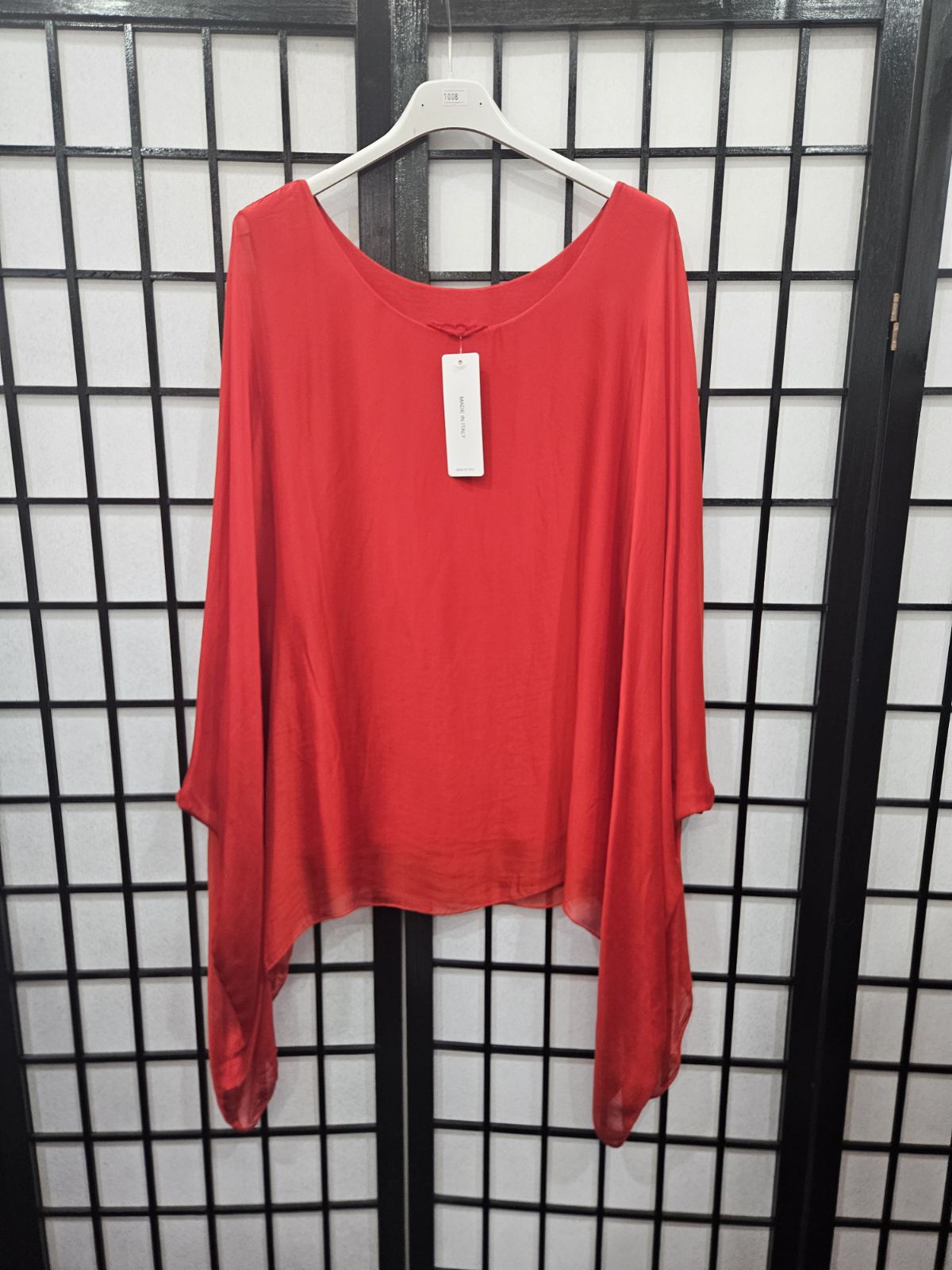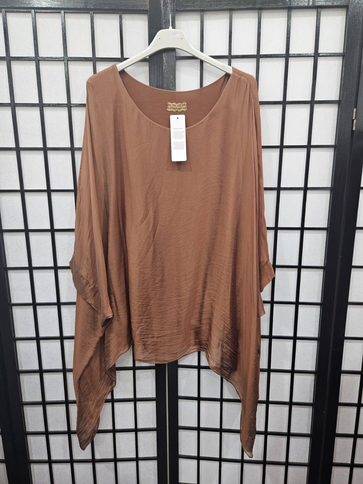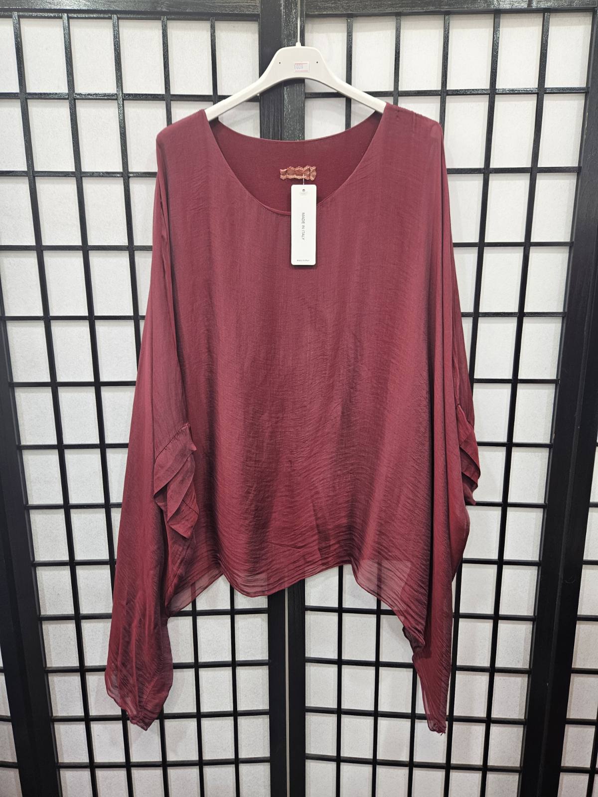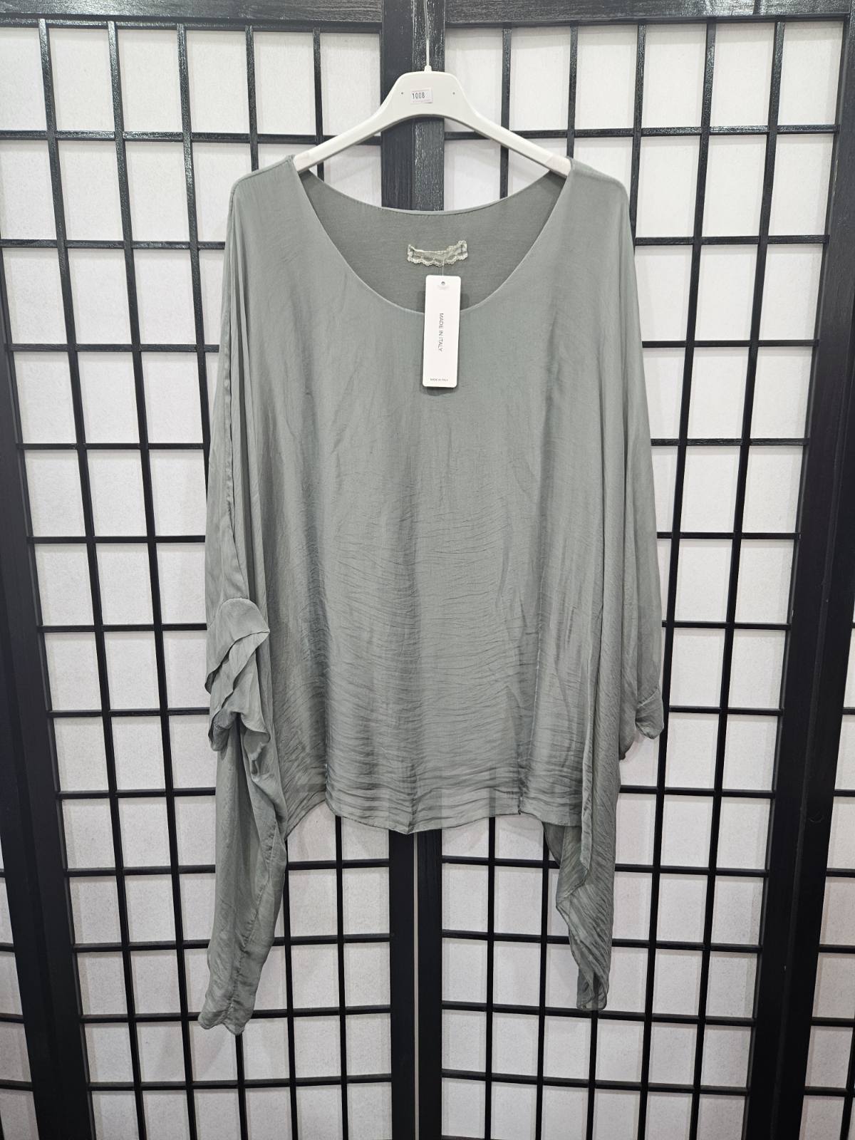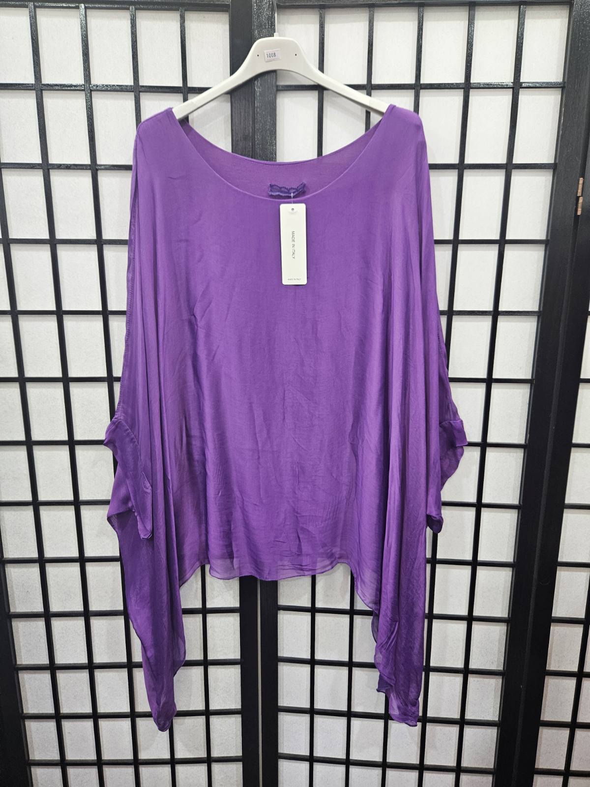 Italian Plain Batwing Top With Gold Button Detail On Arms- 5286