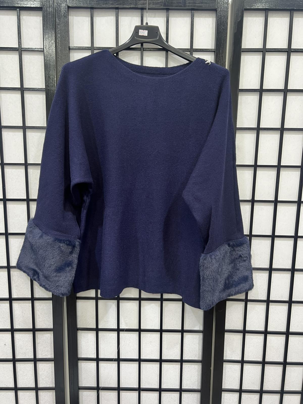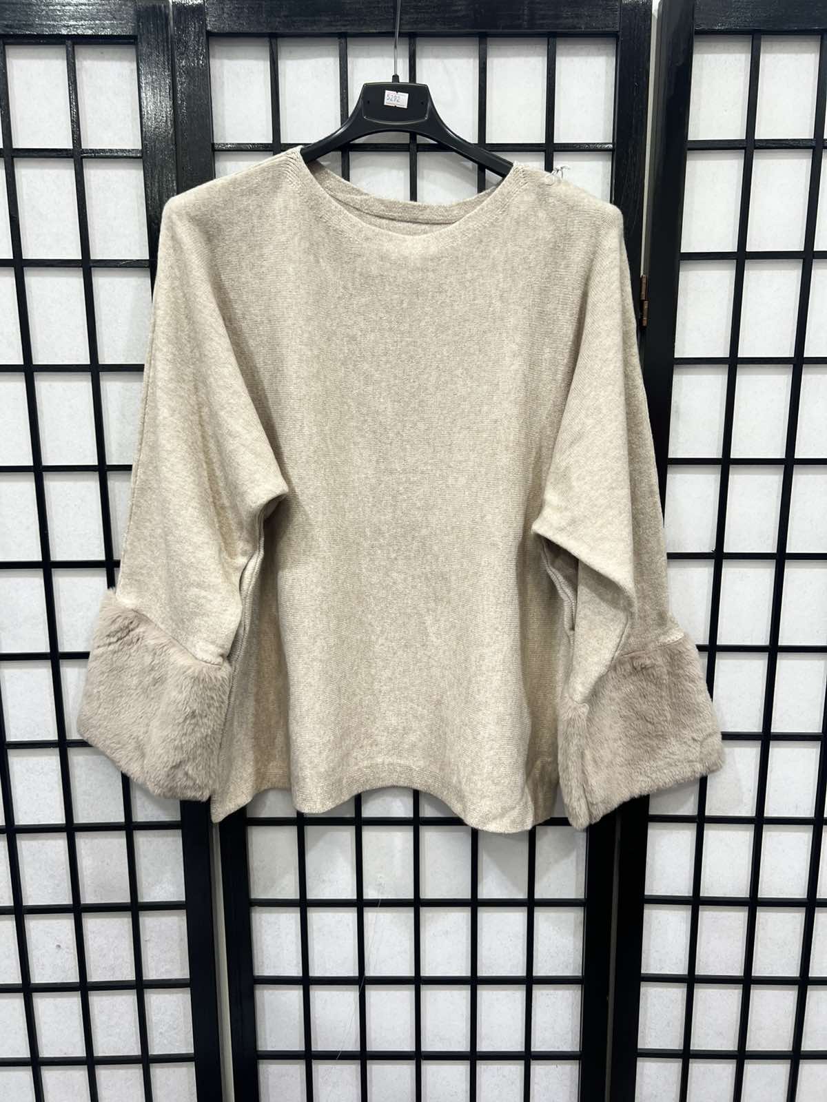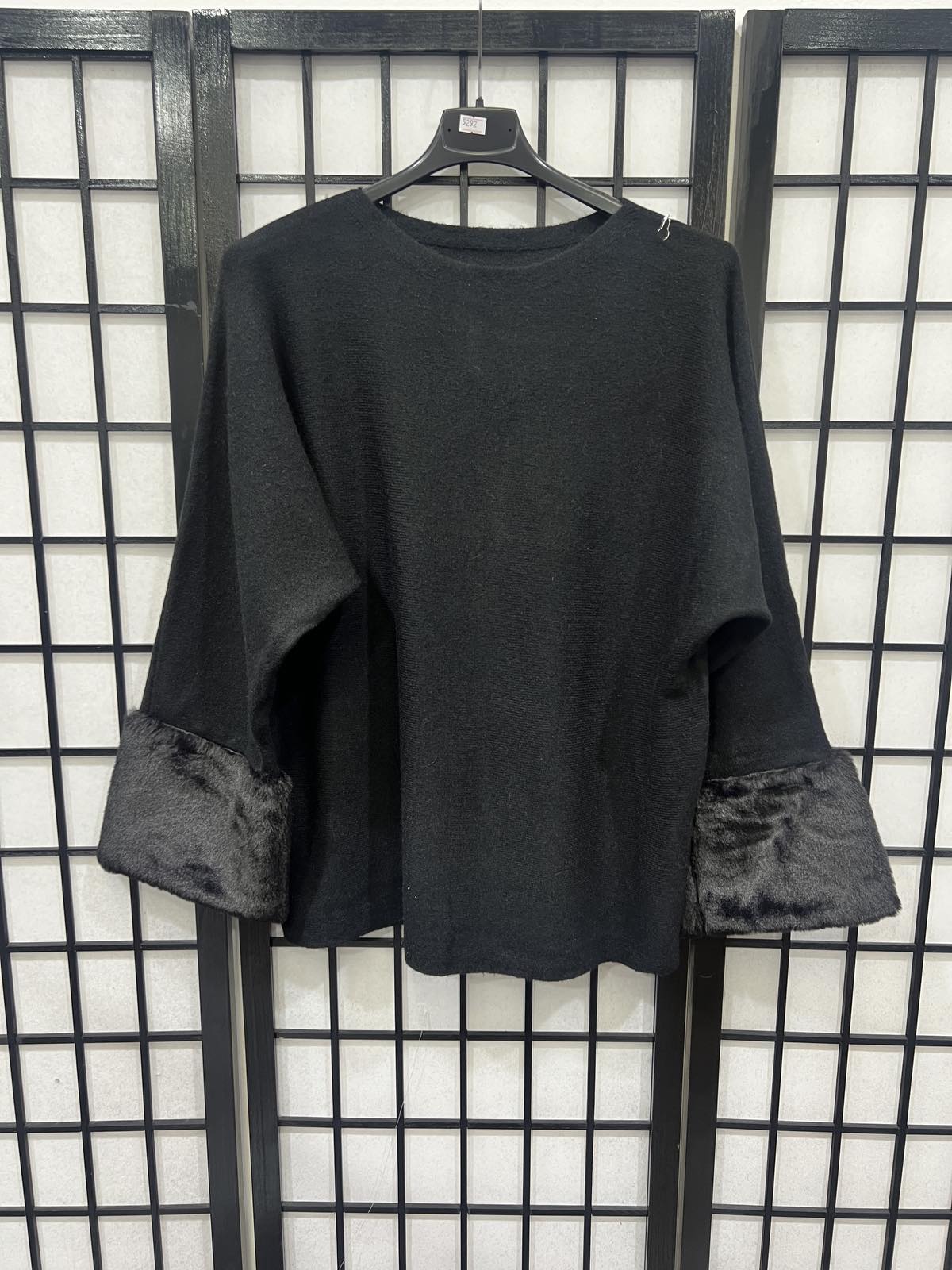Ladies Faux Fur Cuff Detail Jumper - 5292