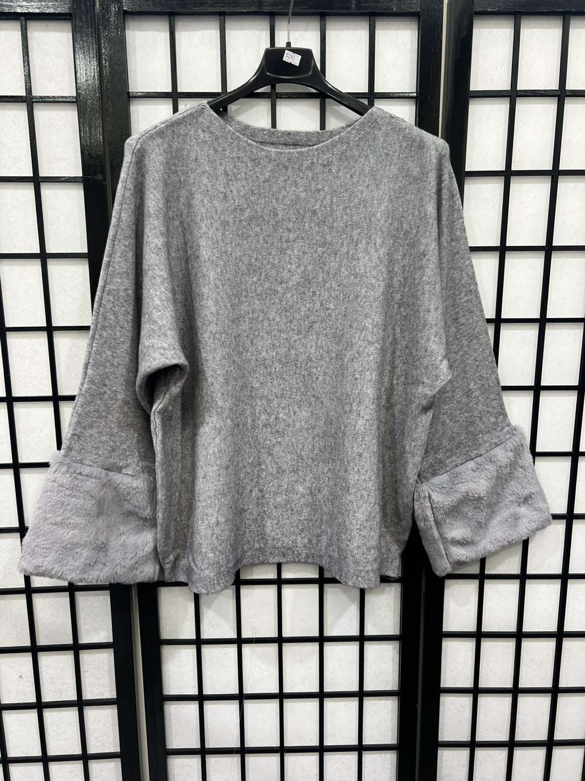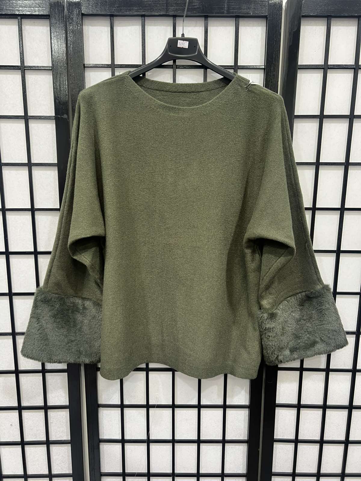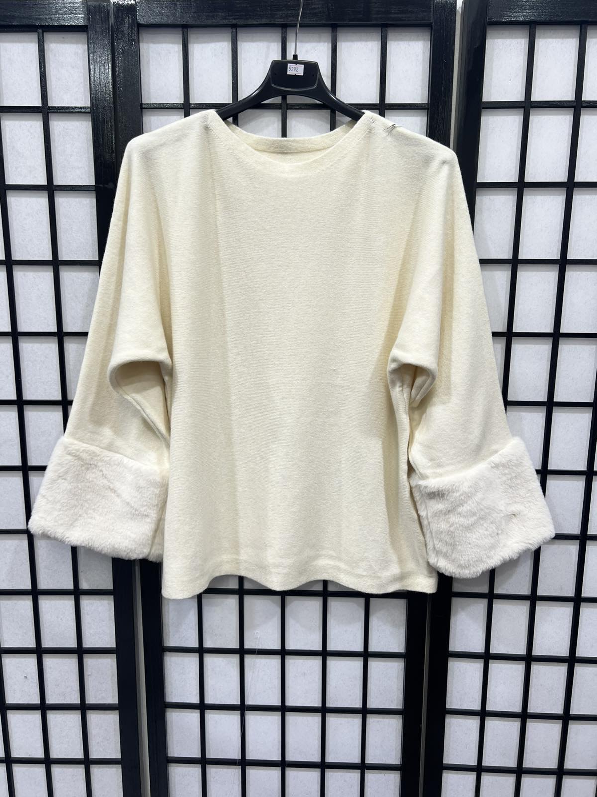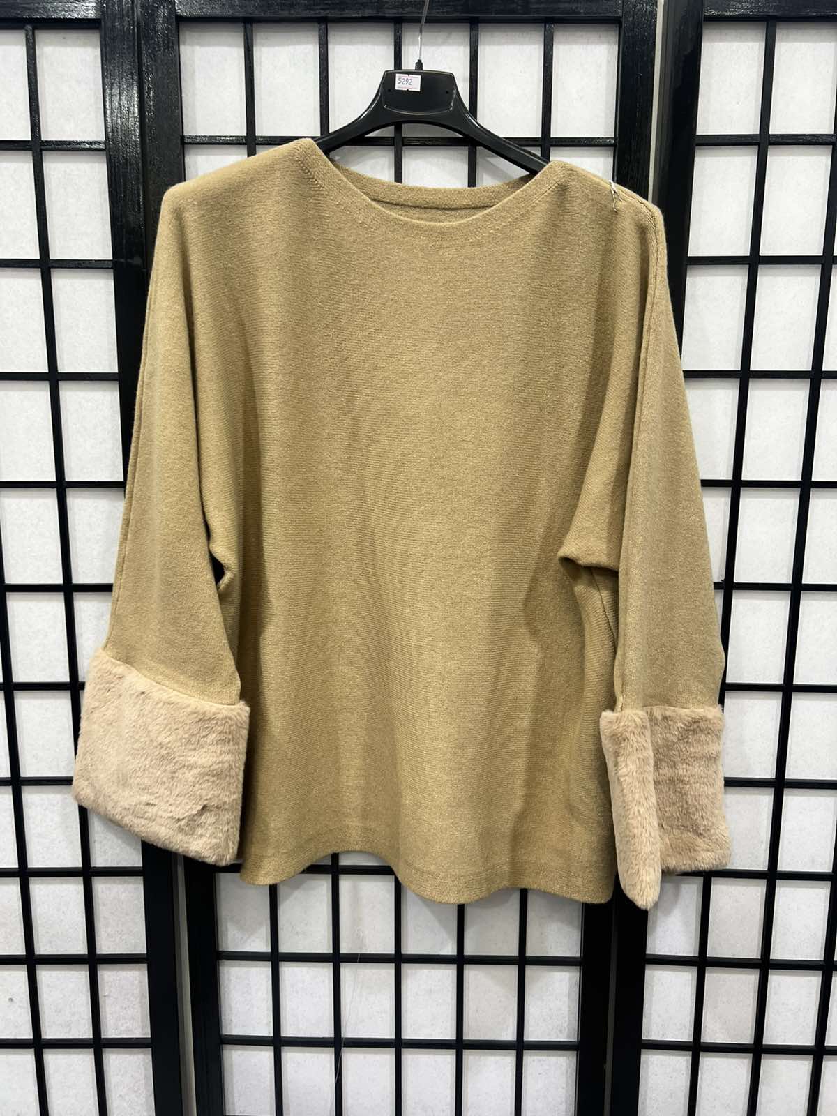 Ladies Faux Fur Cuff Detail Jumper - 5292