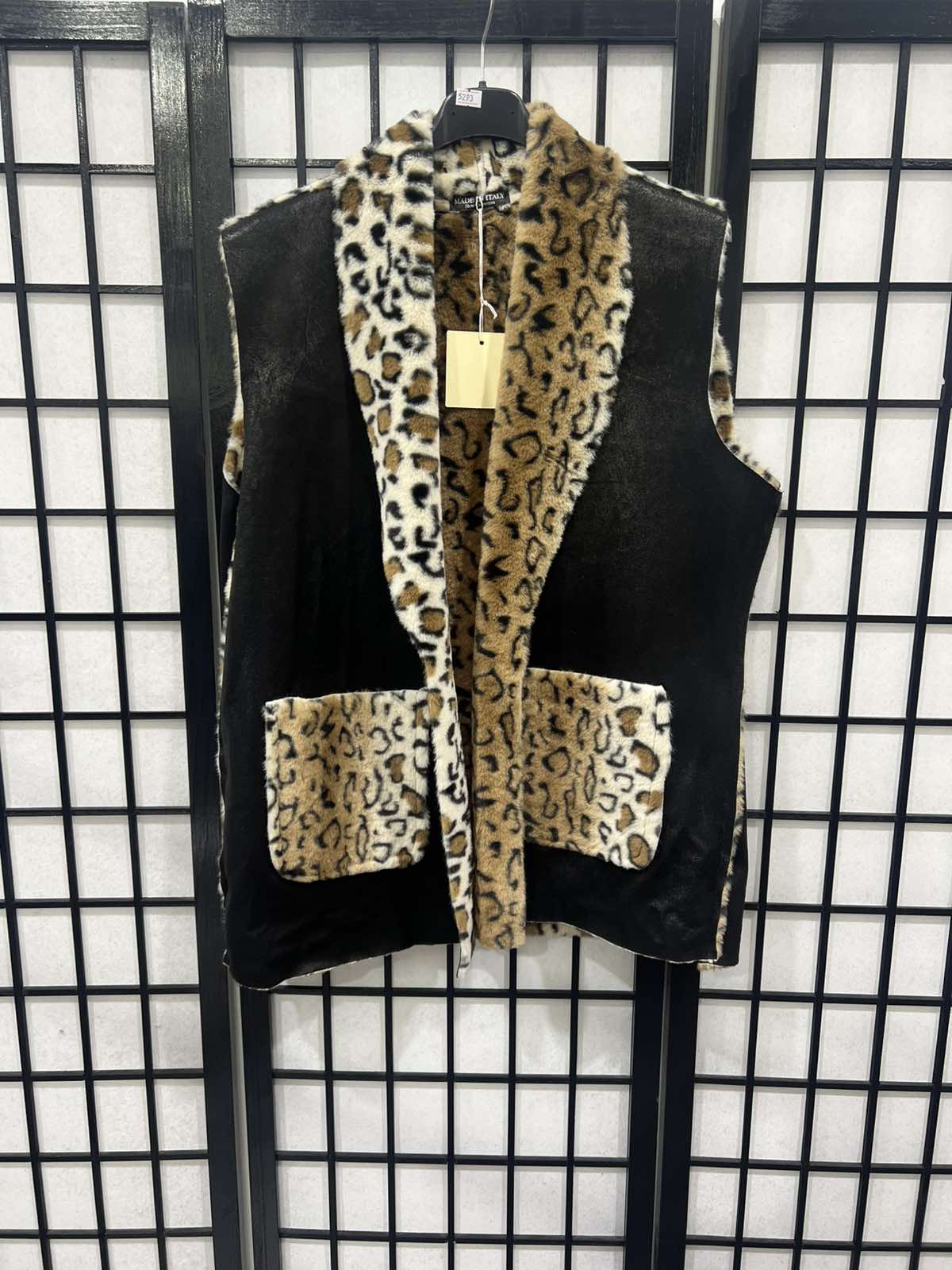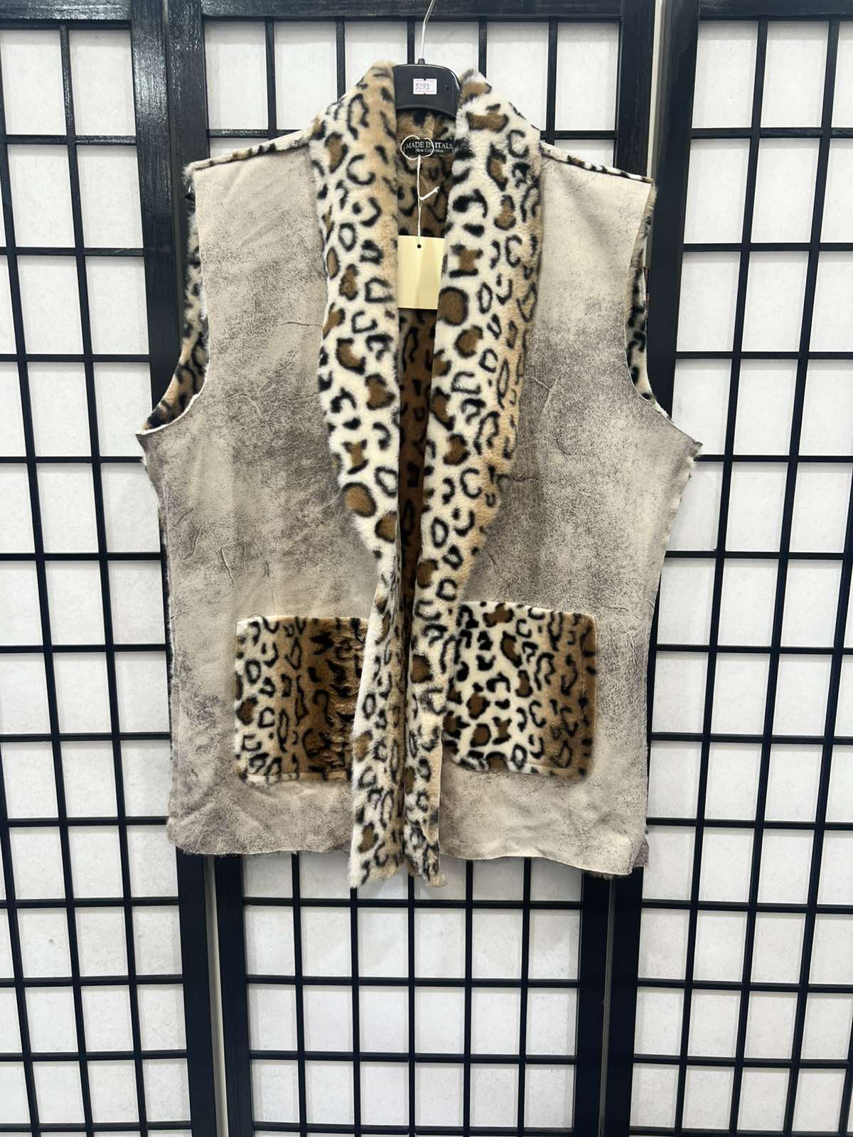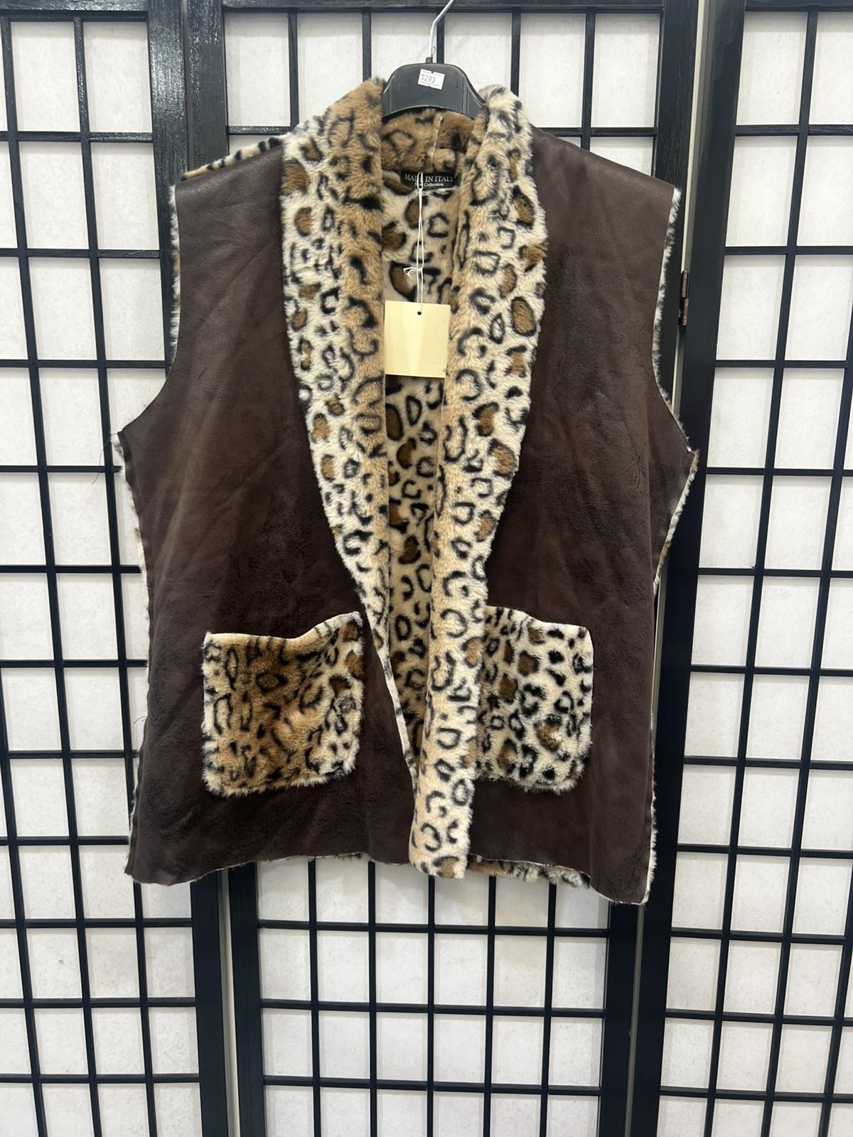 Italian Sleeveless Jacket With Leopard Print Faux Fur - 5293