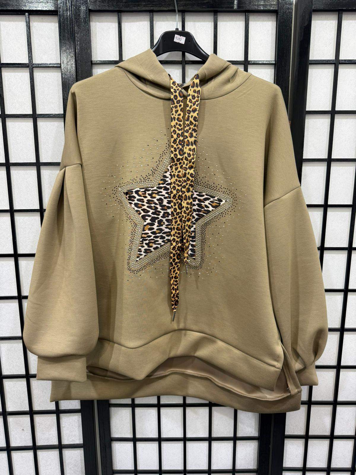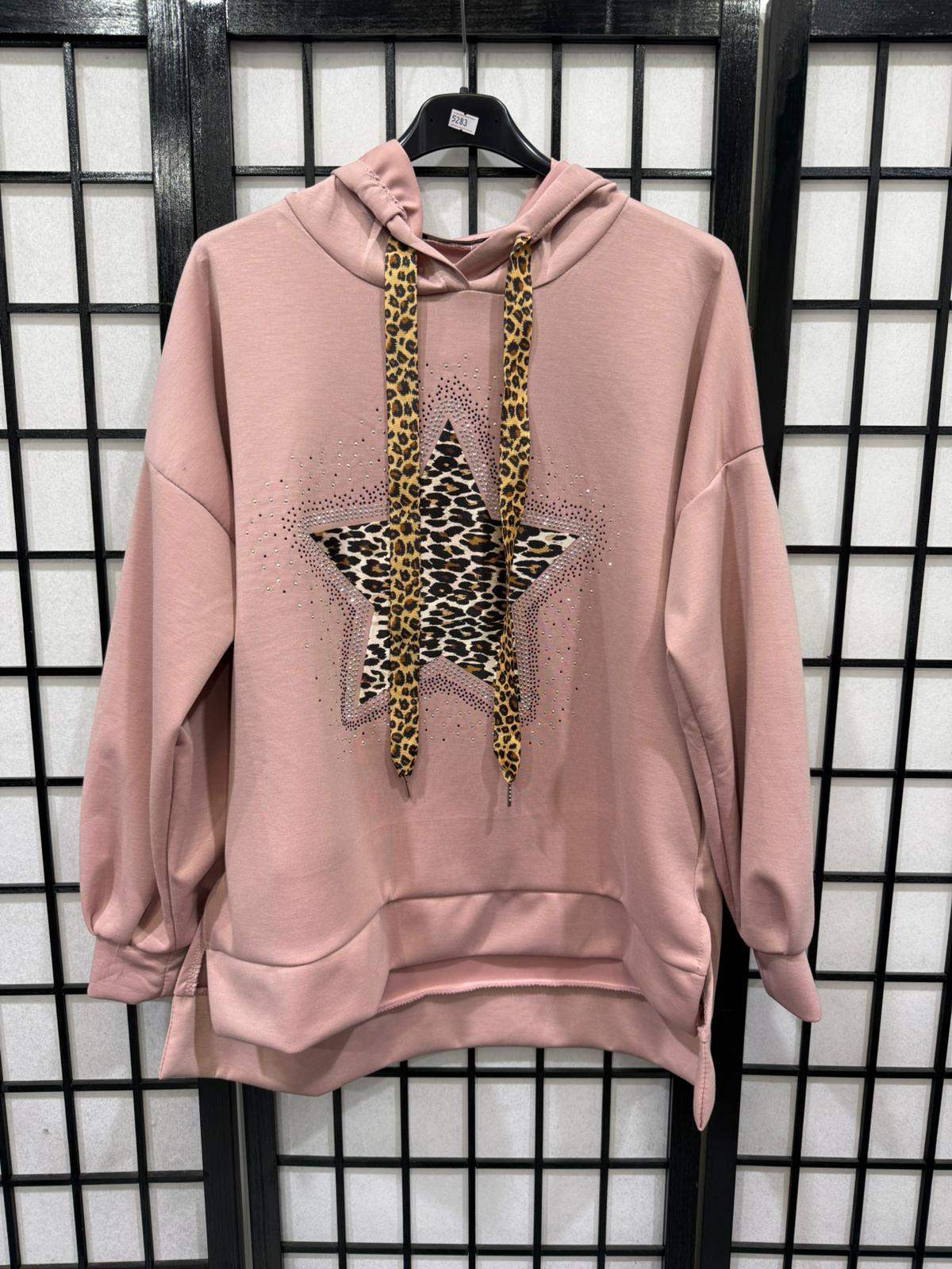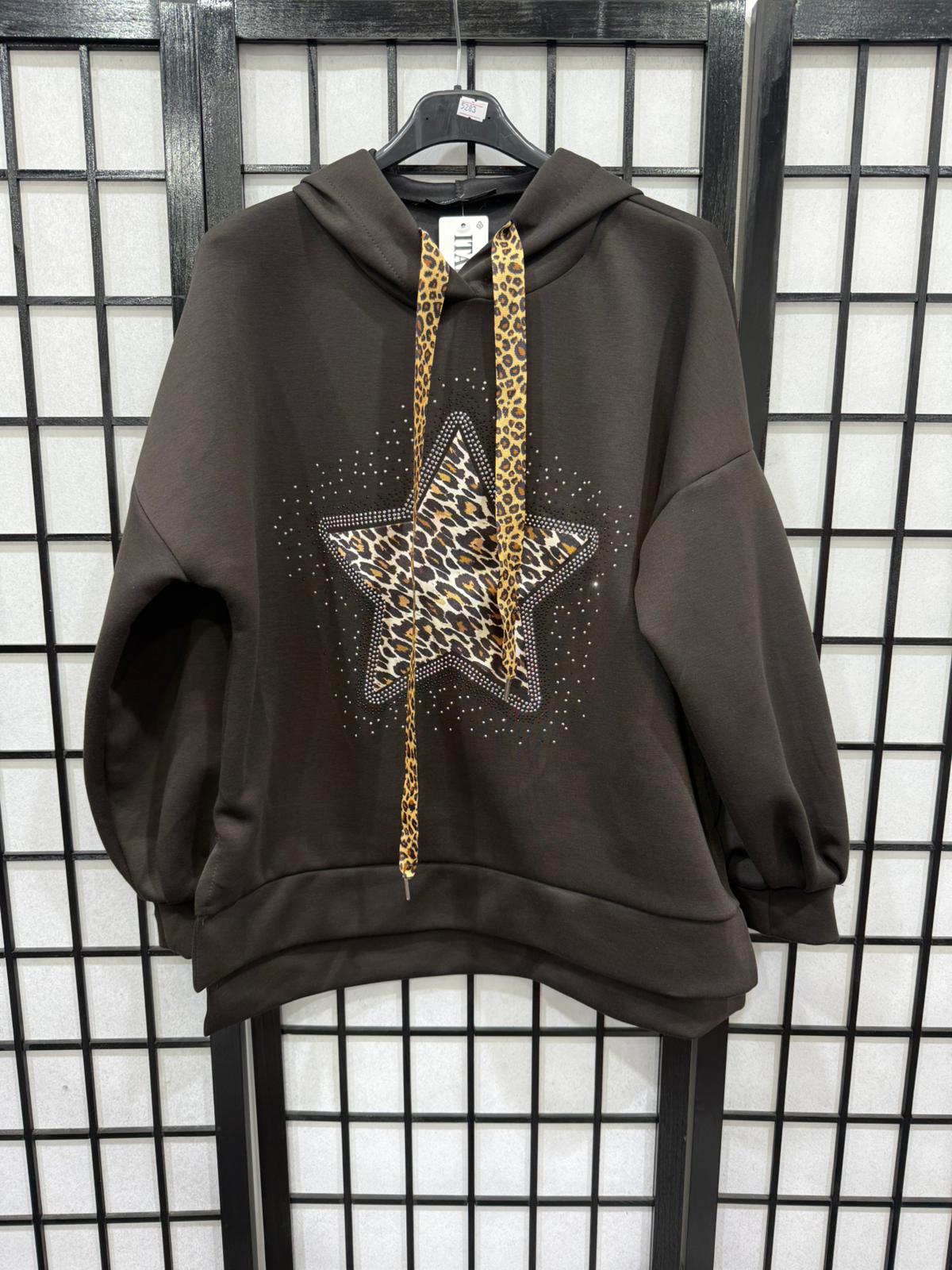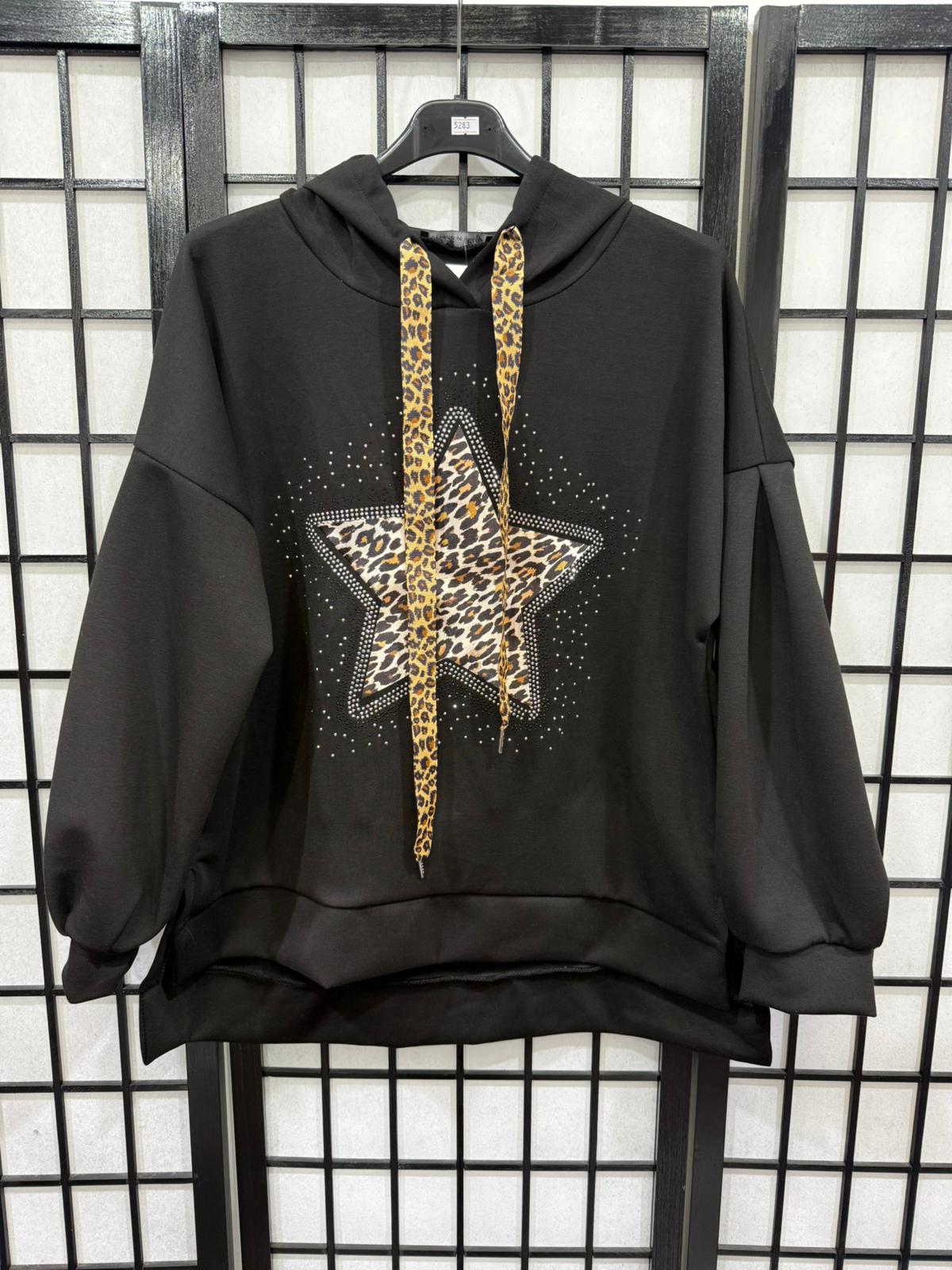 Italian High Low Hoodie With Leopard Print Star - 5283
