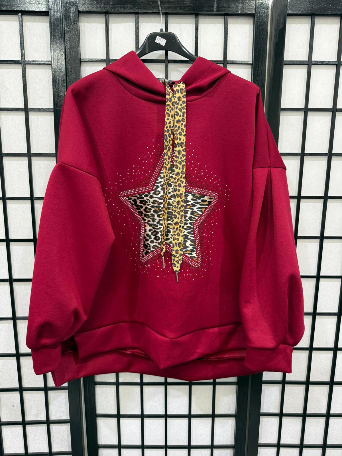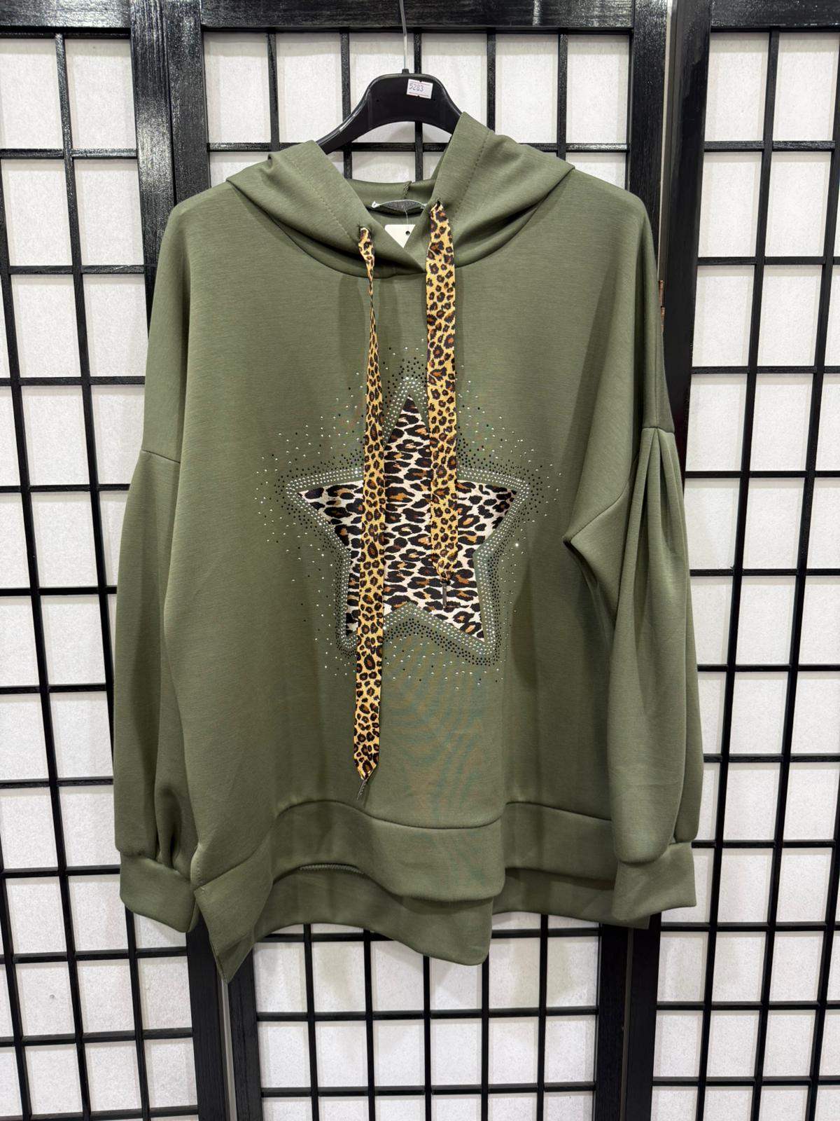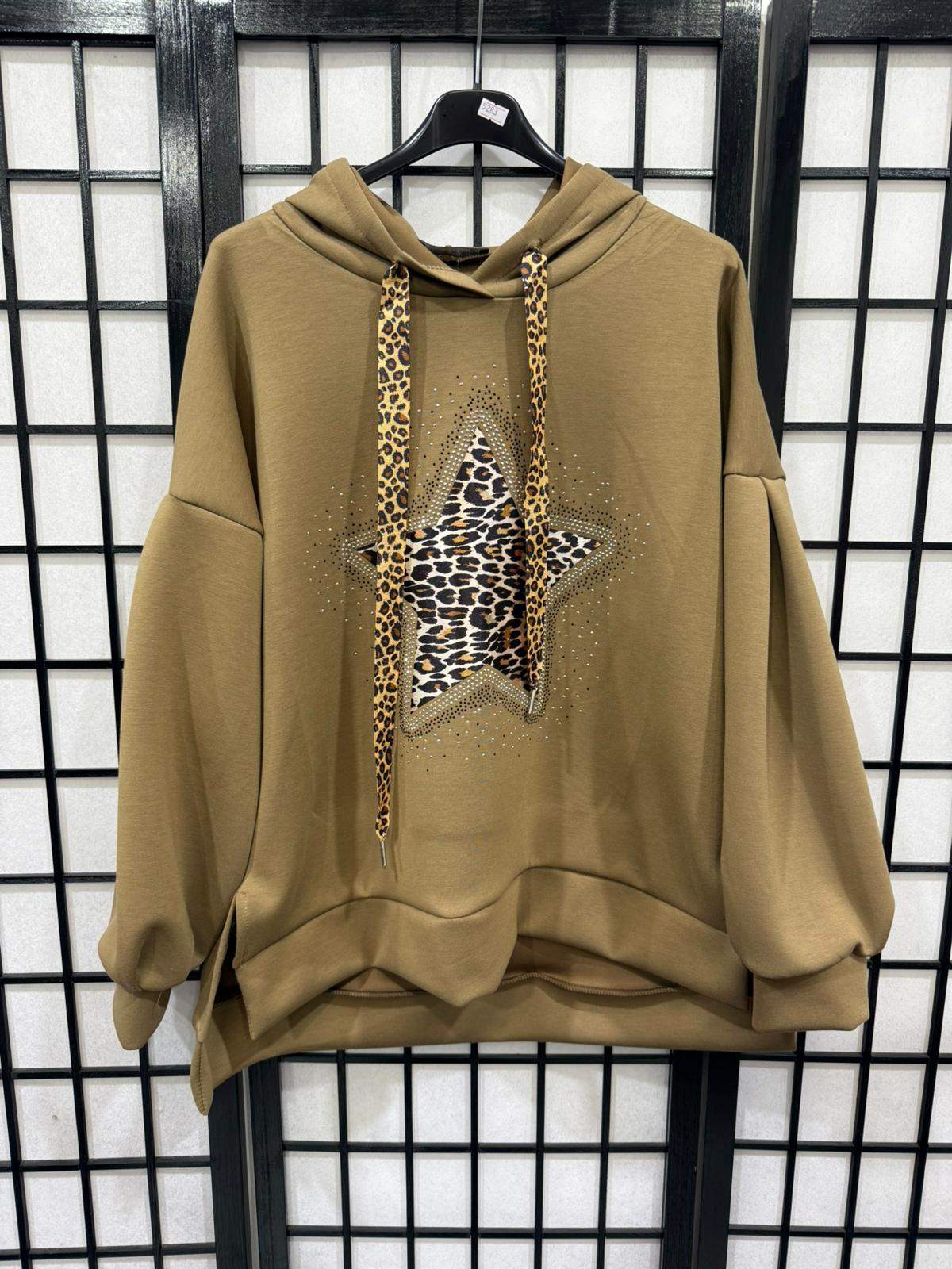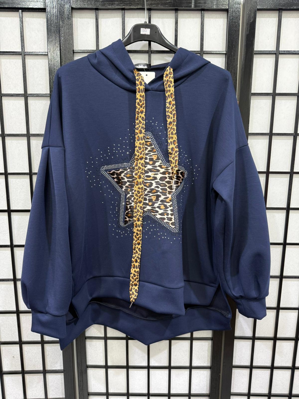 Italian High Low Hoodie With Leopard Print Star - 5283