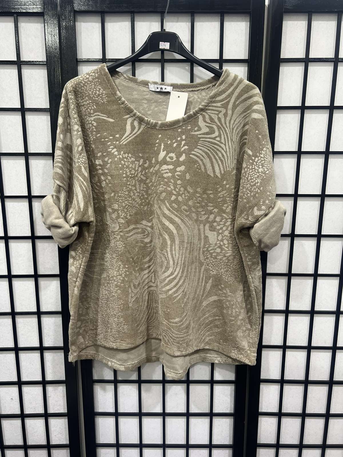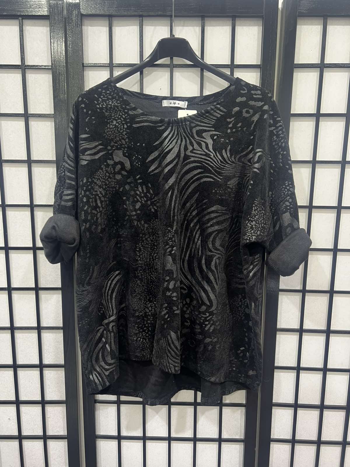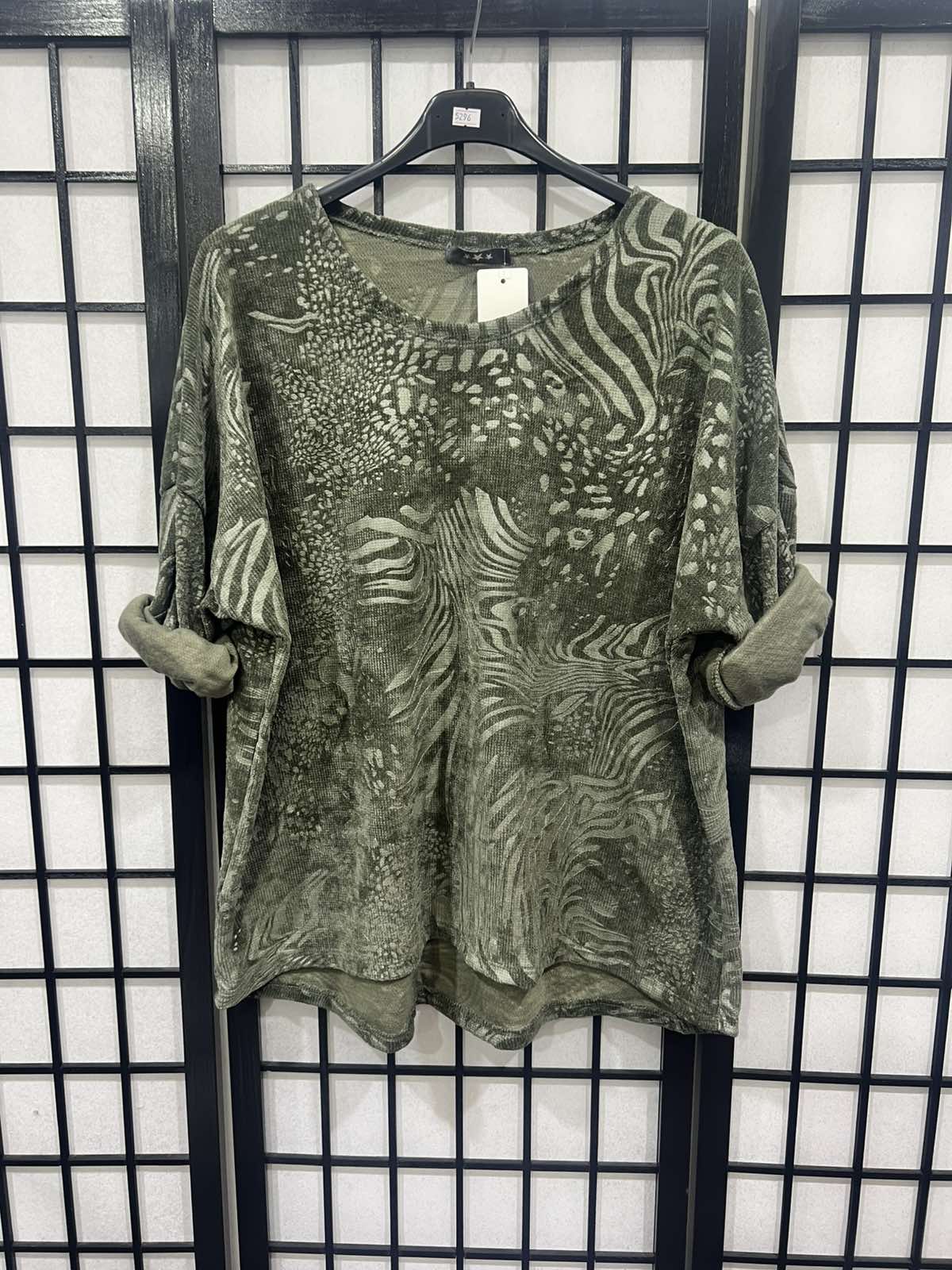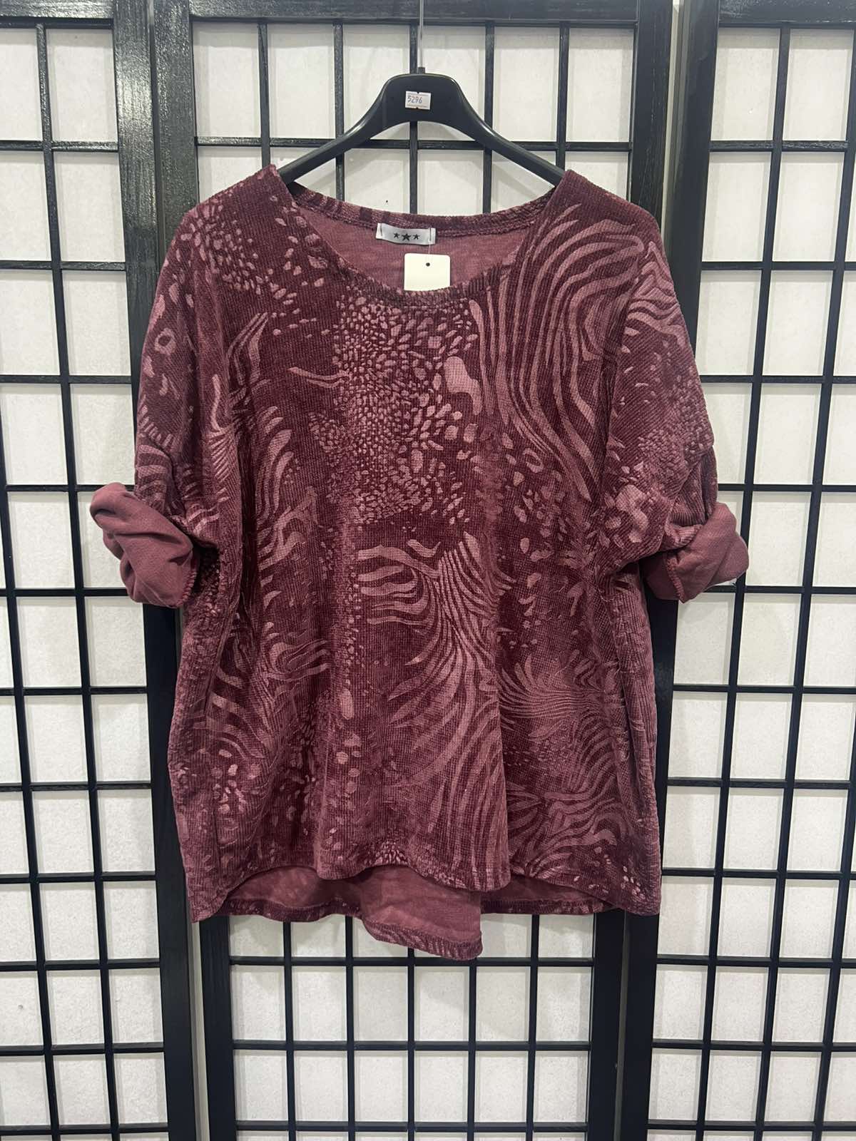 Italian Corduroy High Low Top With Printed Detail - 5296