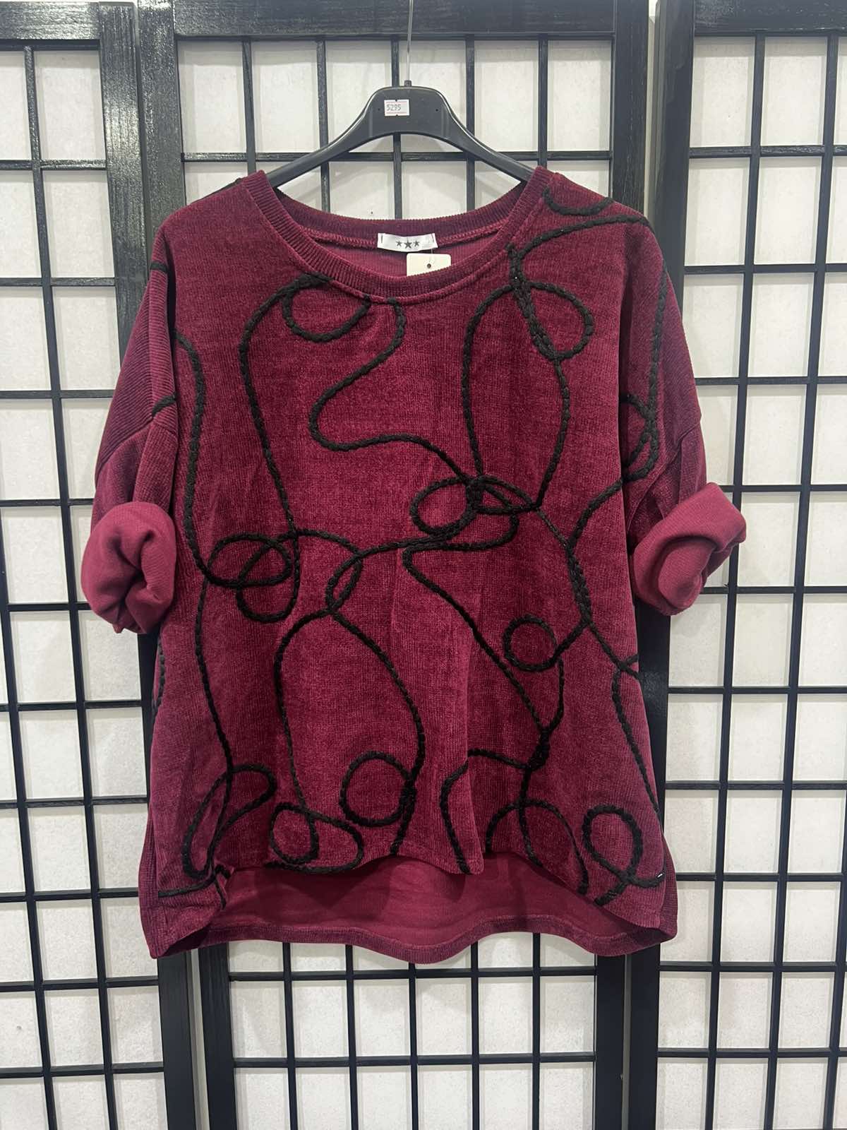 Italian High Low Corduroy Top With Thread Detail On Front- 5295