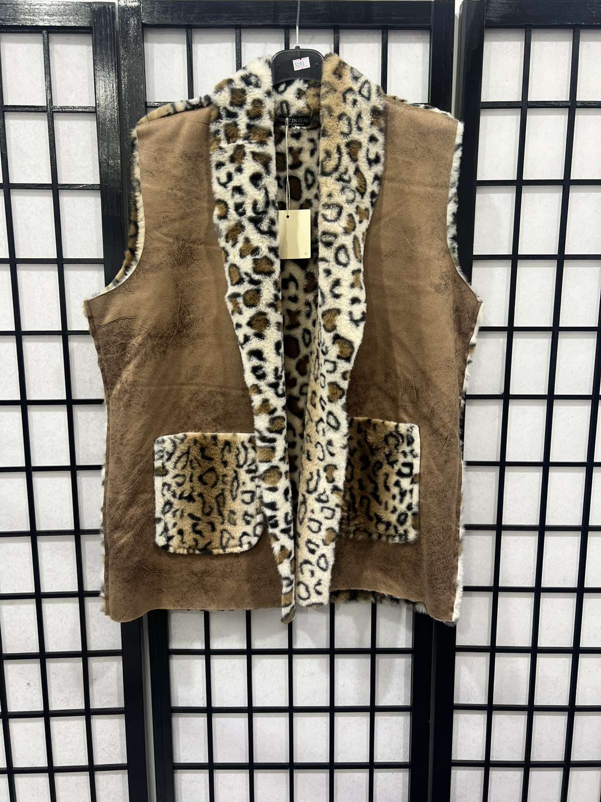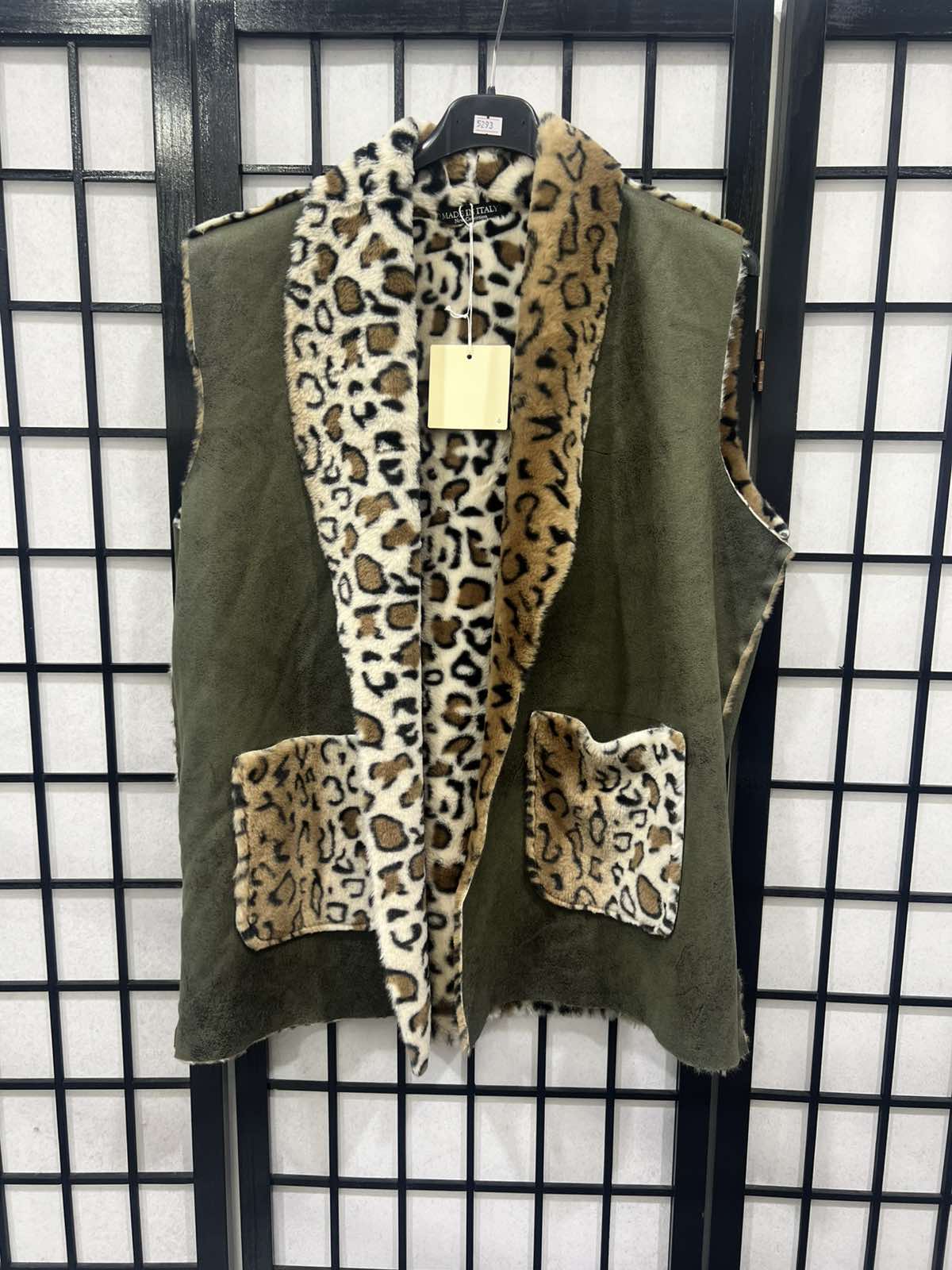 Italian Sleeveless Jacket With Leopard Print Faux Fur - 5293