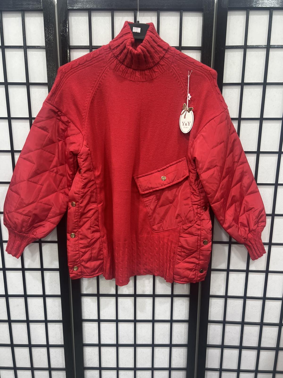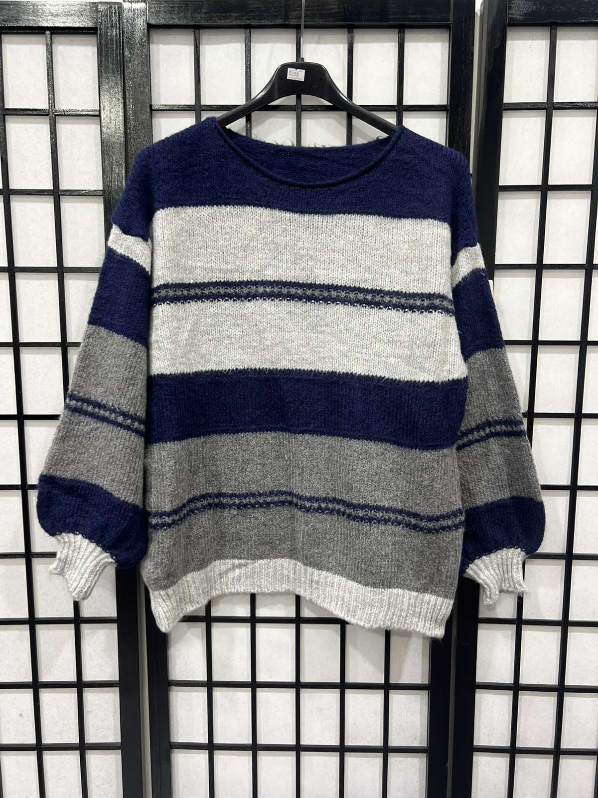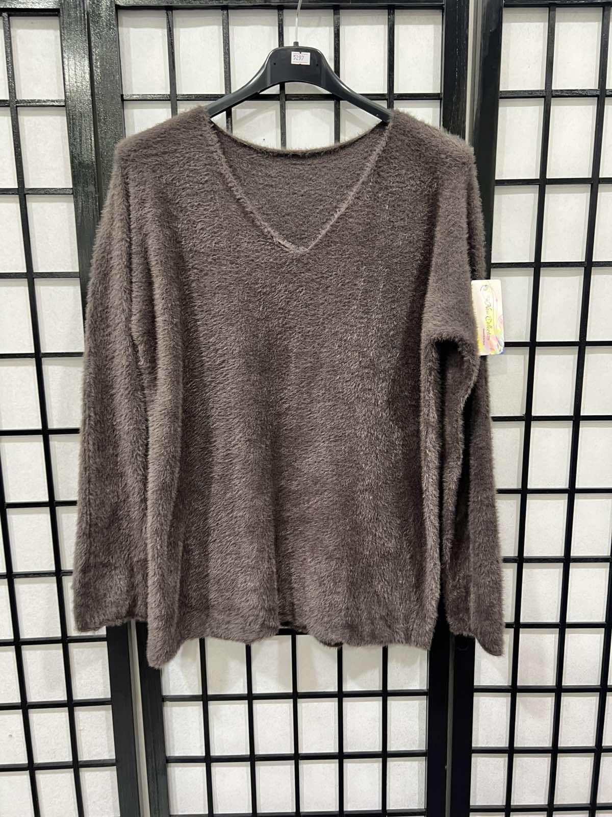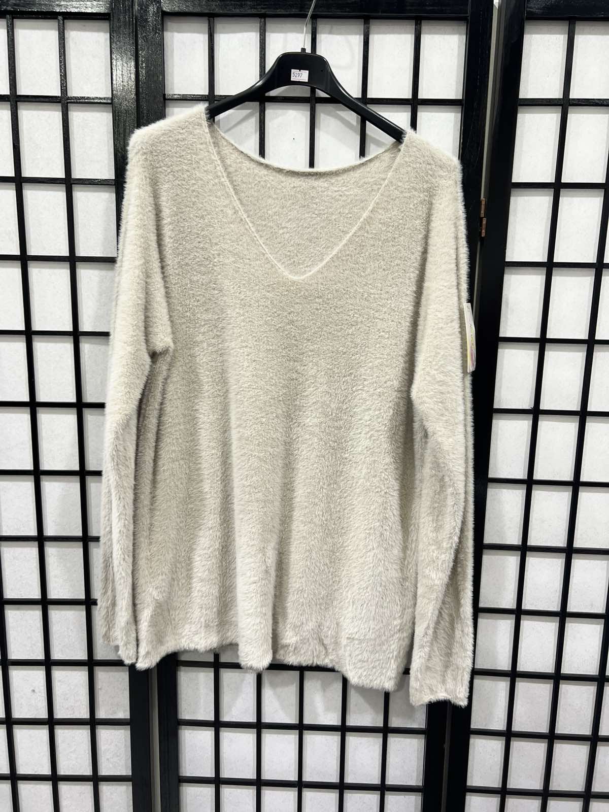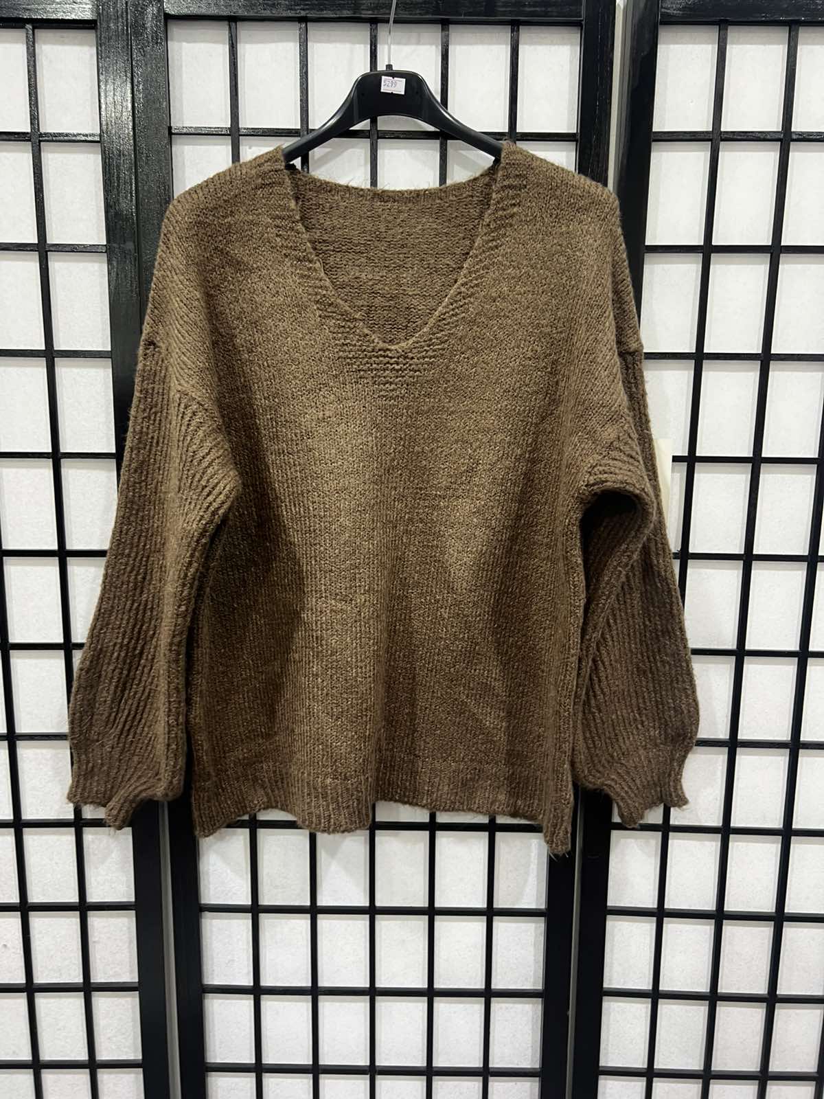 Italian V Neck Knitted Top With Cable Knit Detail With Snood- 5291