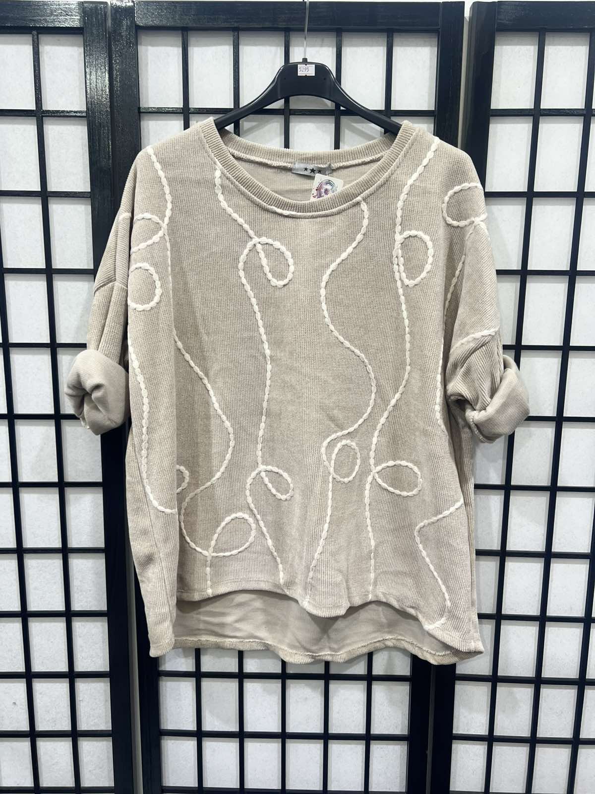 Italian High Low Corduroy Top With Thread Detail On Front- 5295