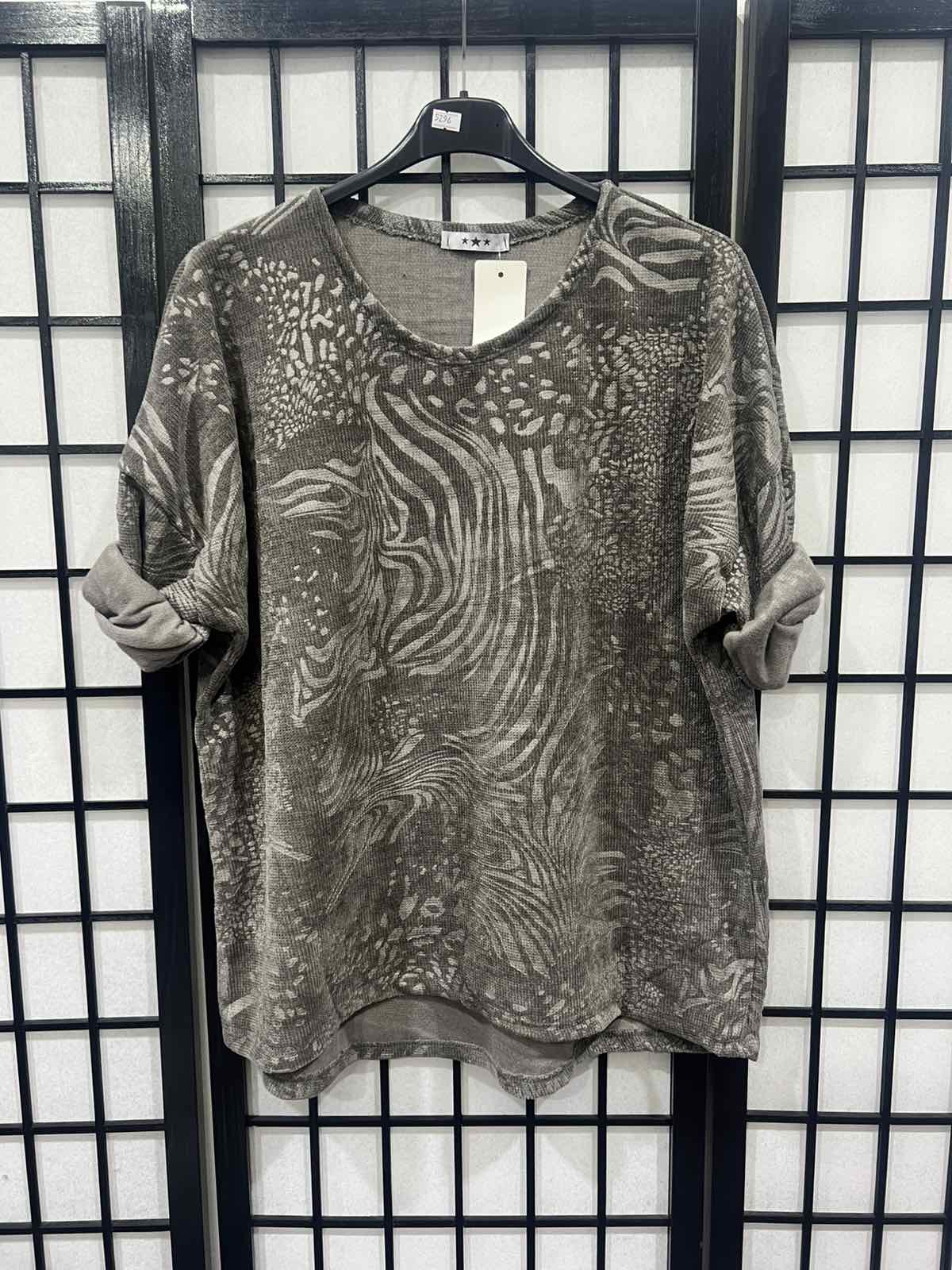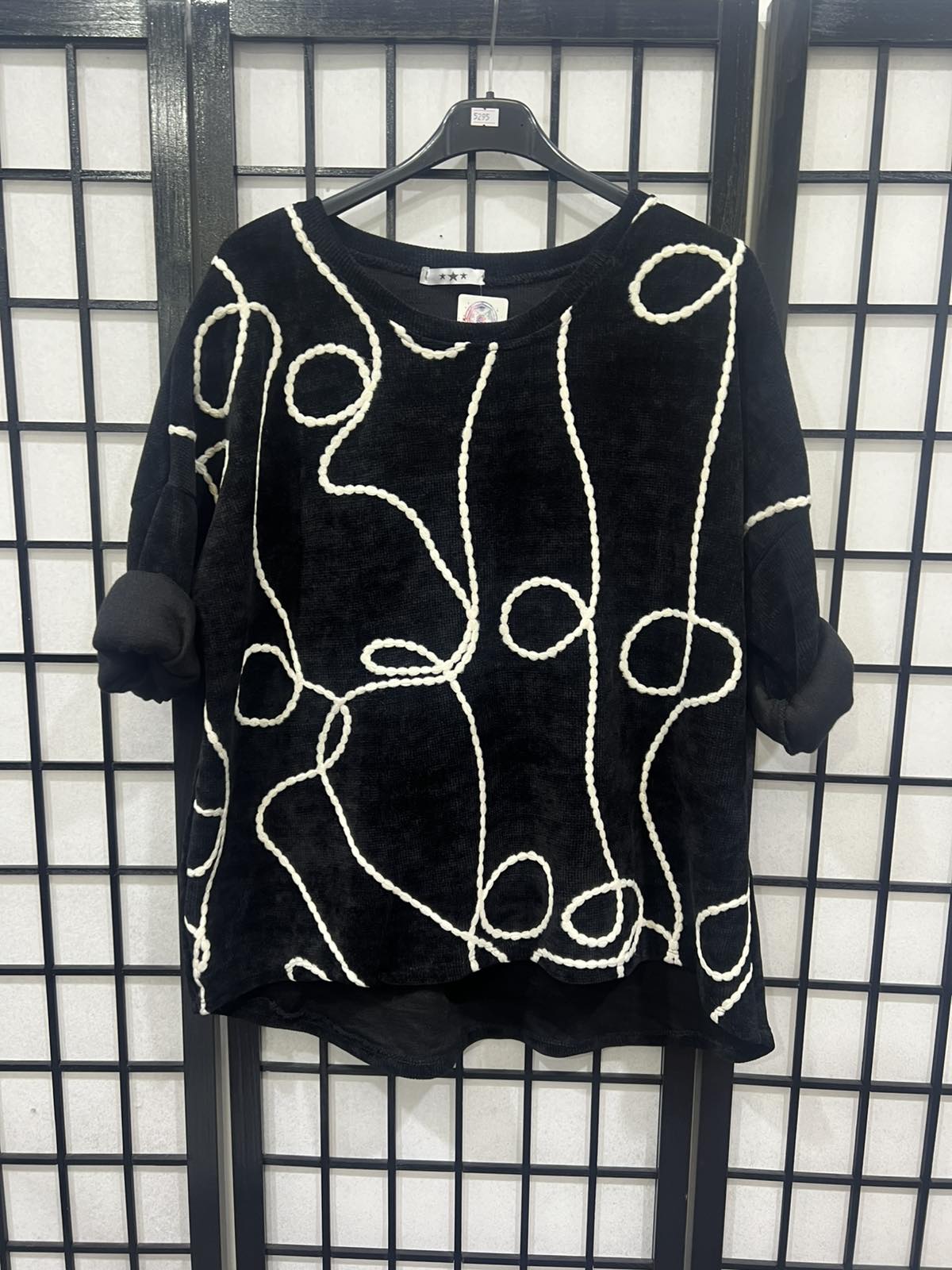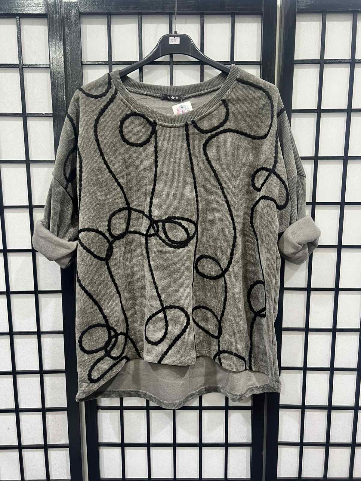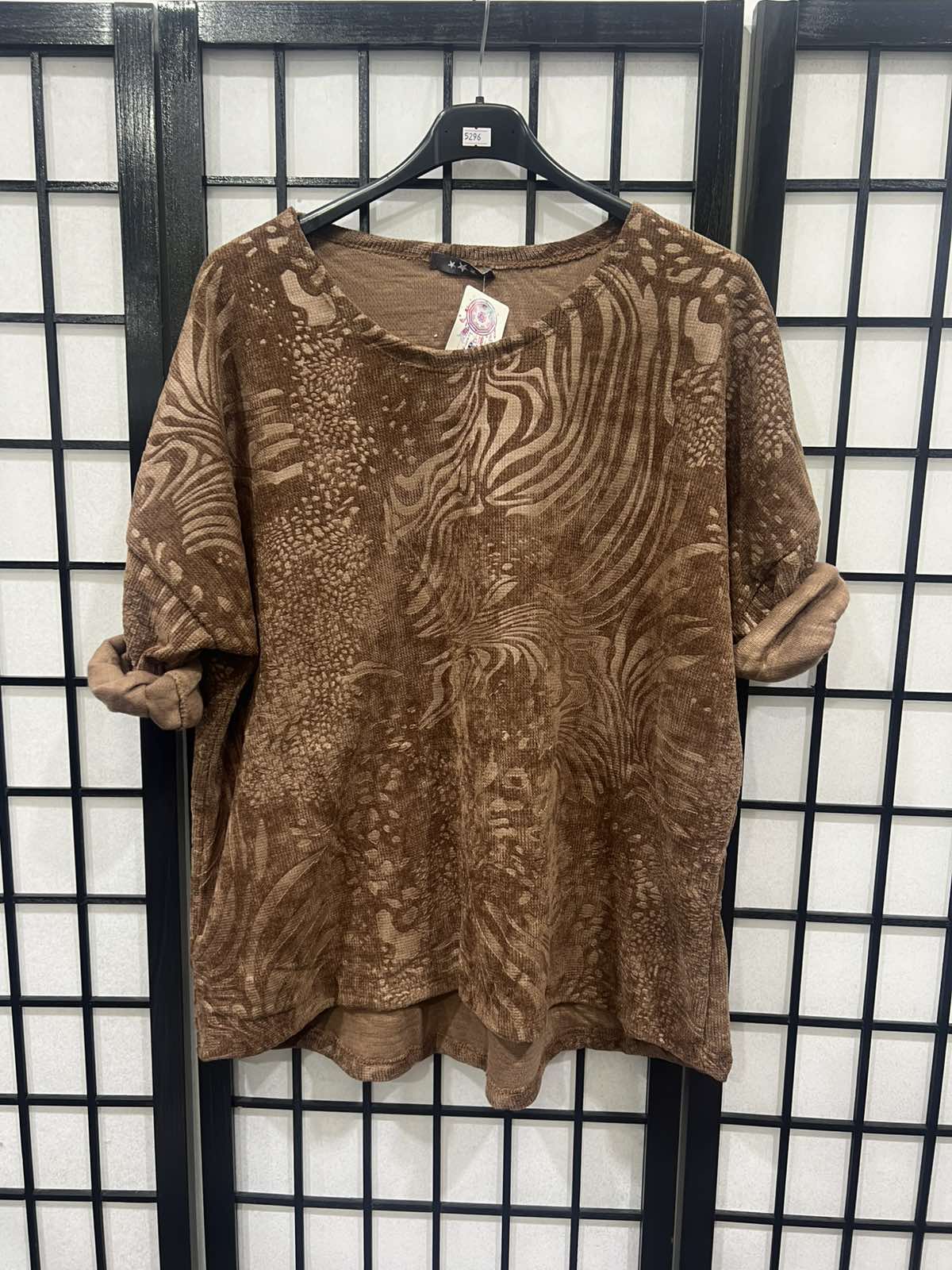 Italian Corduroy High Low Top With Printed Detail - 5296