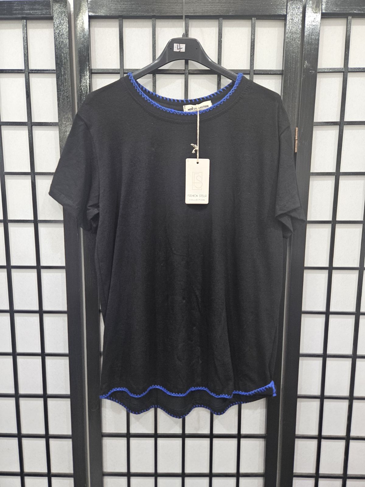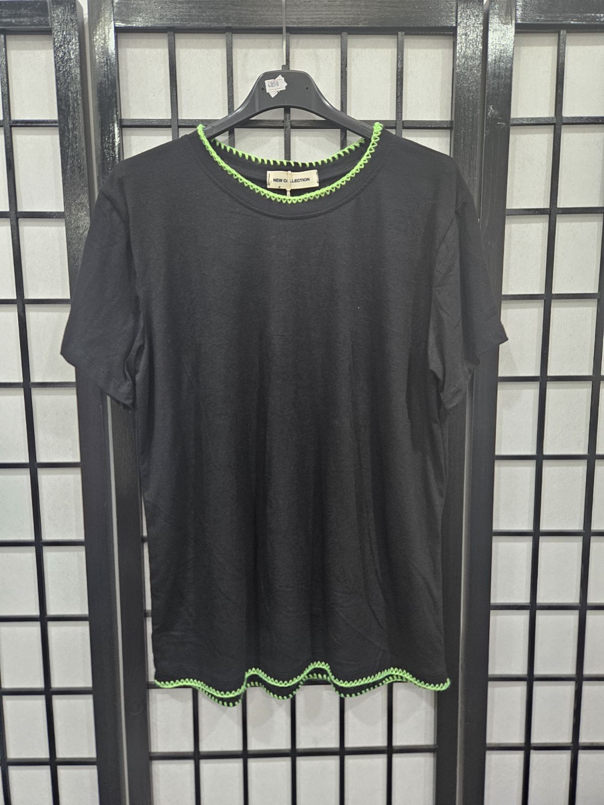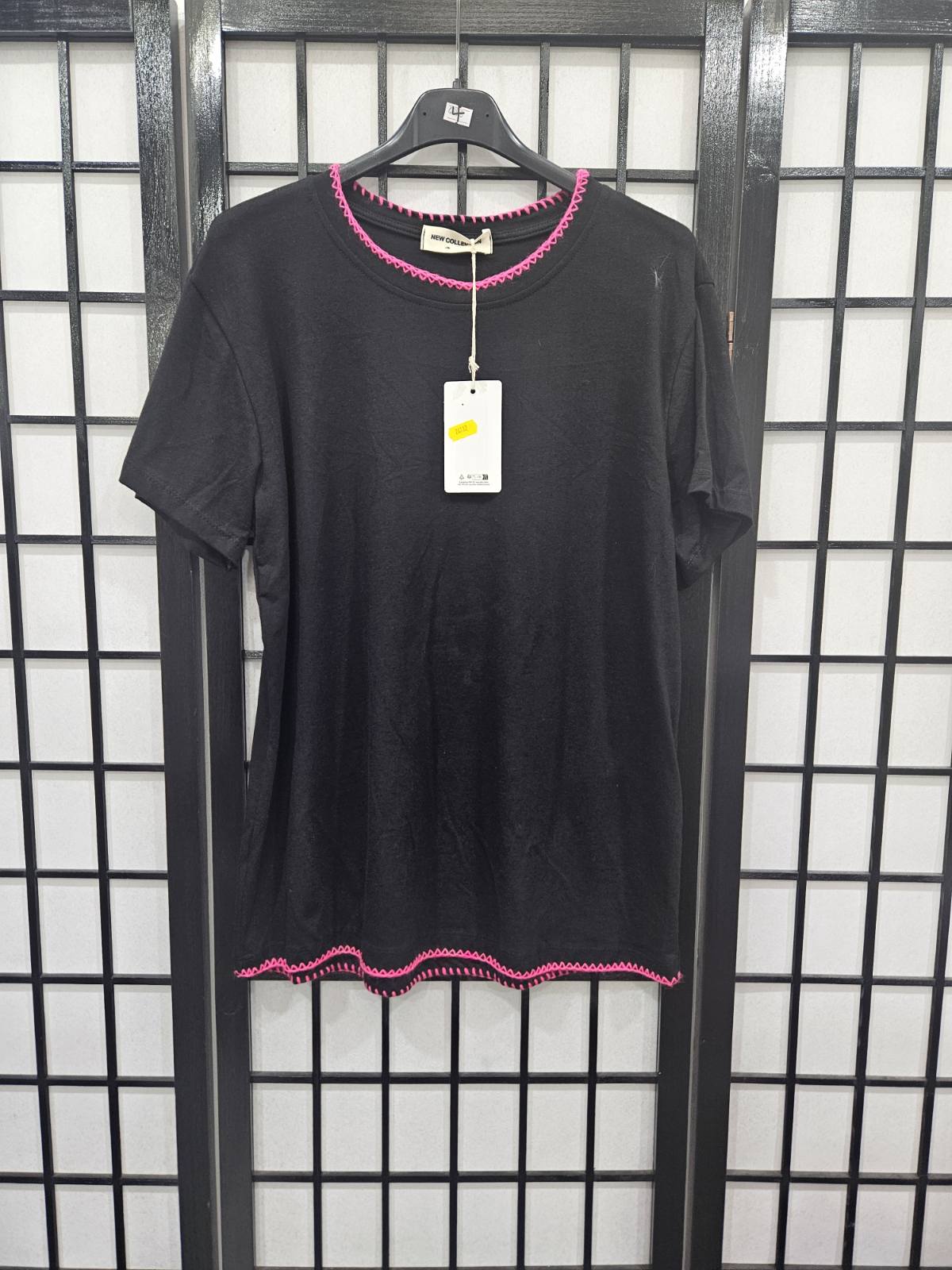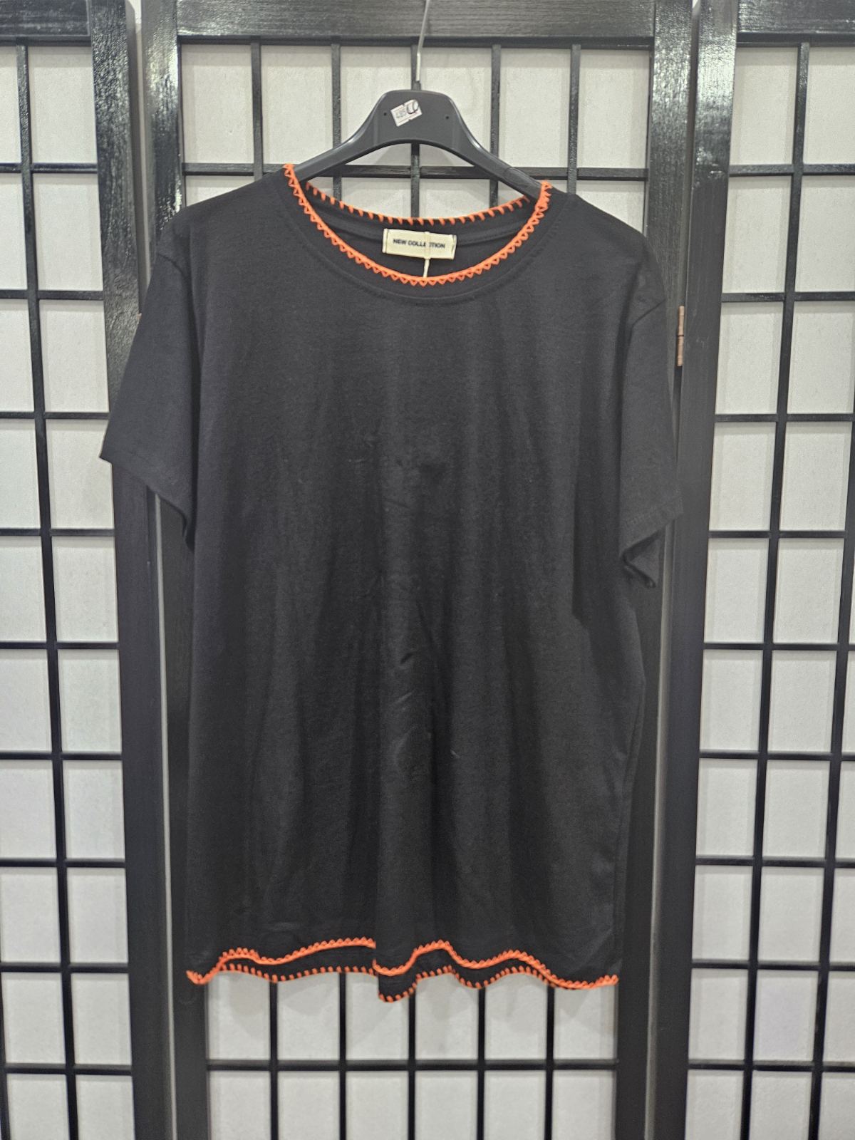 Italian Plain Black T Shirt With Stitching Detail On Neck And Hem- 4858