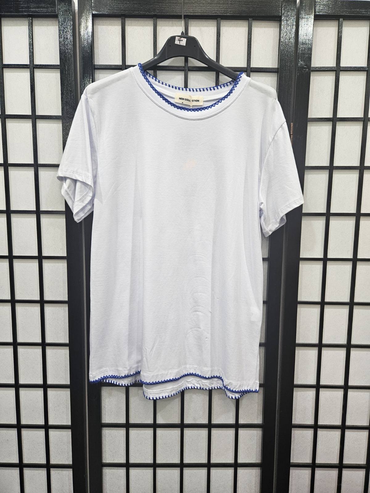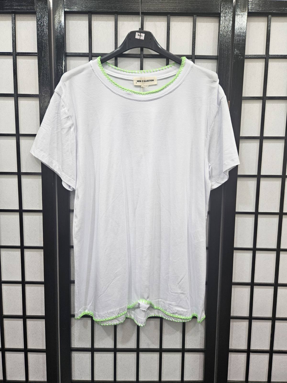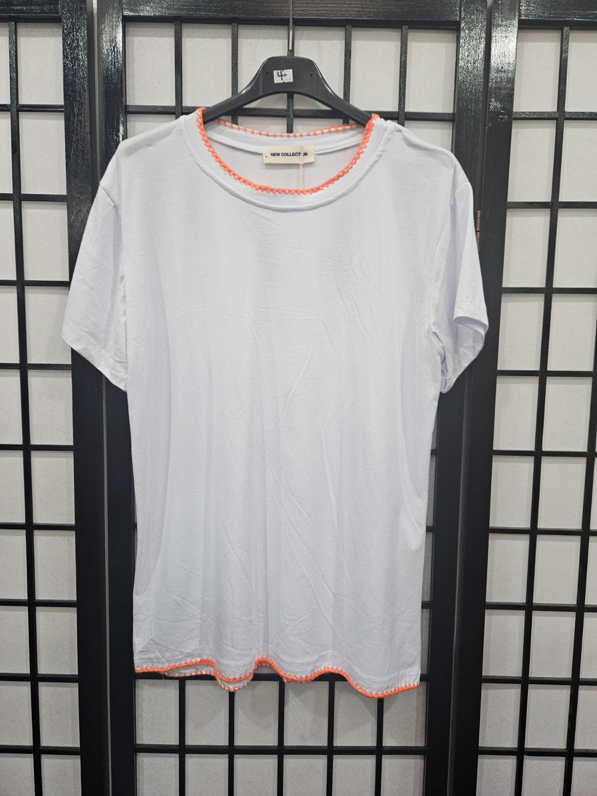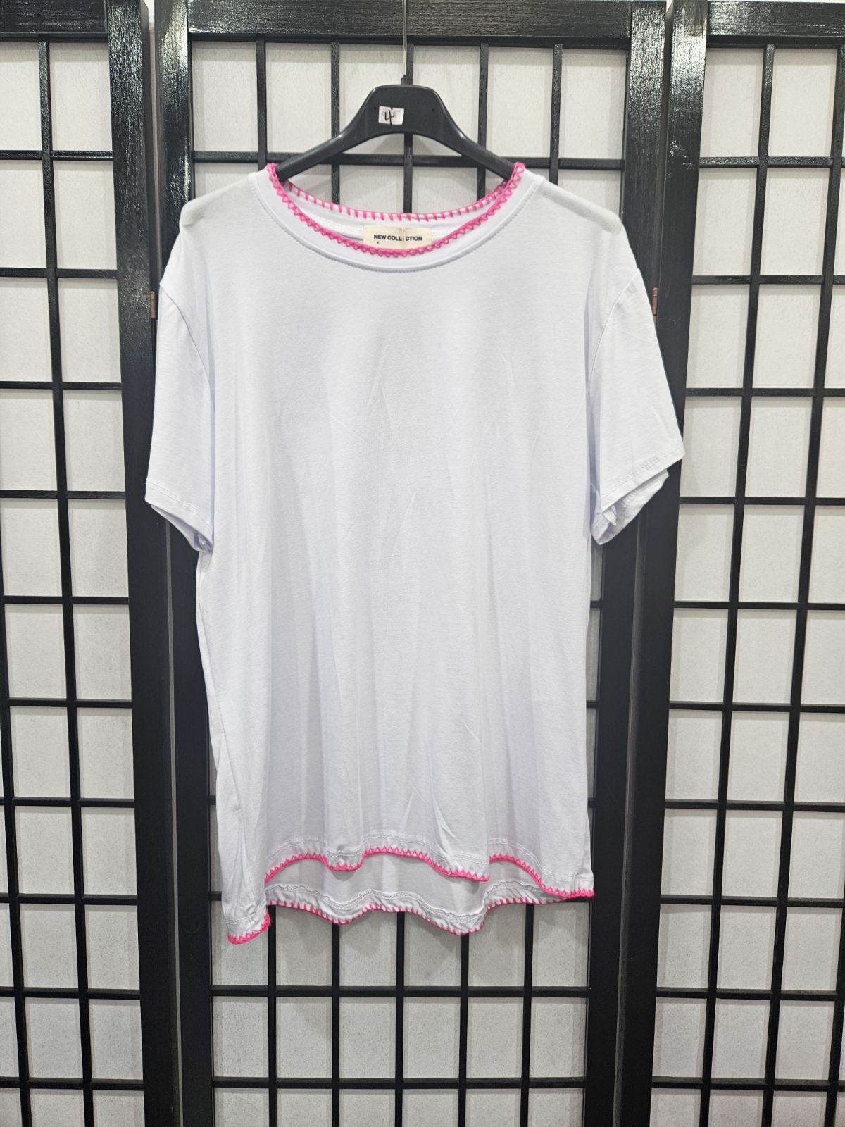 Italian White Plain T Shirt With Stitching Detail On Neck And Hem- 4858