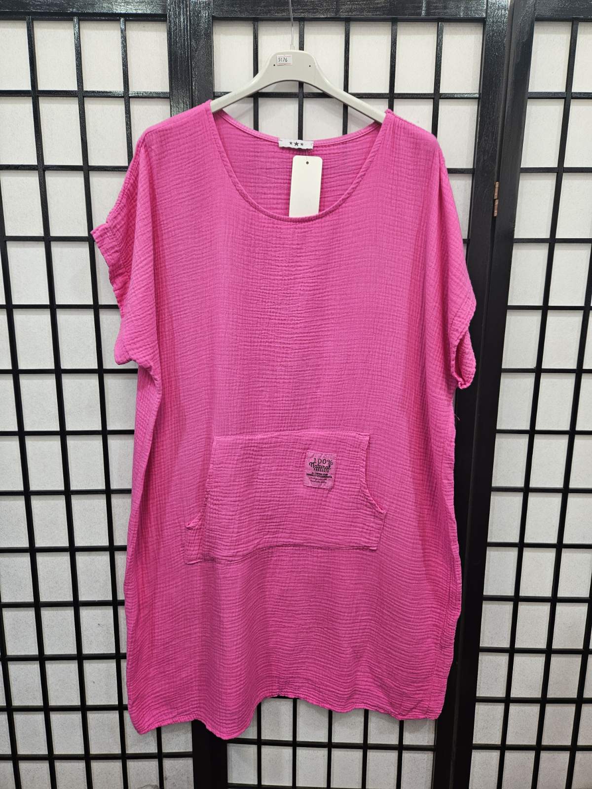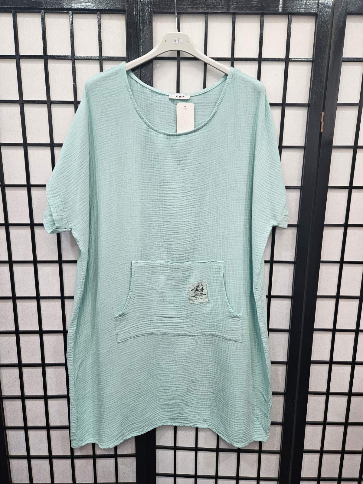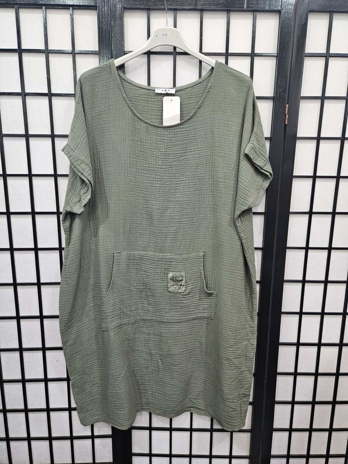 Italian Short Sleeve Dress With Kangaroo Pocket - 5176
