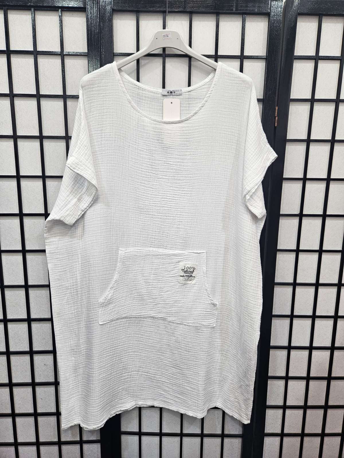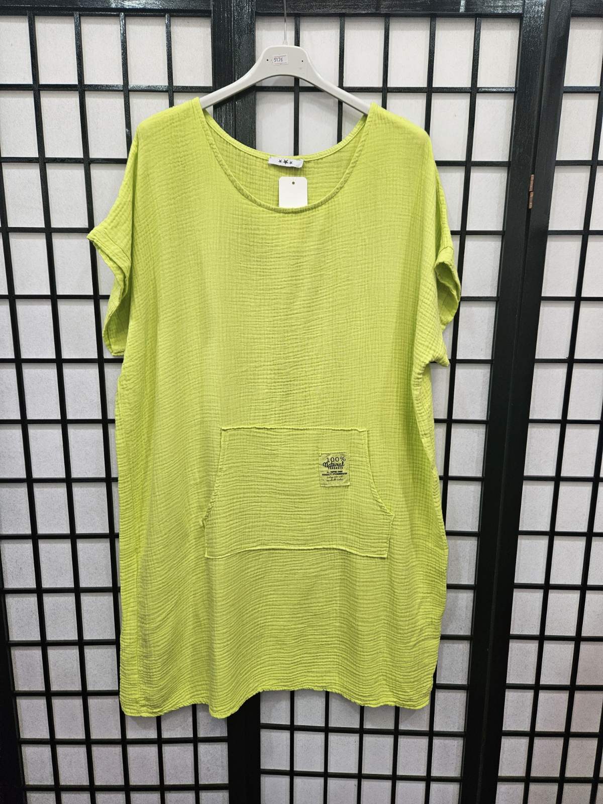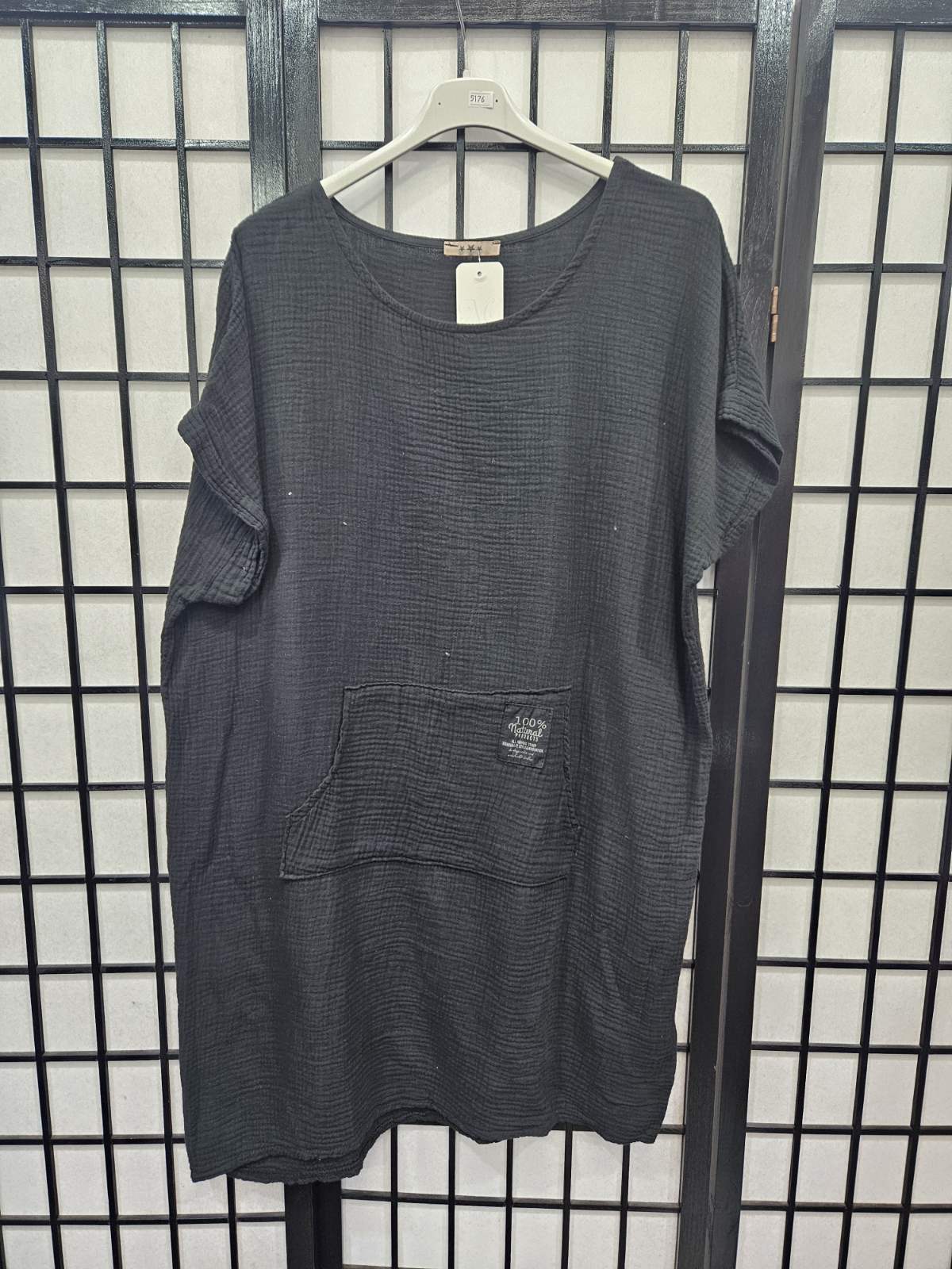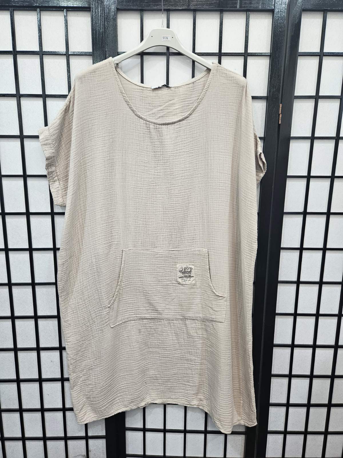 Italian Short Sleeve Dress With Kangaroo Pocket - 5176