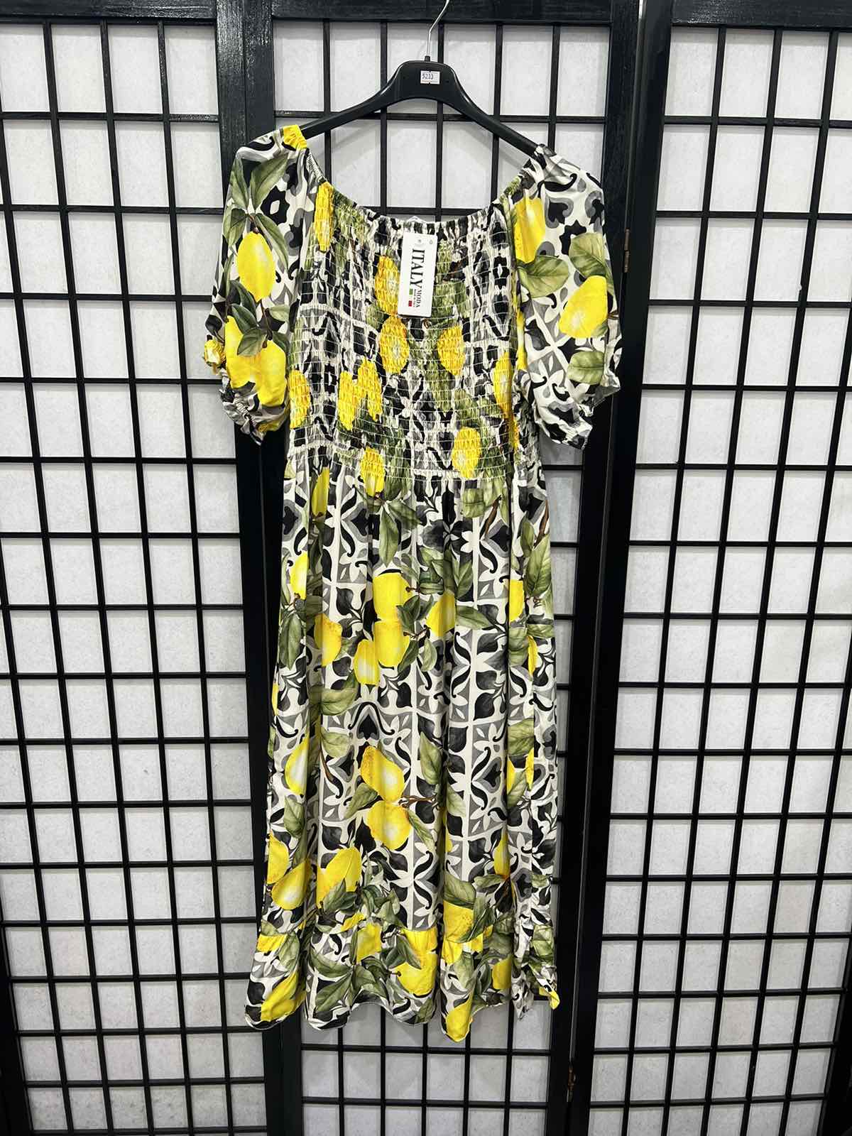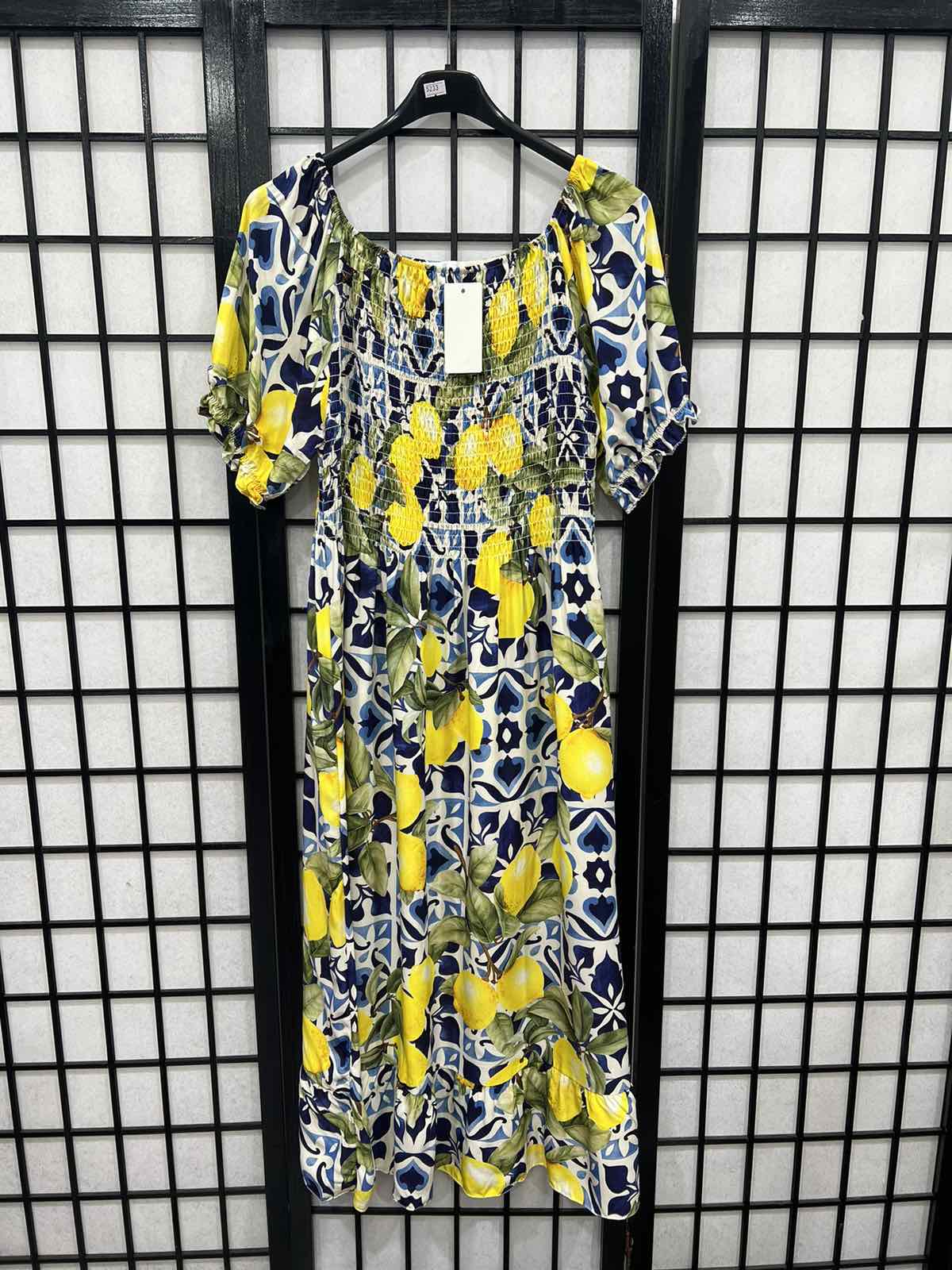 Italian Lemon Print Elasticated Dress-5233