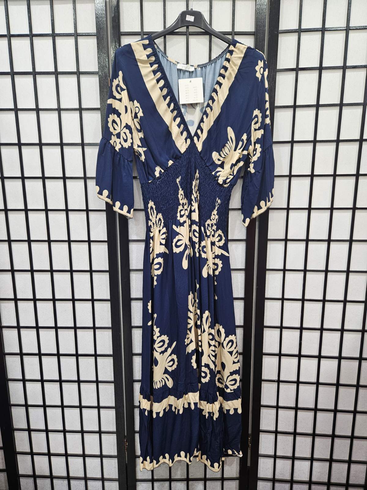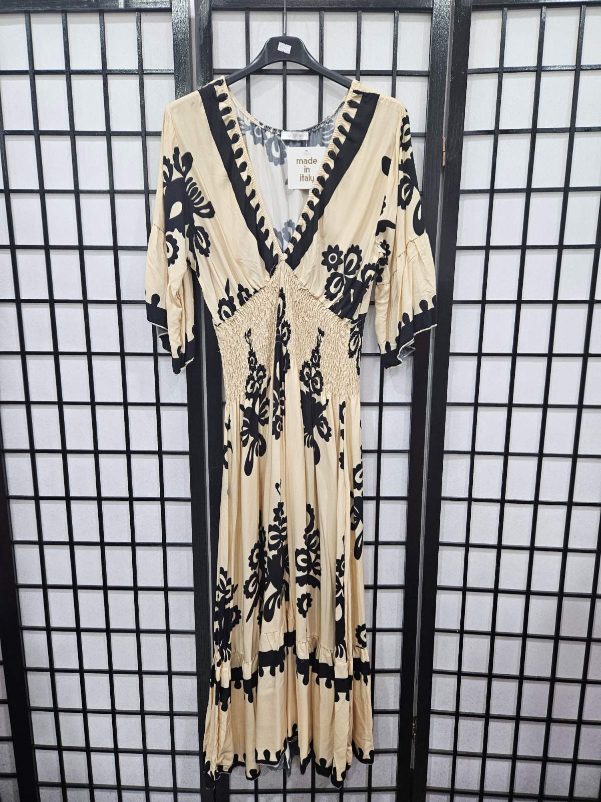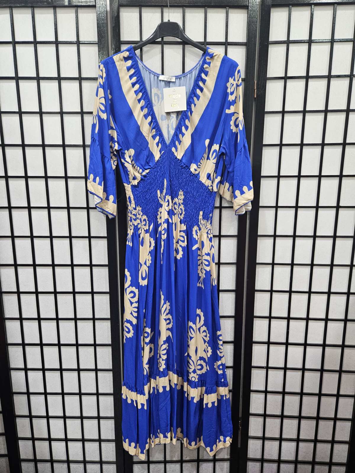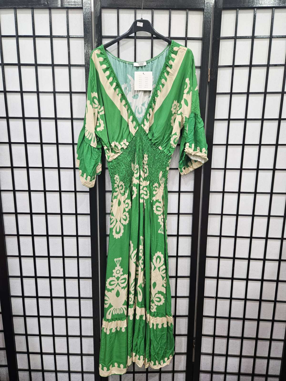 Italian Printed V Neck Elasticated Waist Dress - 4907