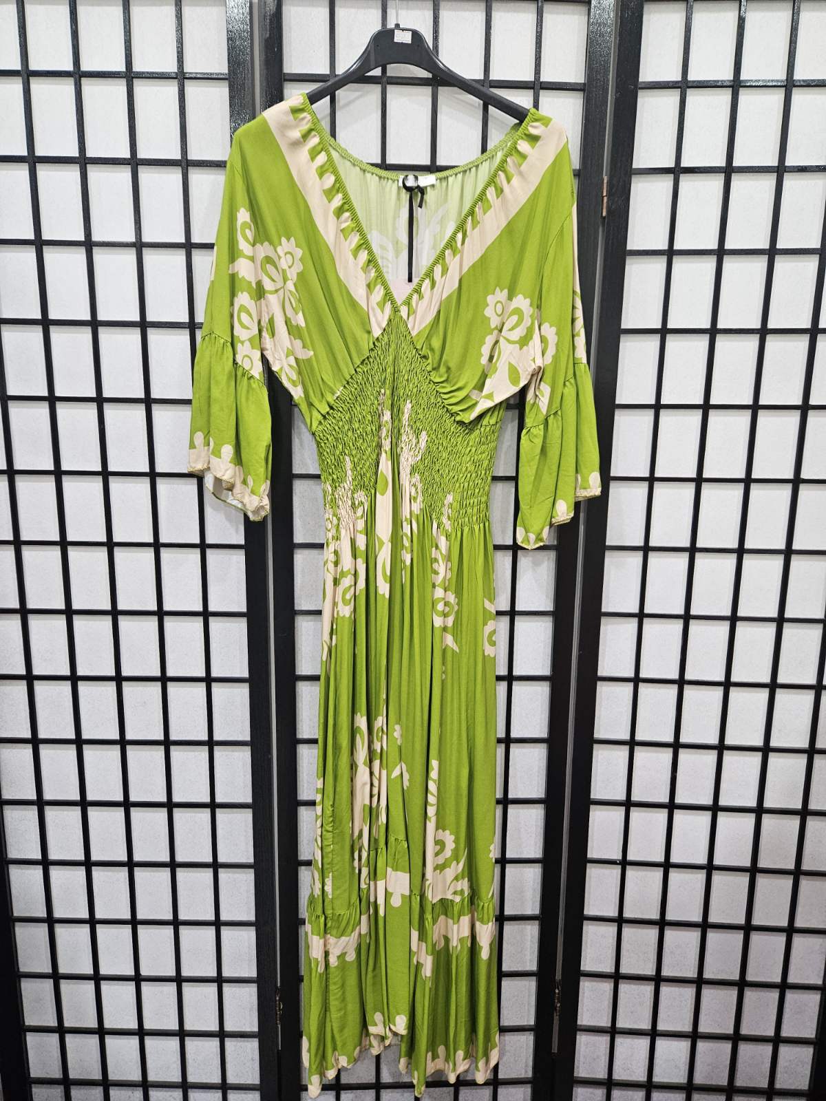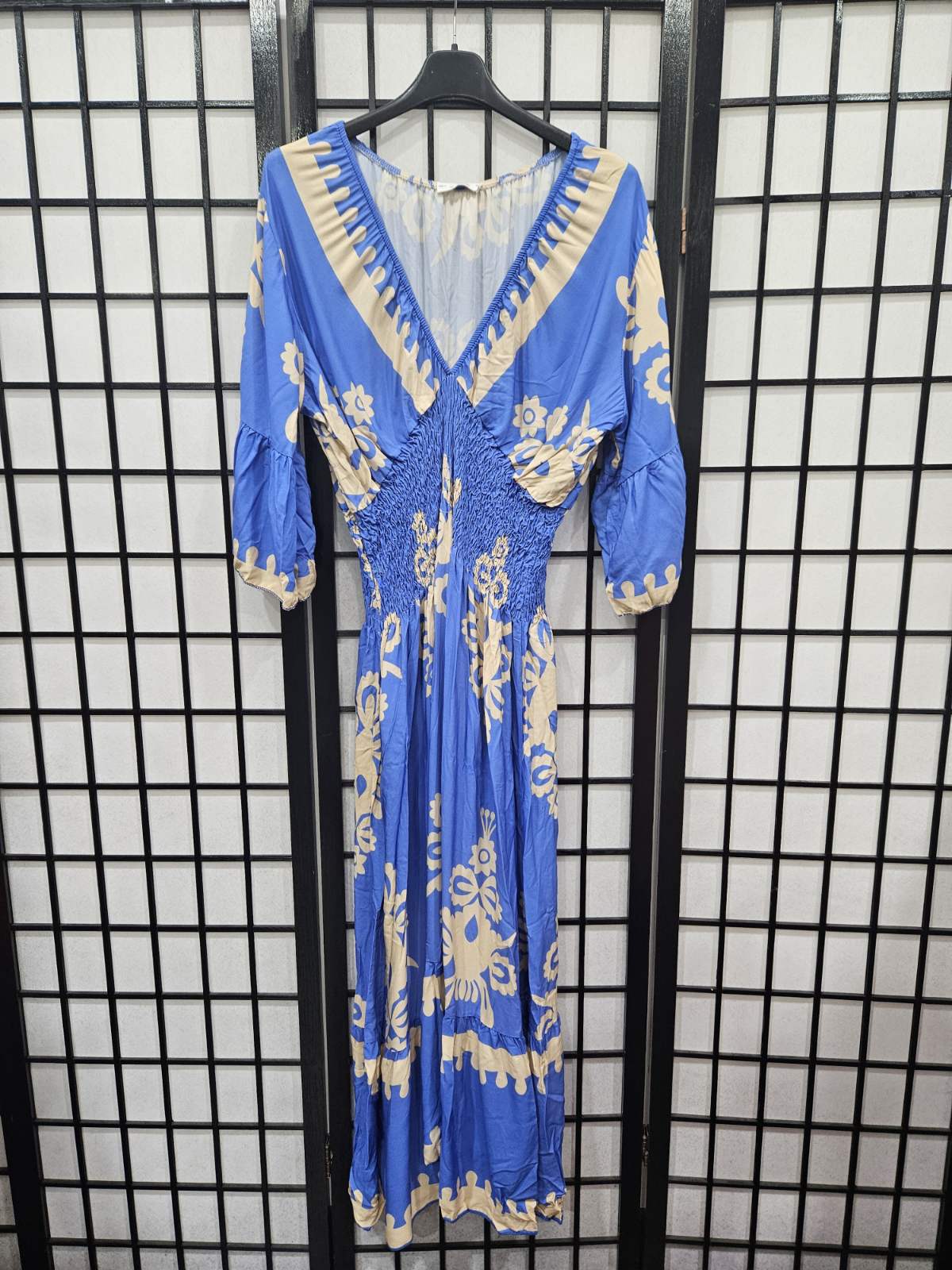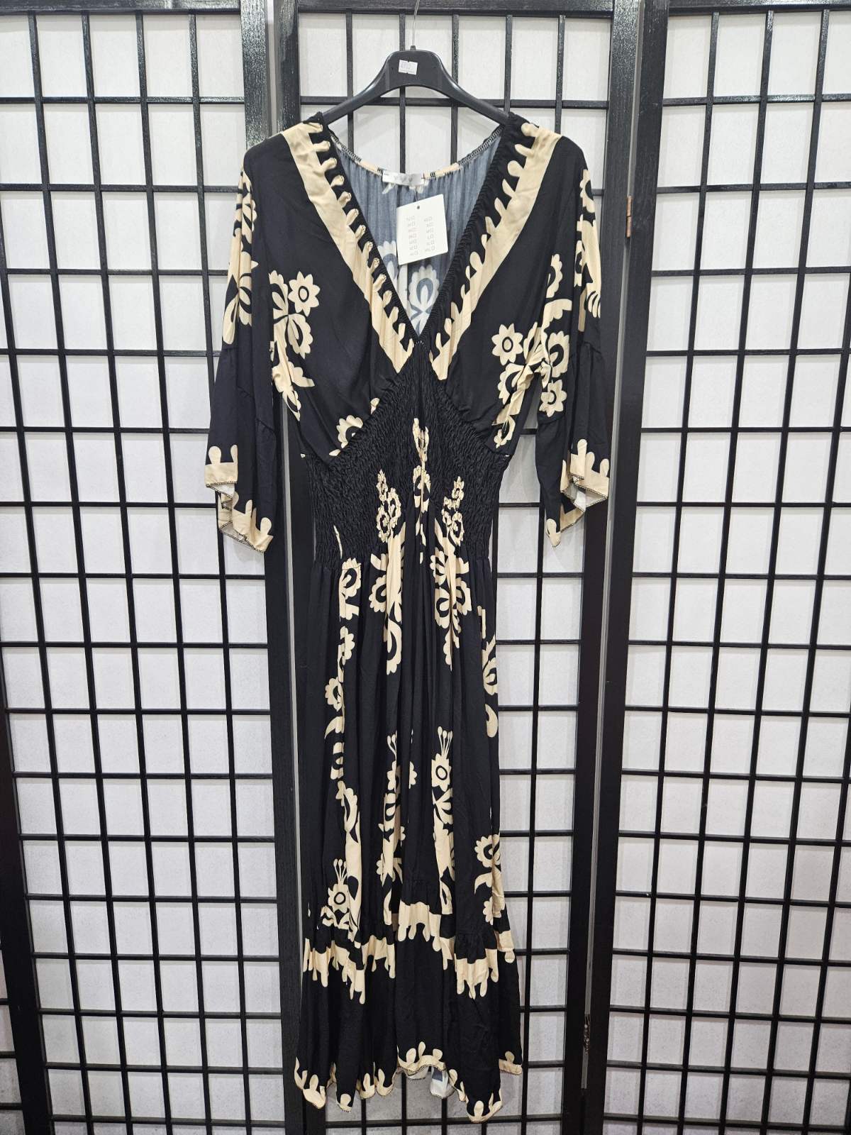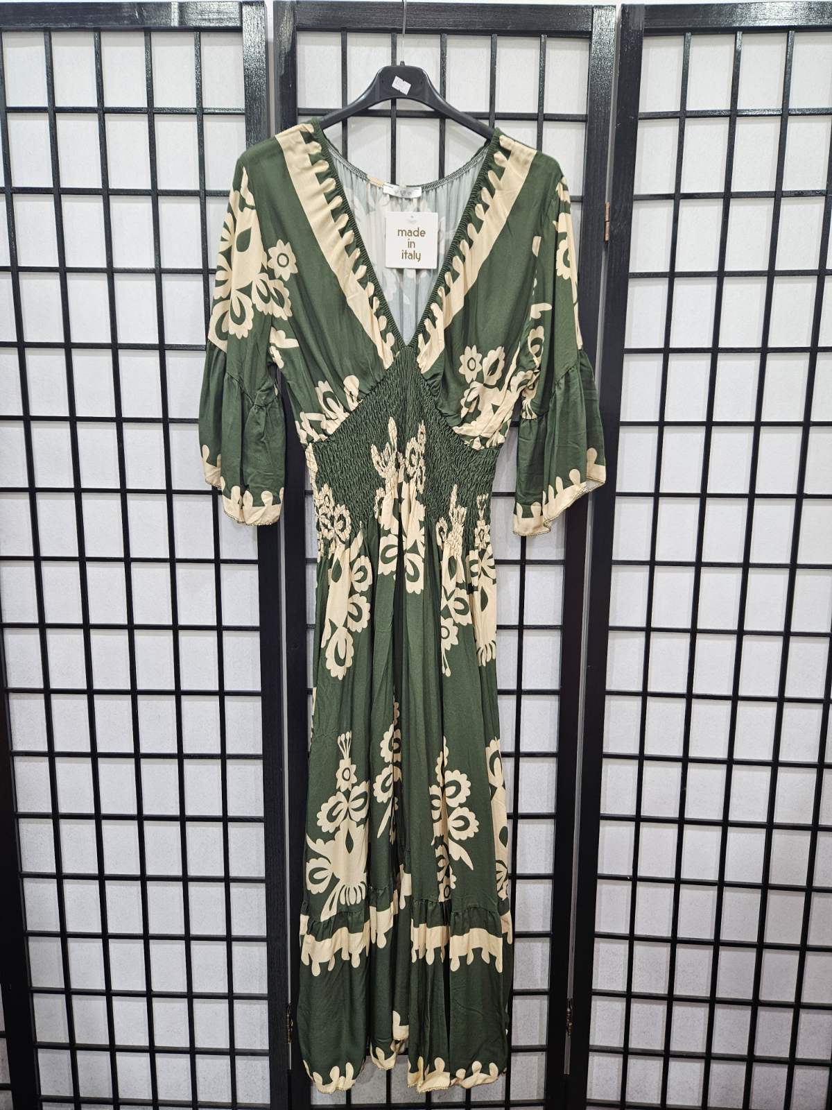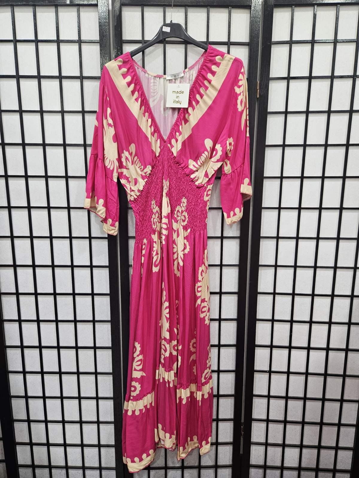 Italian Printed V Neck Elasticated Waist Dress - 4907