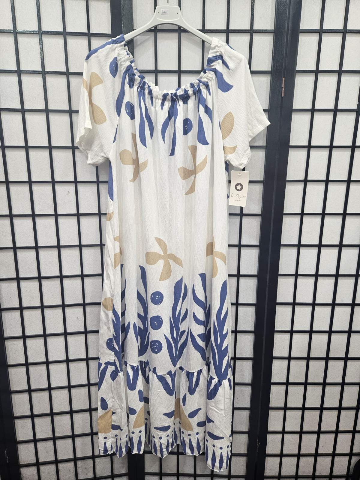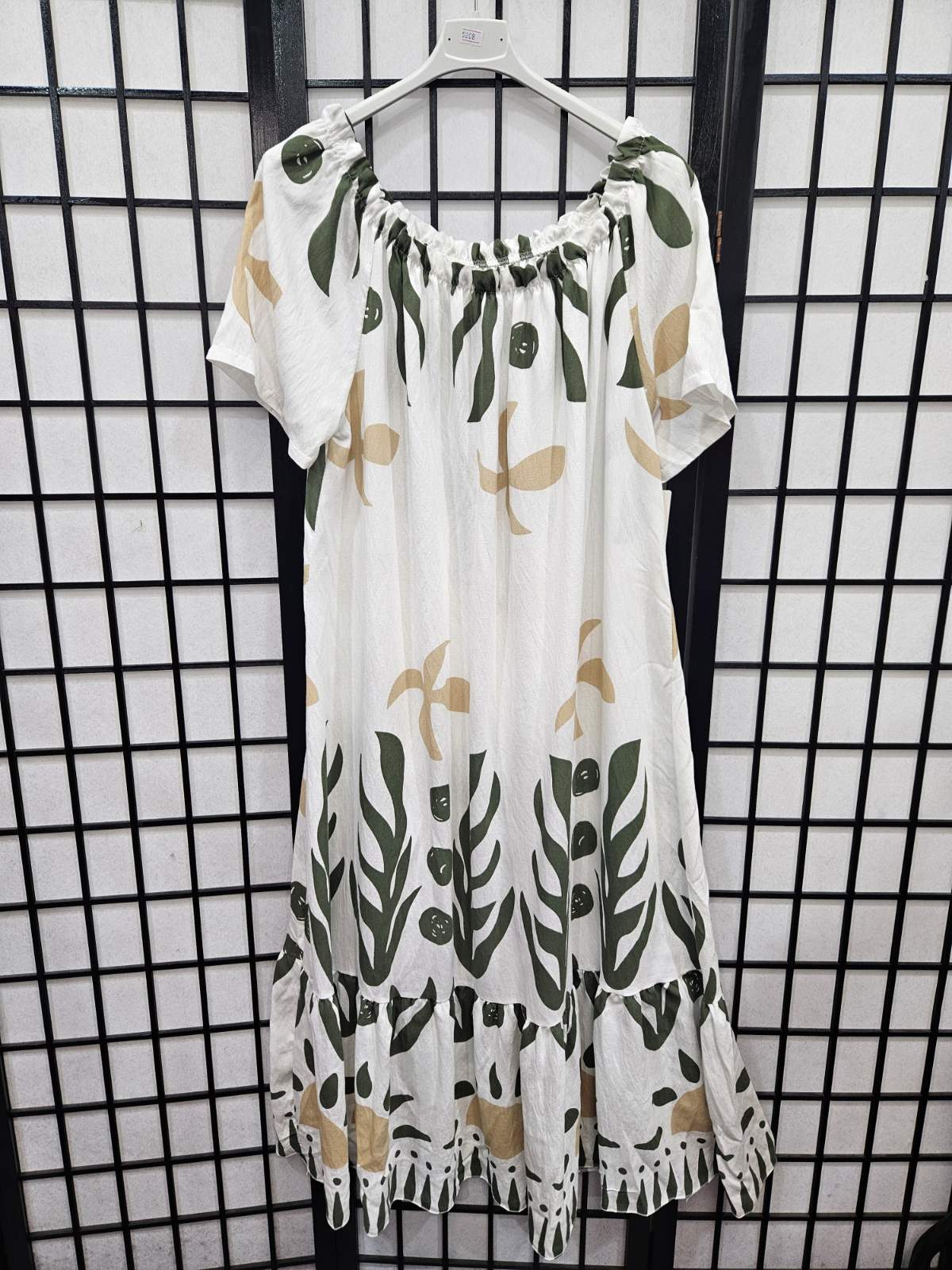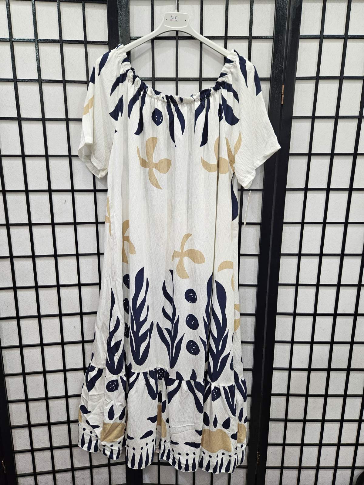 Italian Short Sleeve Elasticated Neckline Printed Dress-5208