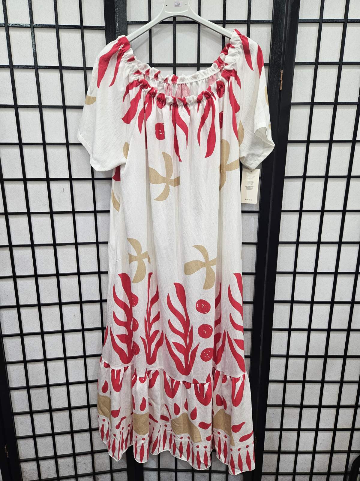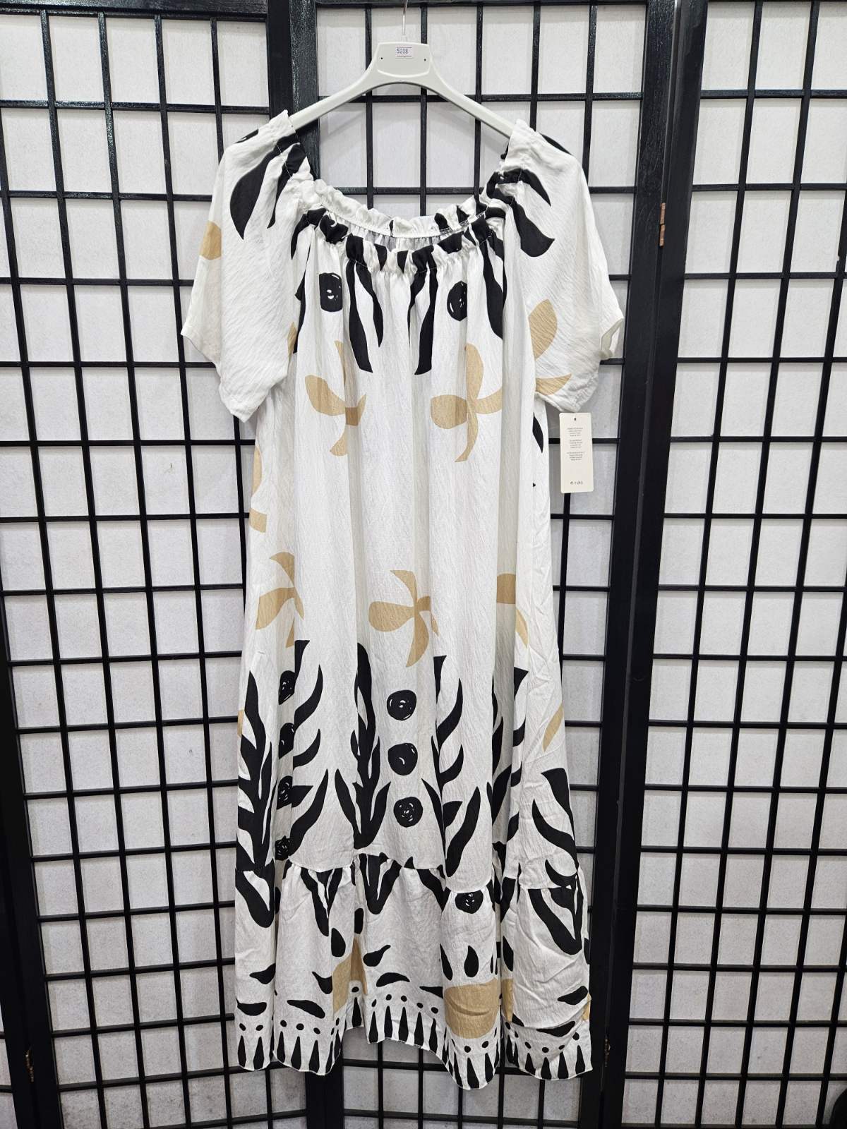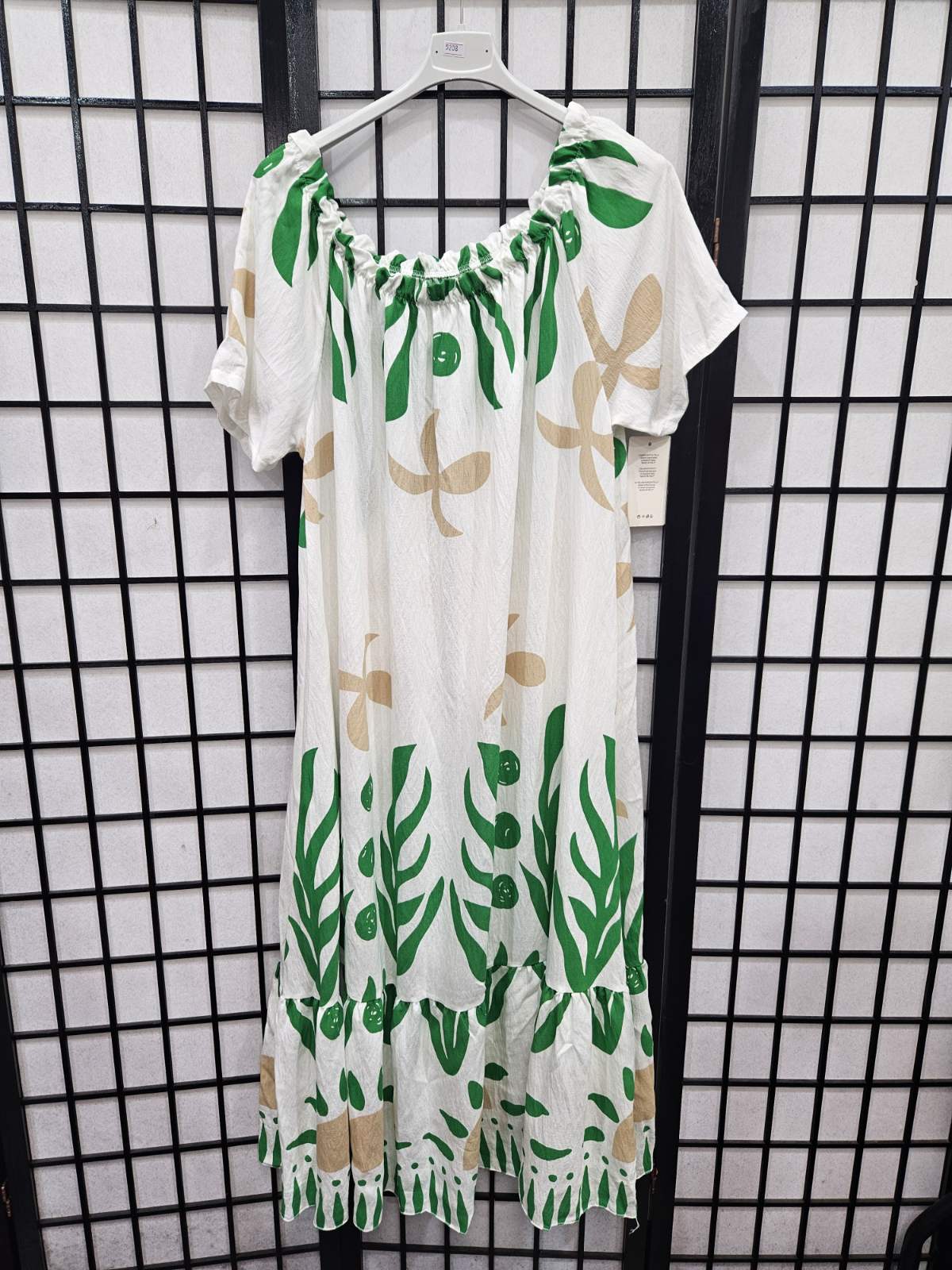 Italian Short Sleeve Elasticated Neckline Printed Dress-5208