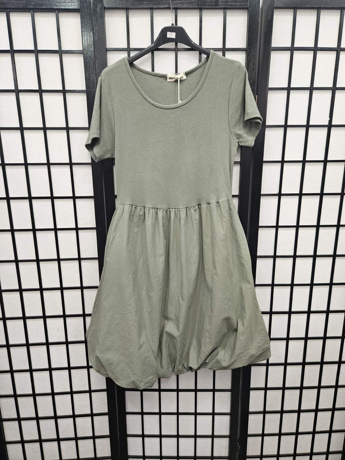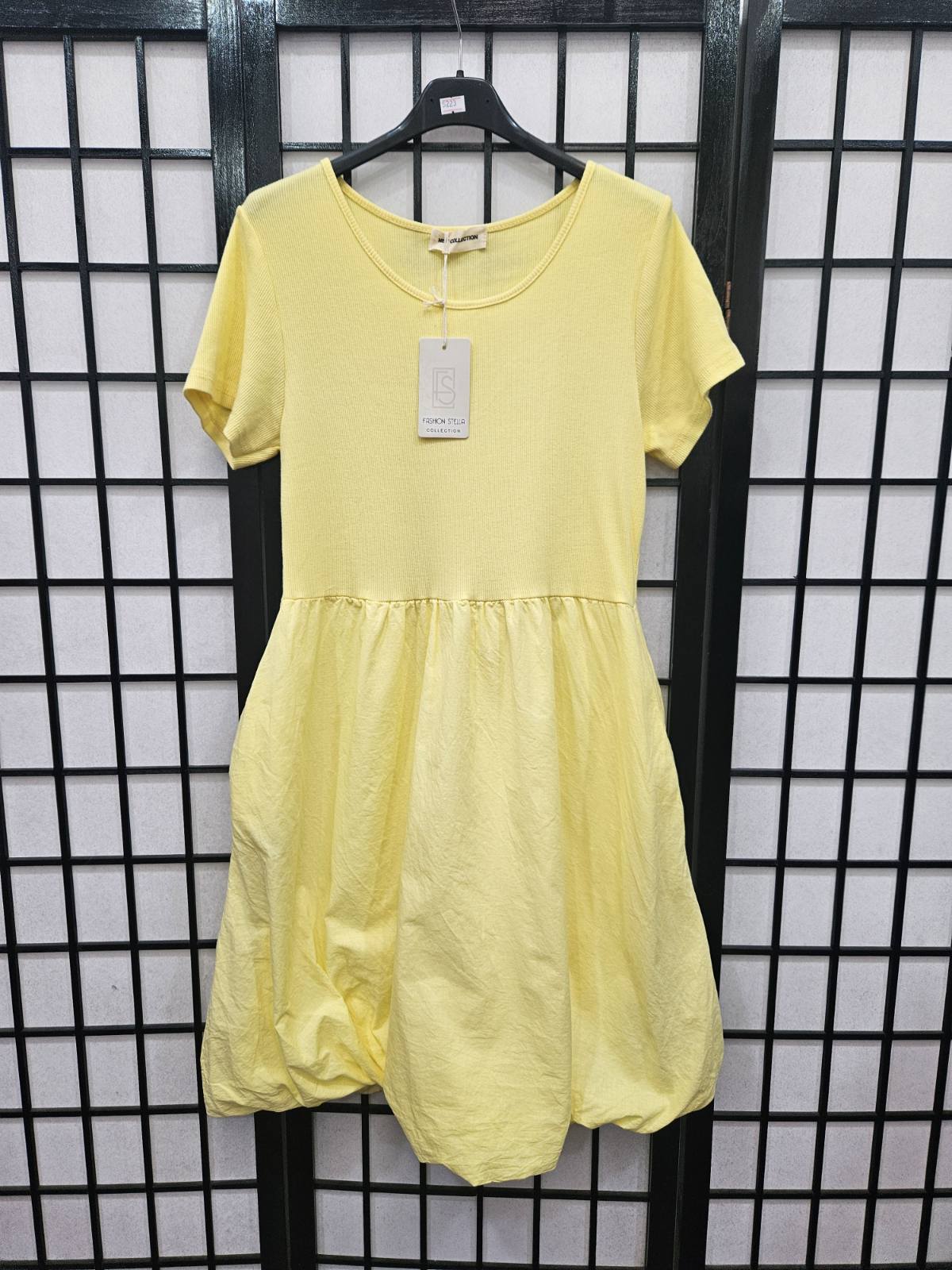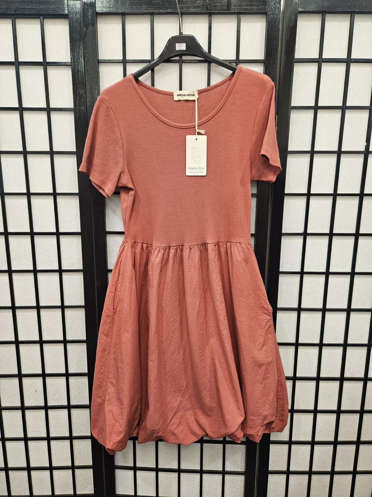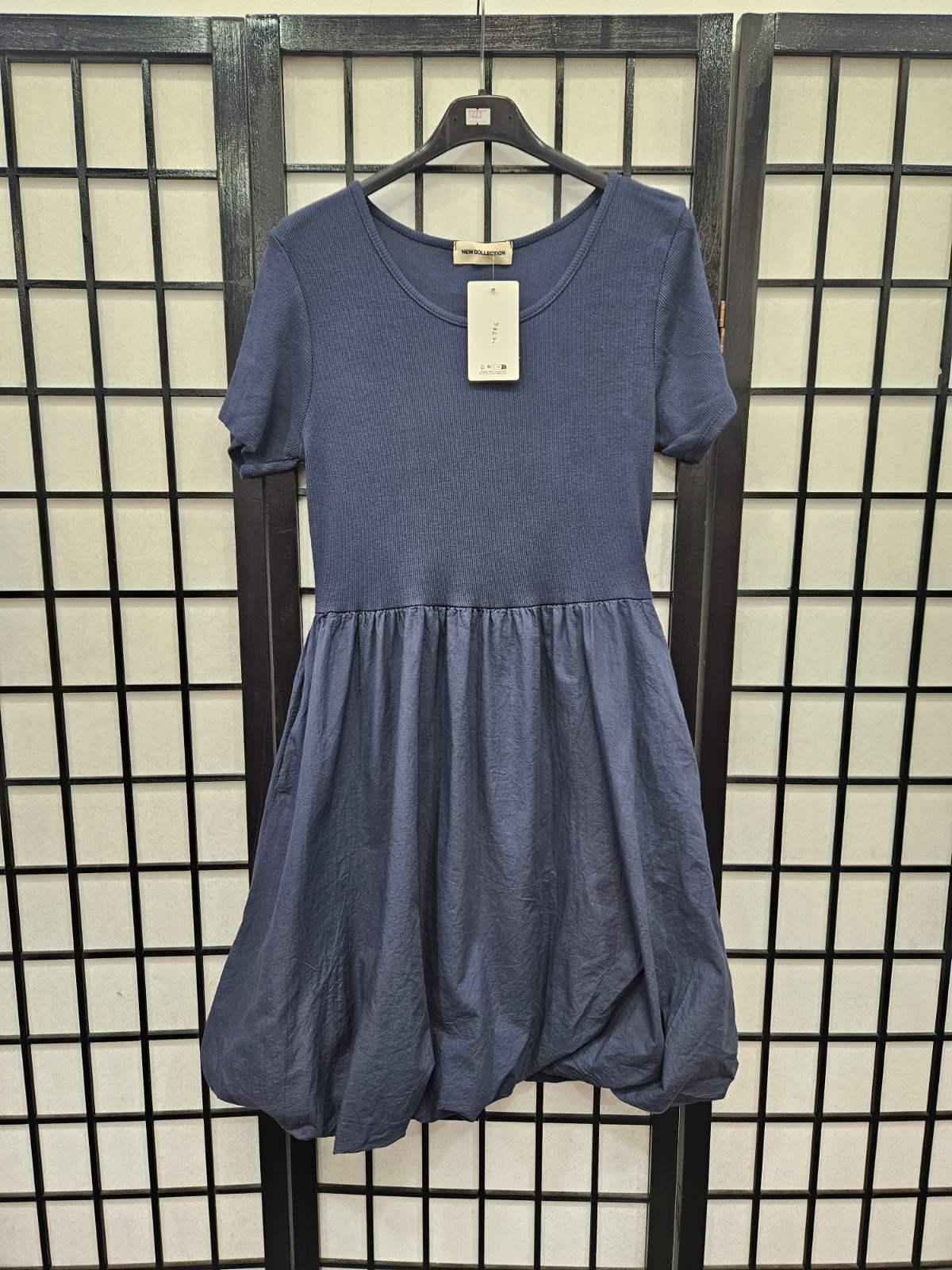 Italian Short Sleeve Ribbed Bodice Pocket Dress - 5223