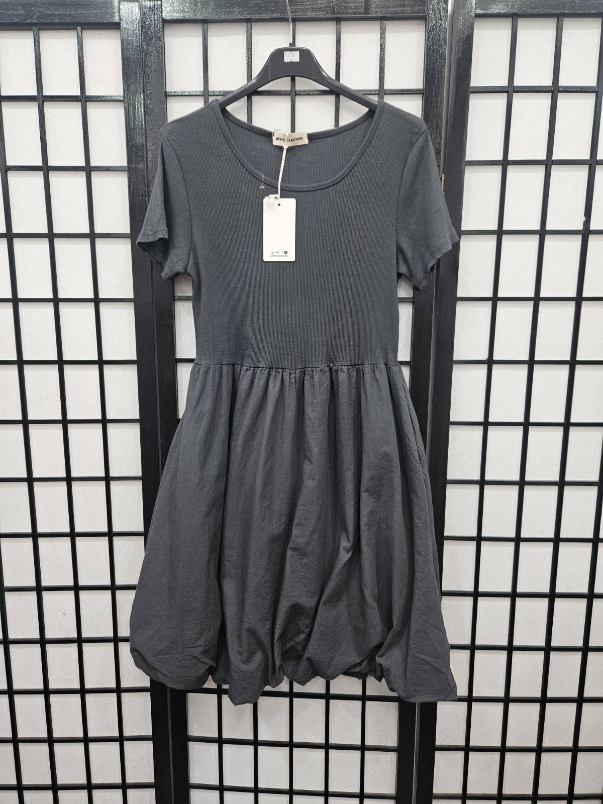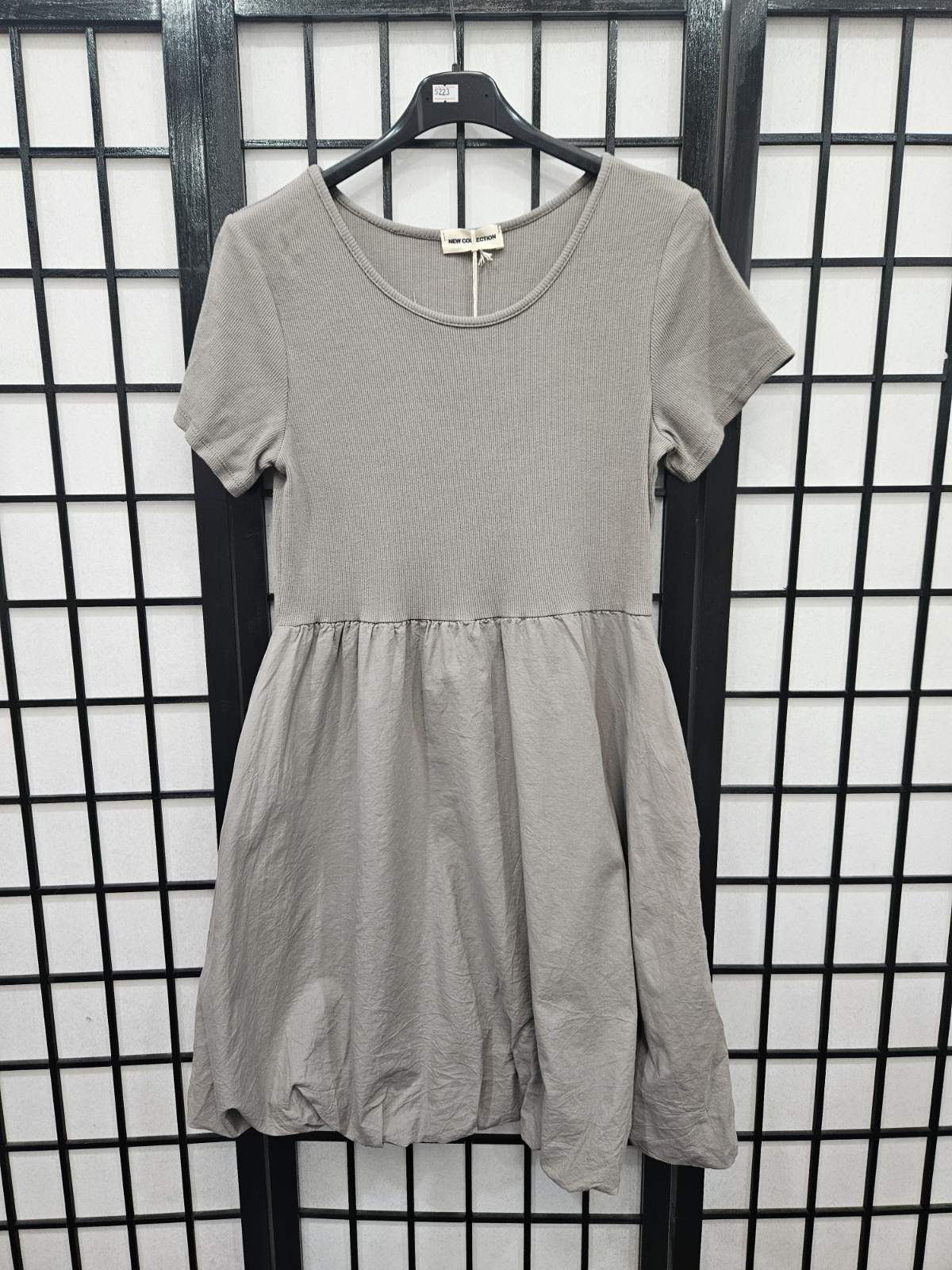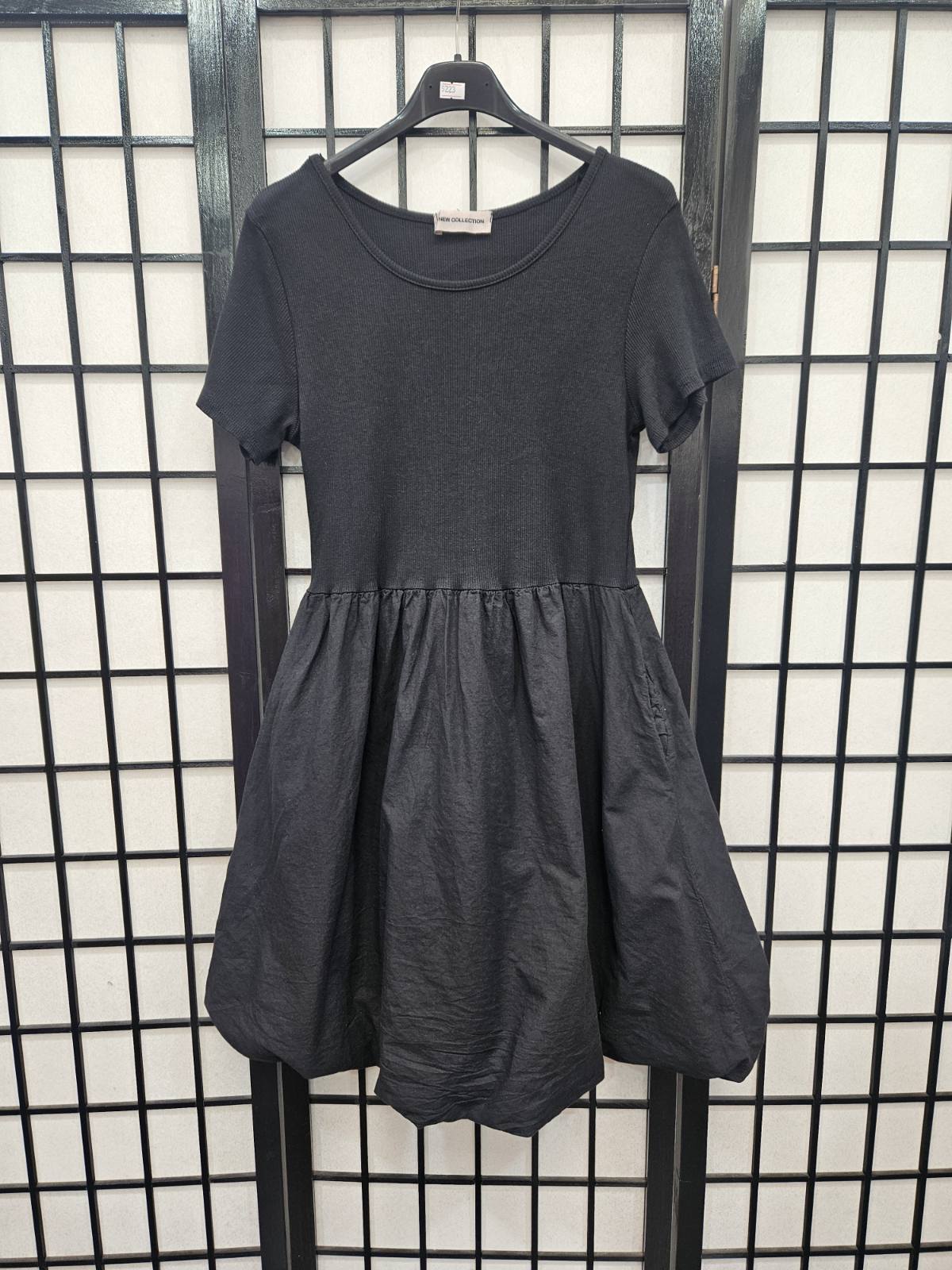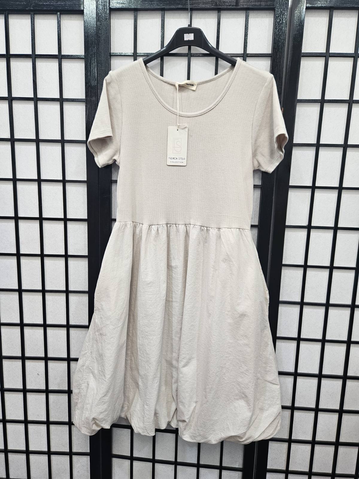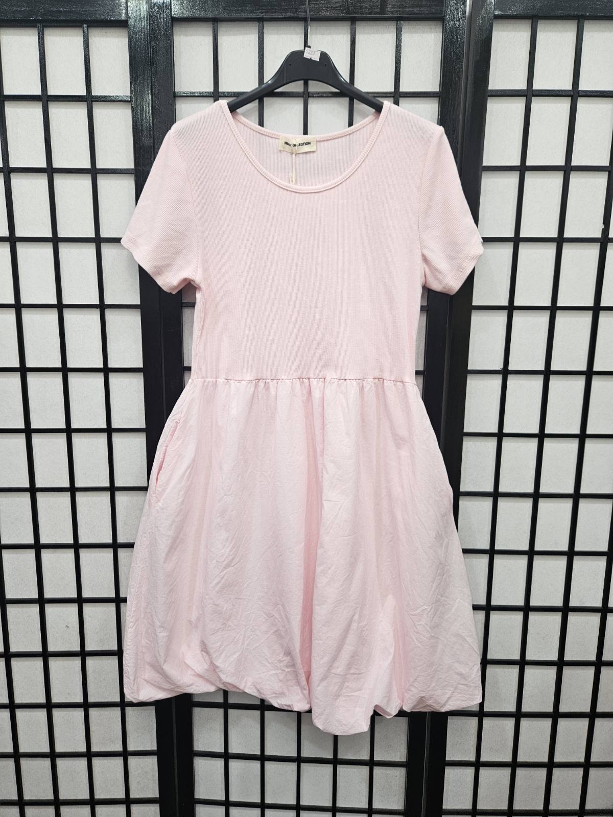 Italian Short Sleeve Ribbed Bodice Pocket Dress - 5223