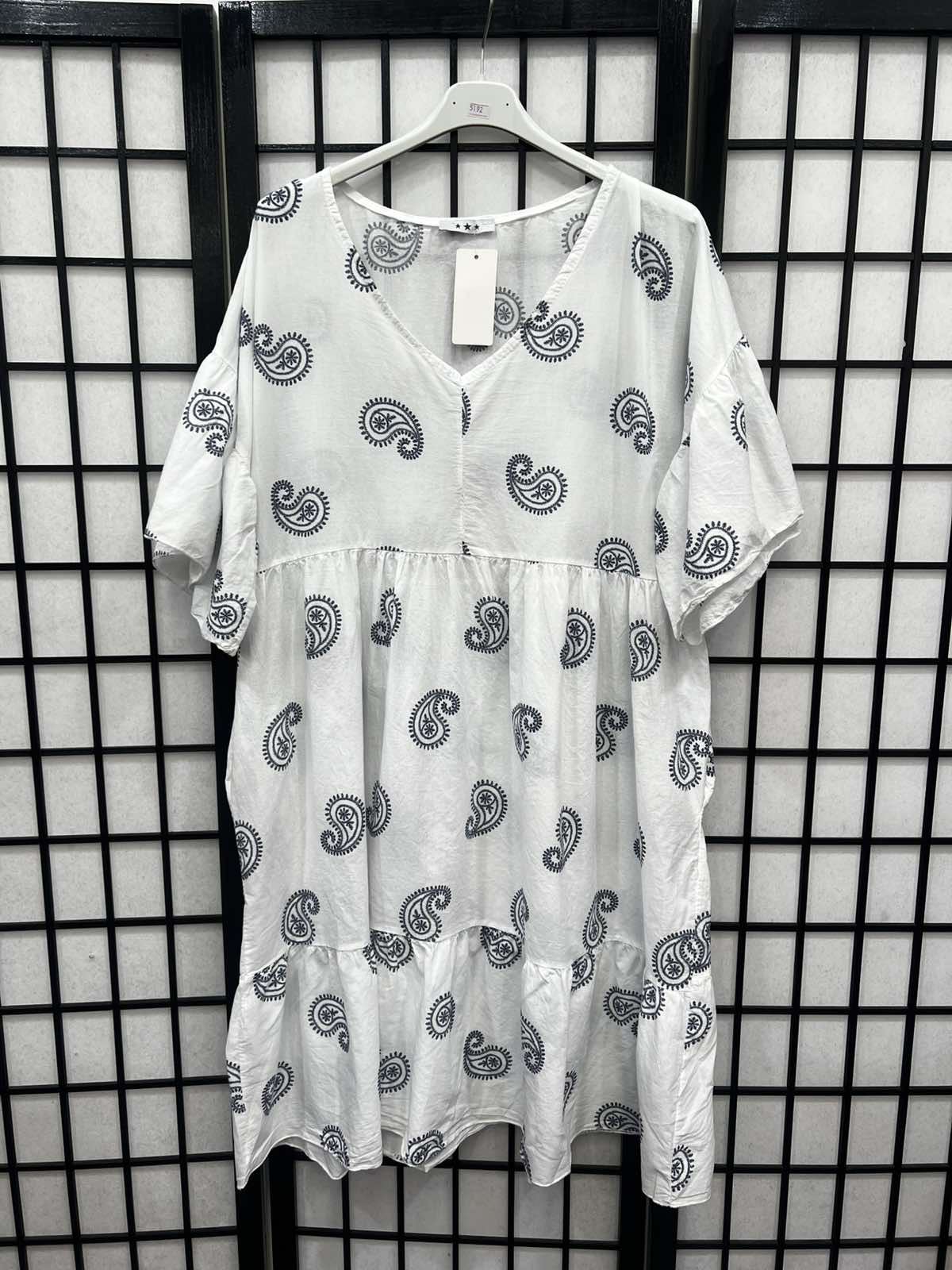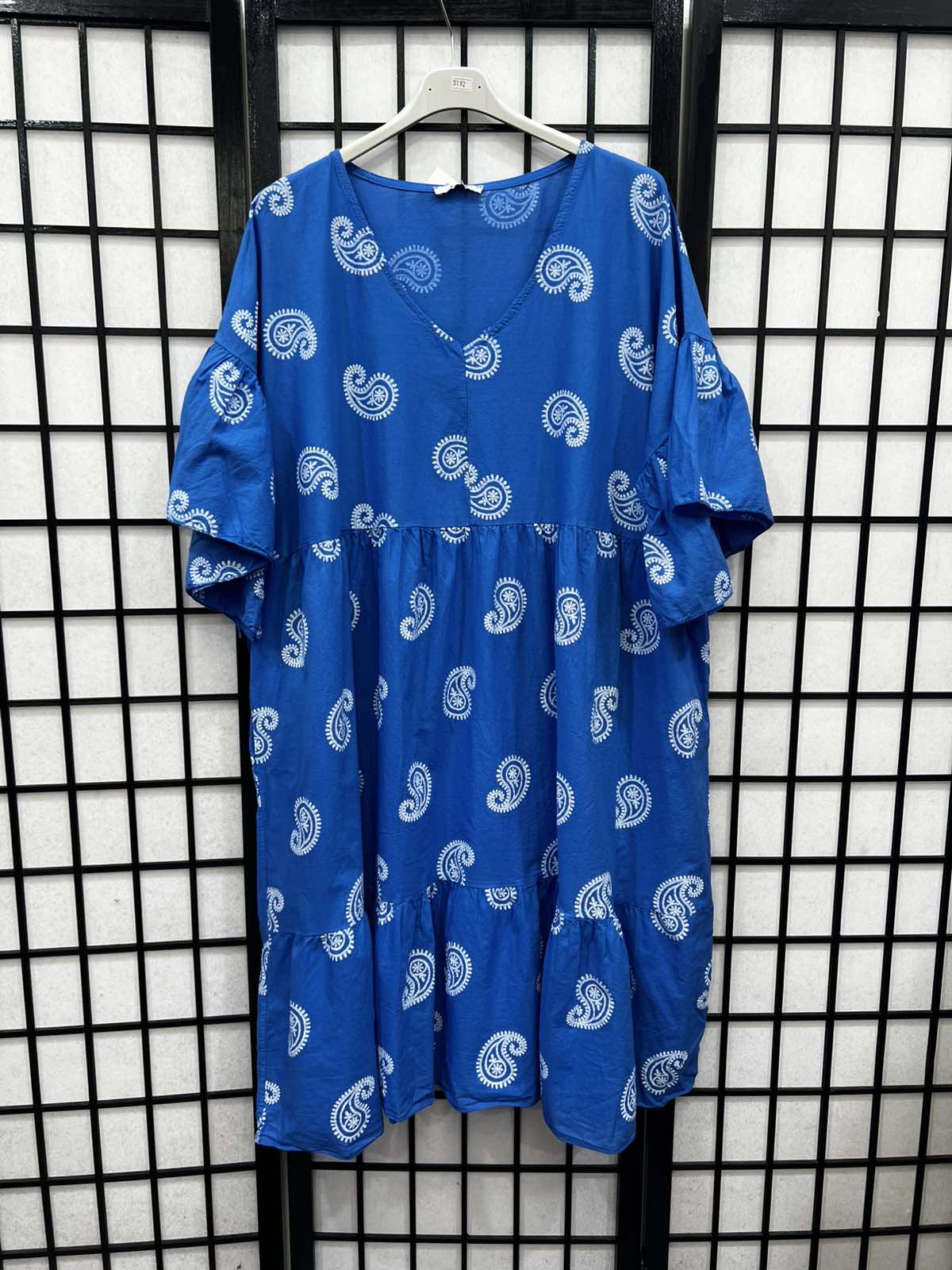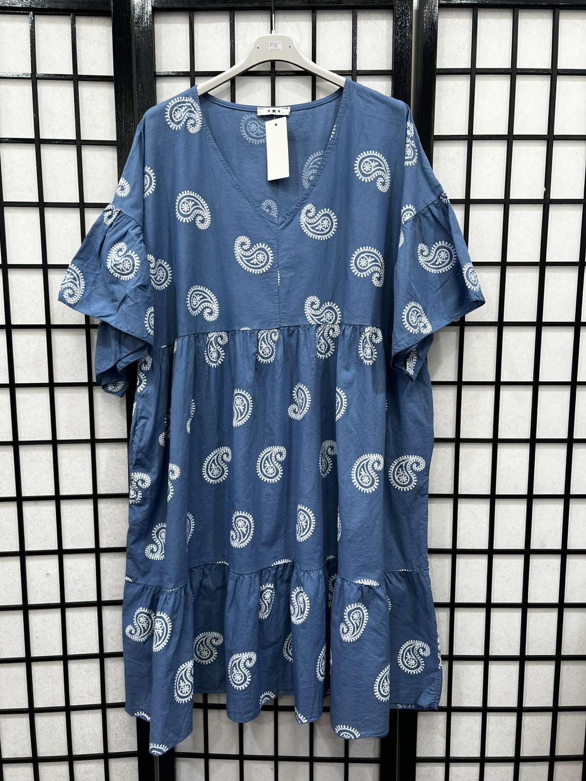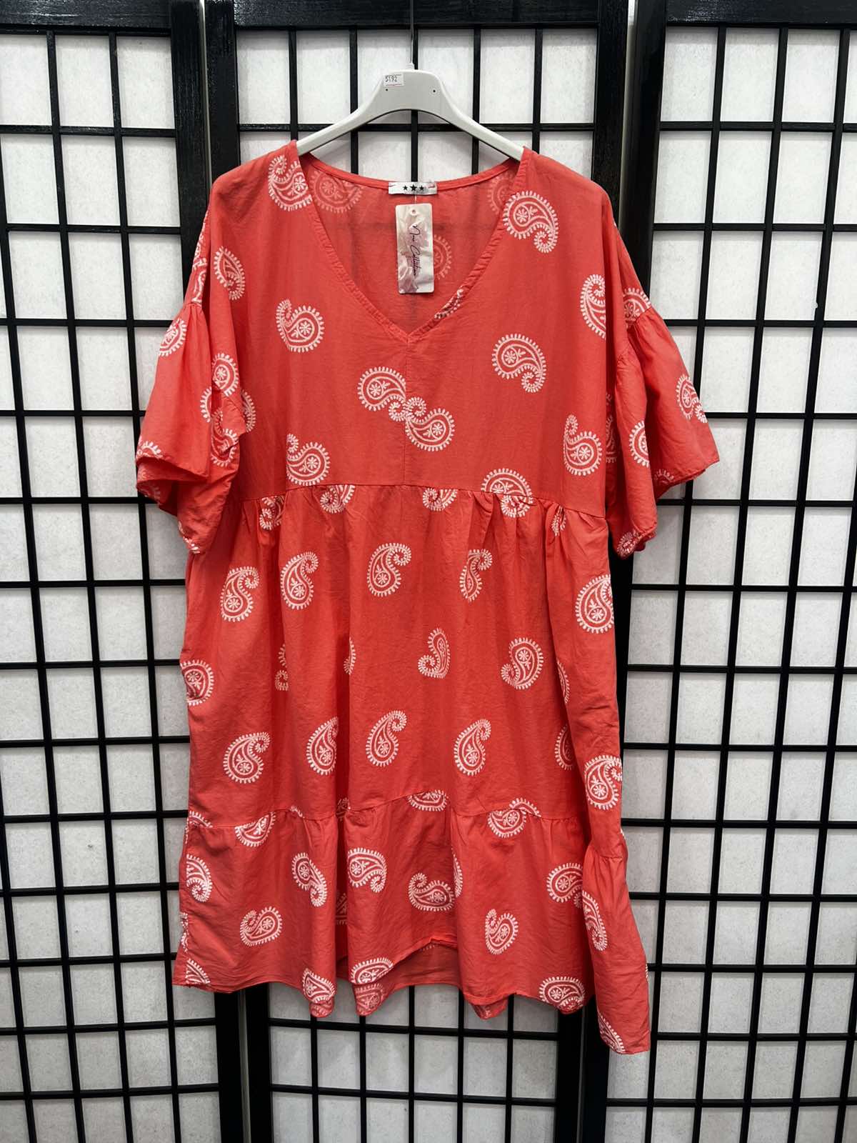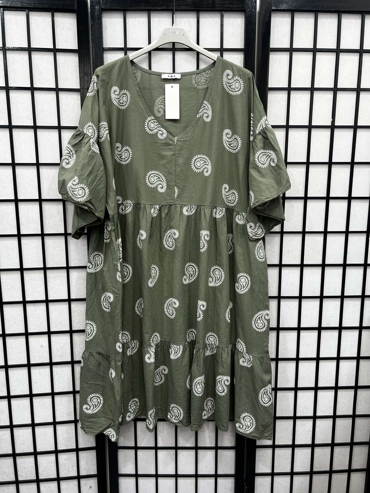 Italian V-Neck Paisley Print Dress With Pockets-5192