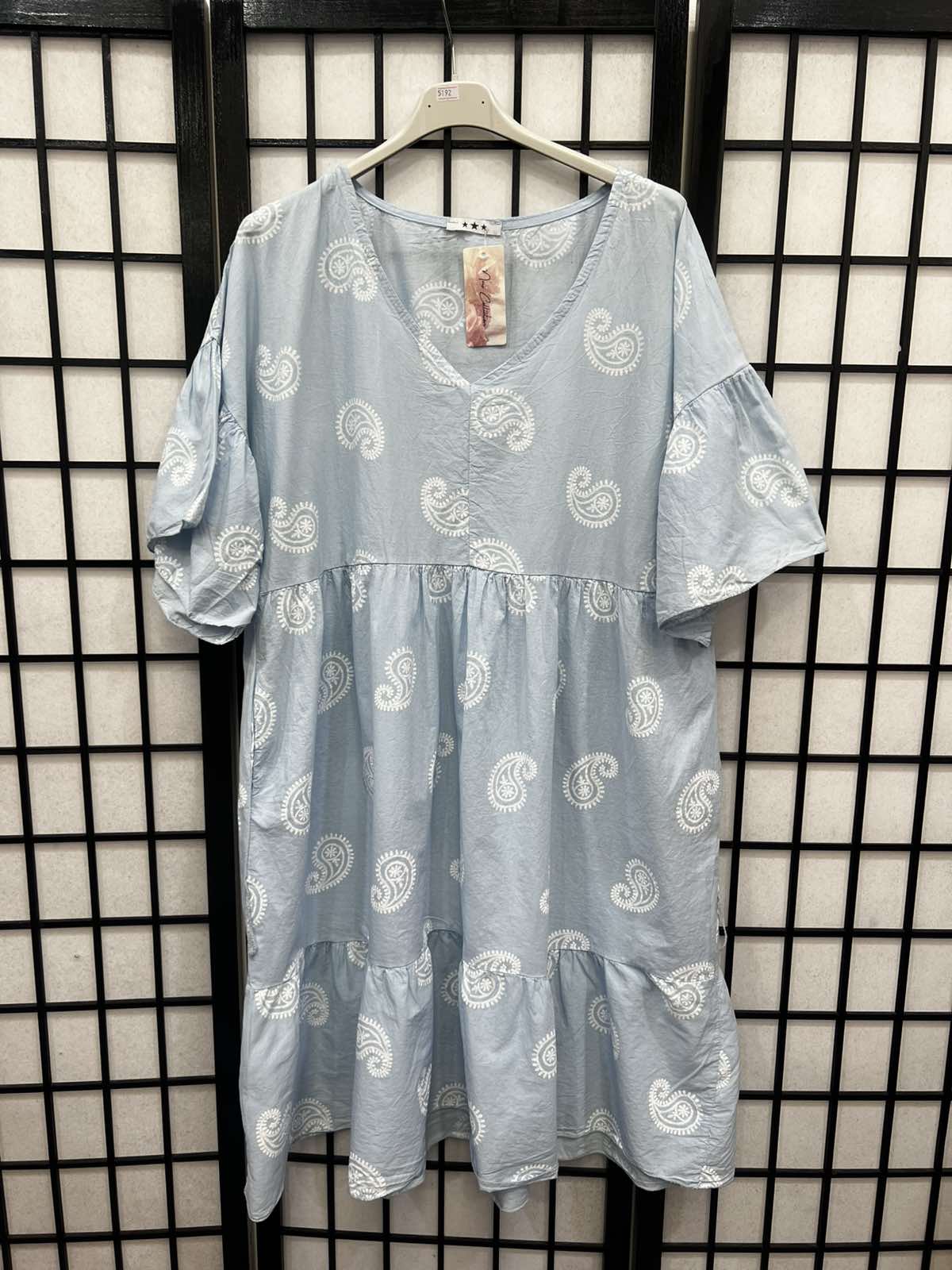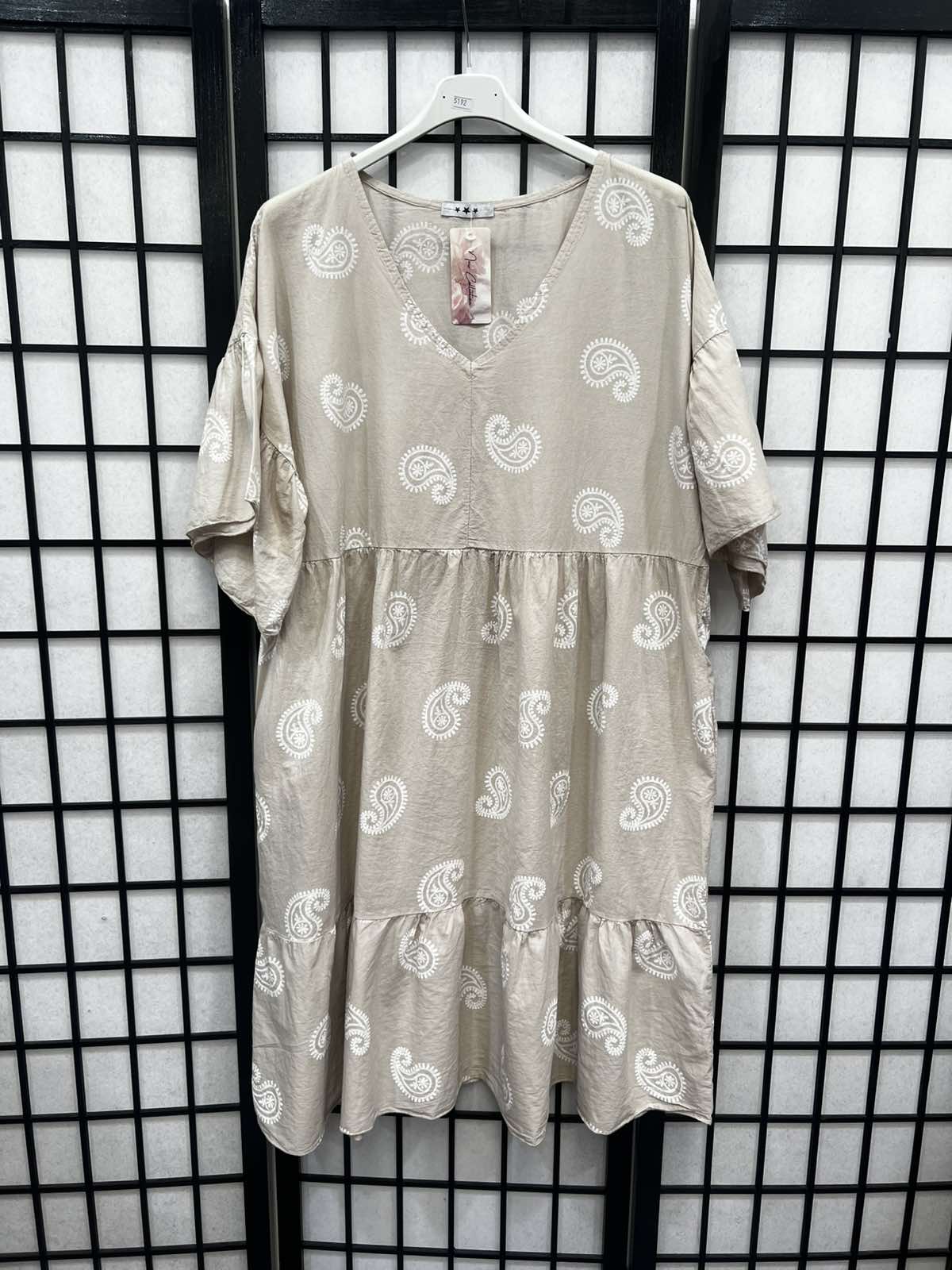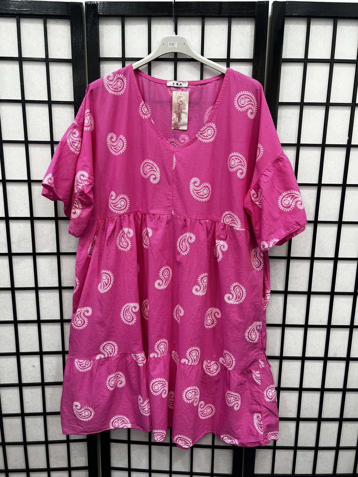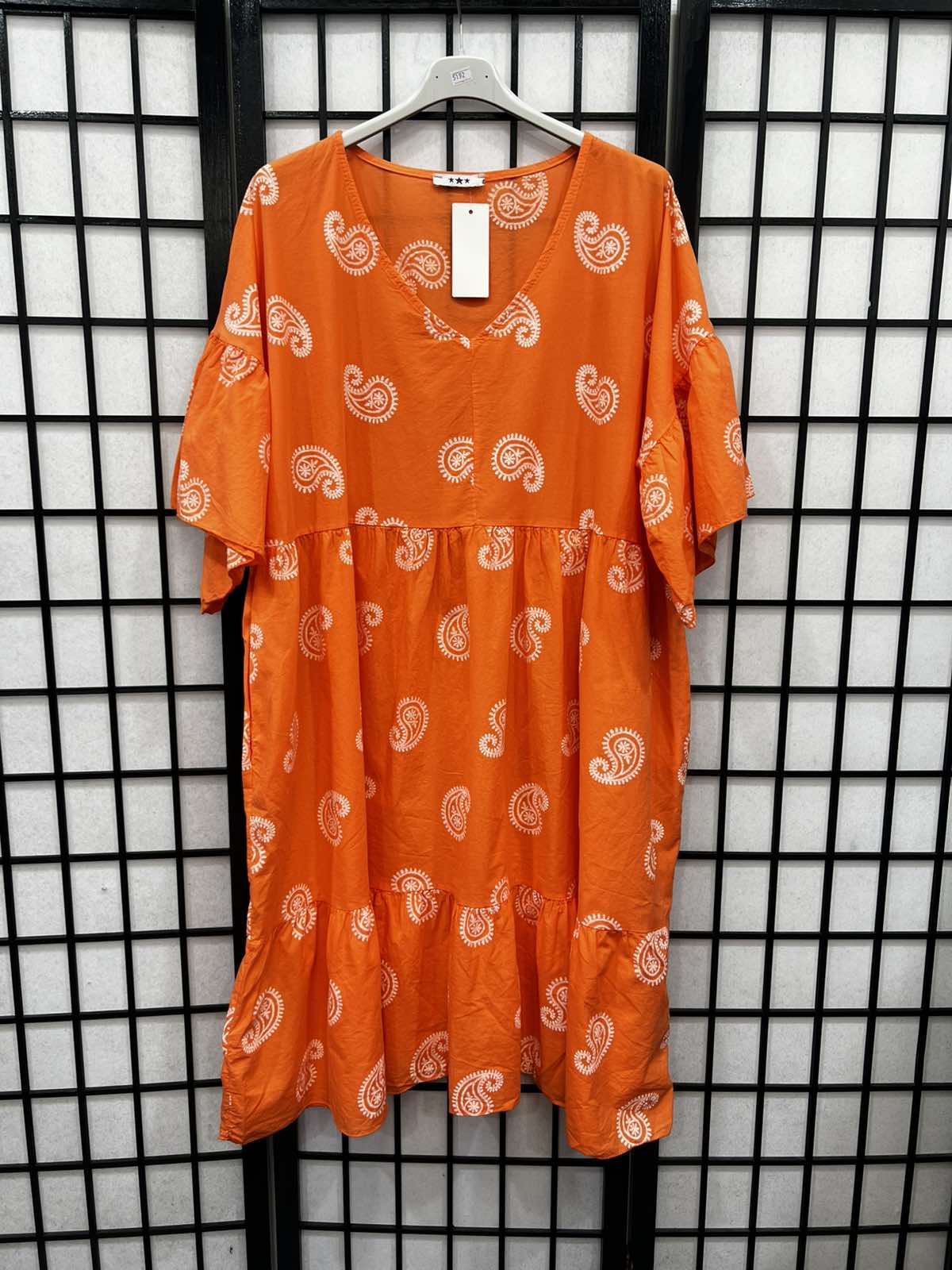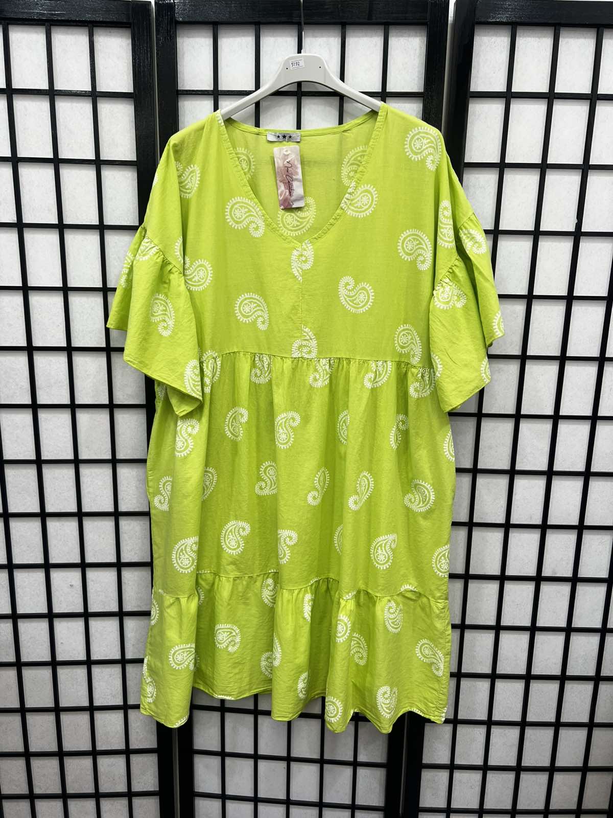 Italian V-Neck Paisley Print Dress With Pockets-5192