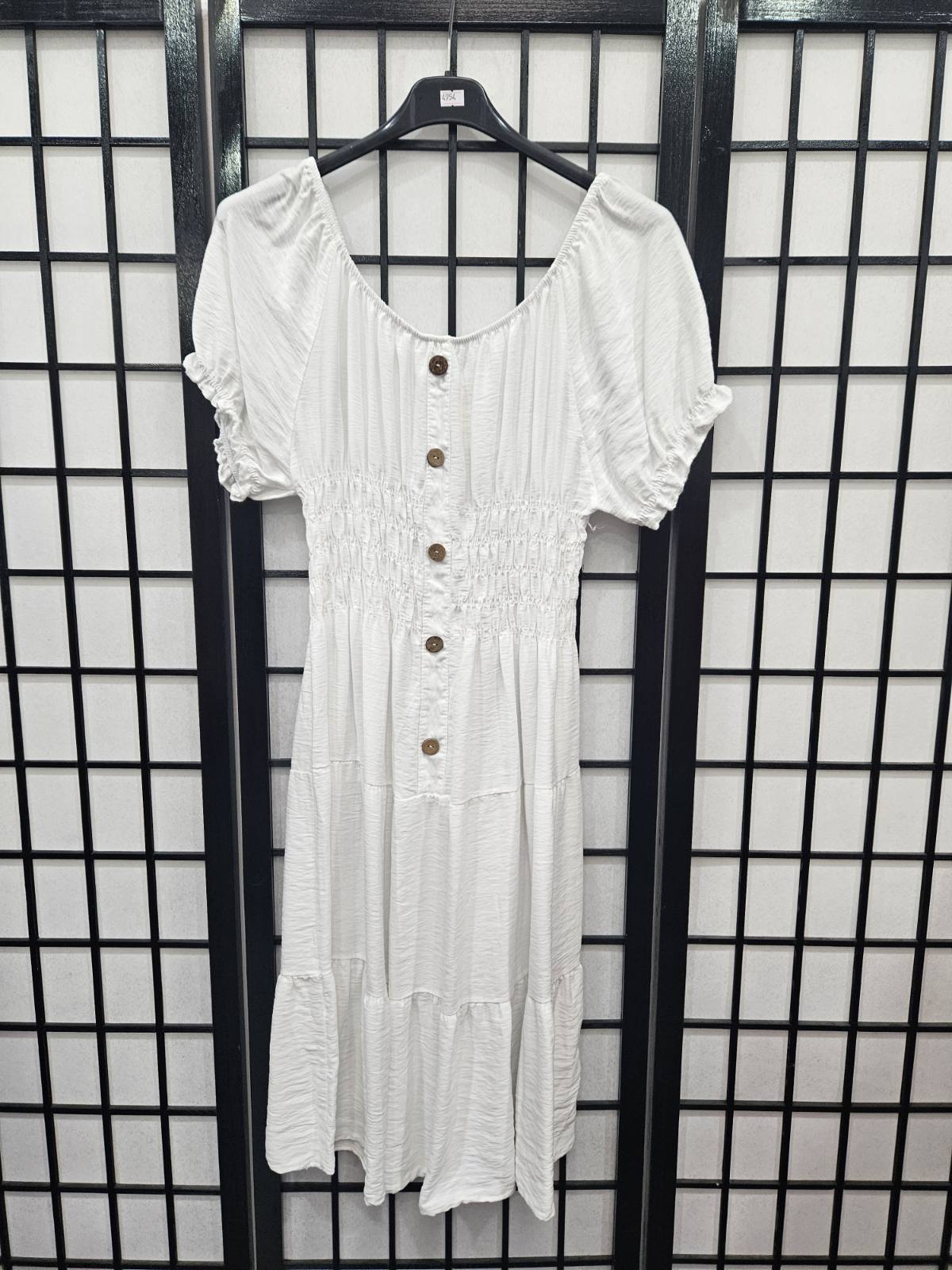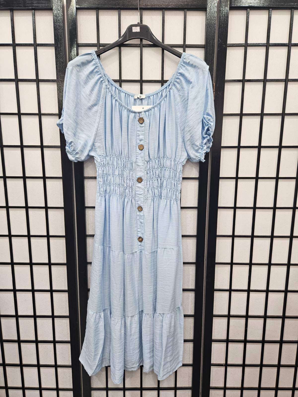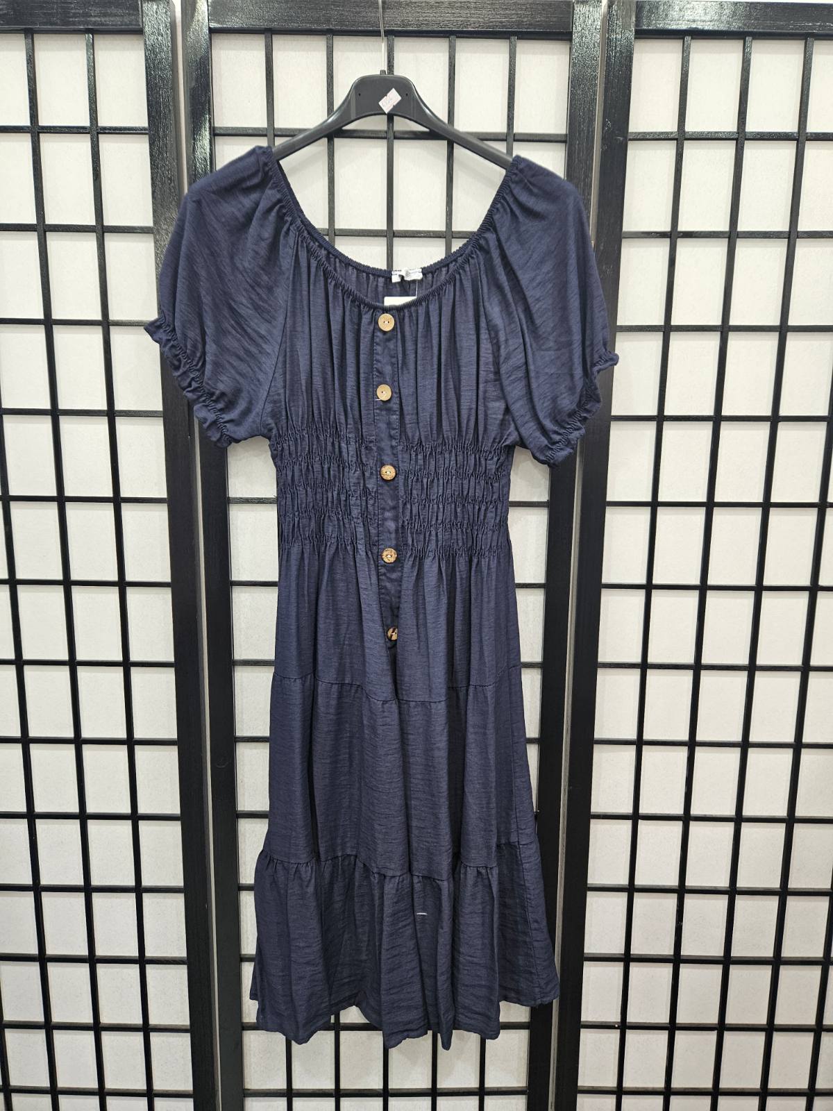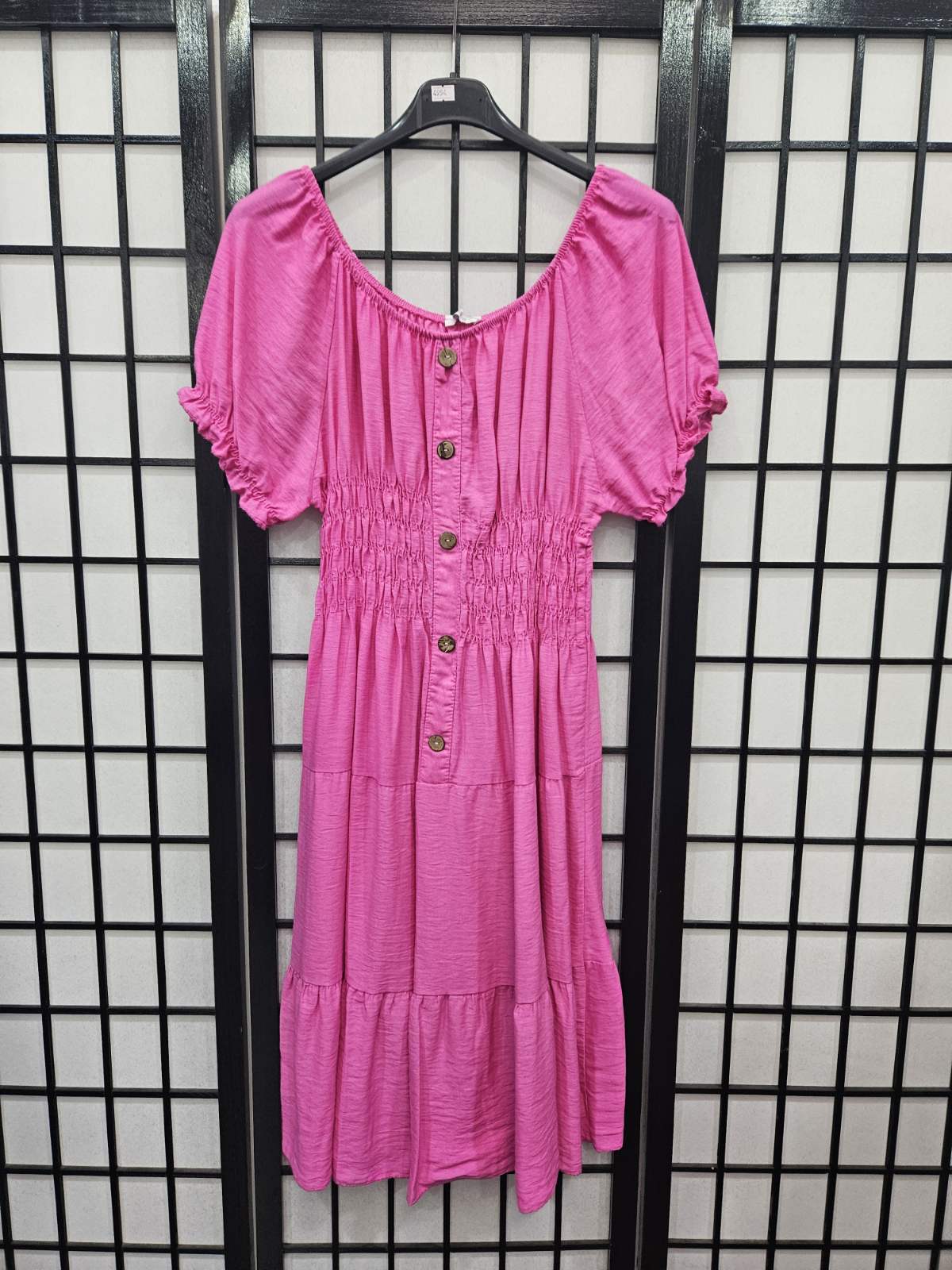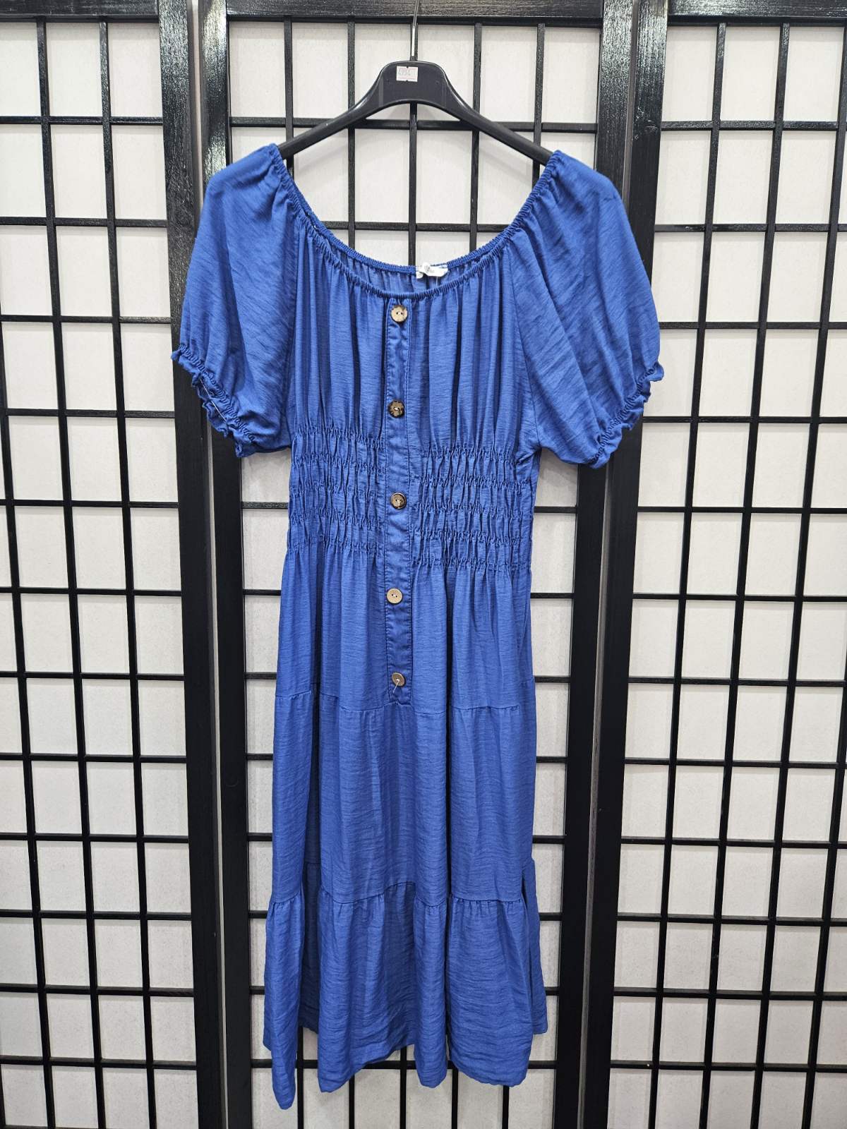 Italian Short Sleeve Elasticated And Button Dress- 4954