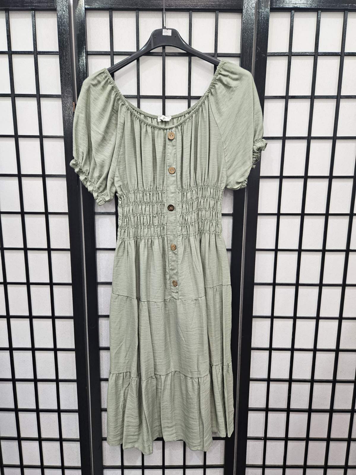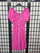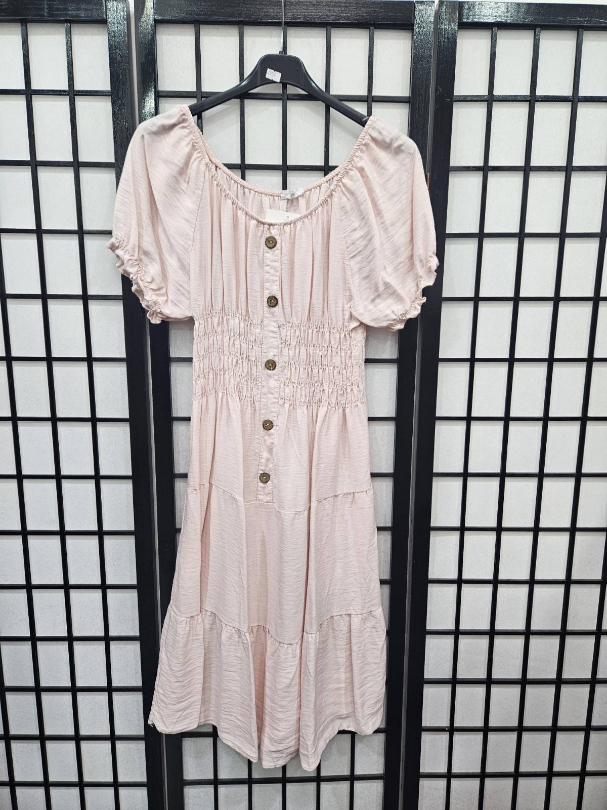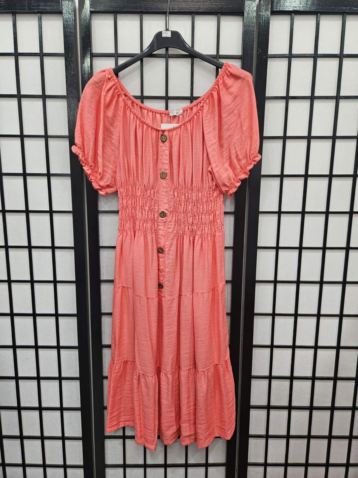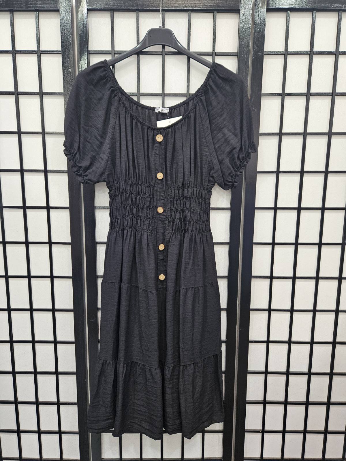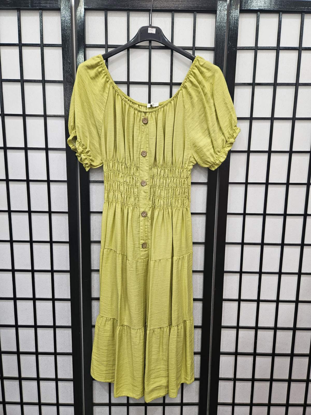 Italian Short Sleeve Elasticated And Button Dress- 4954