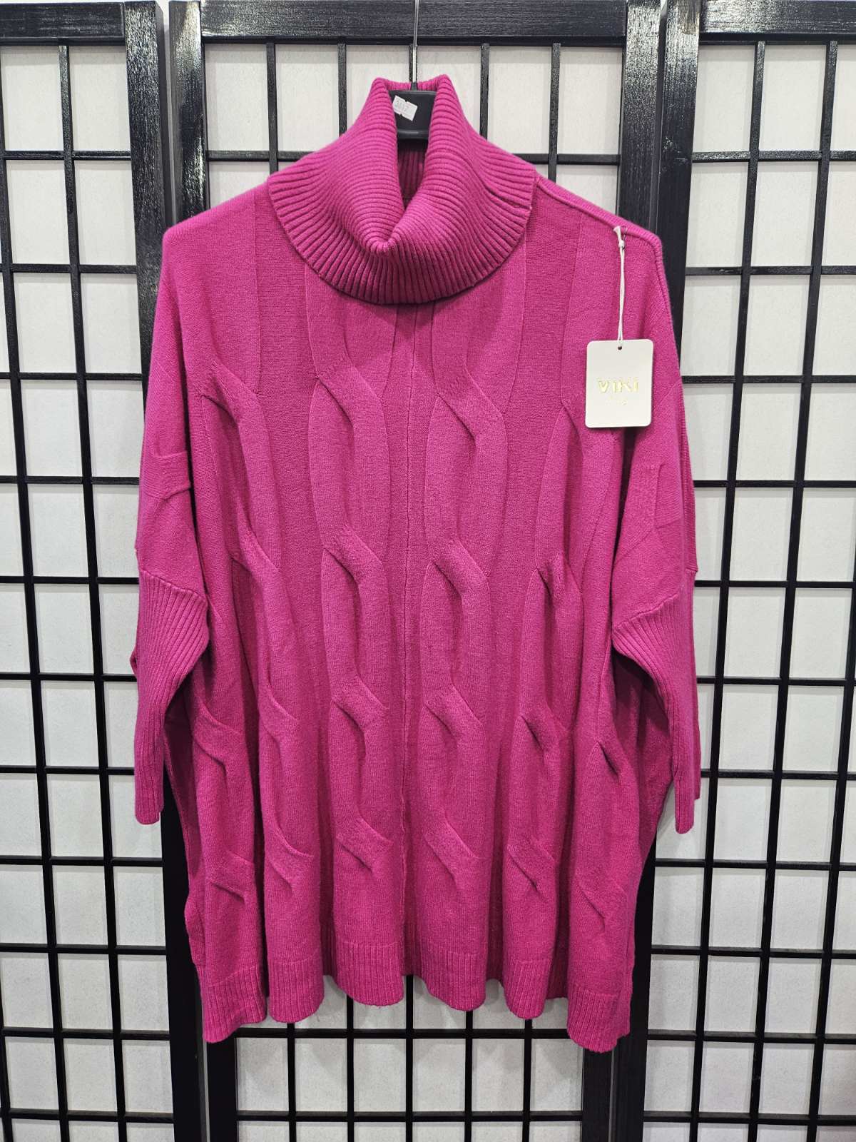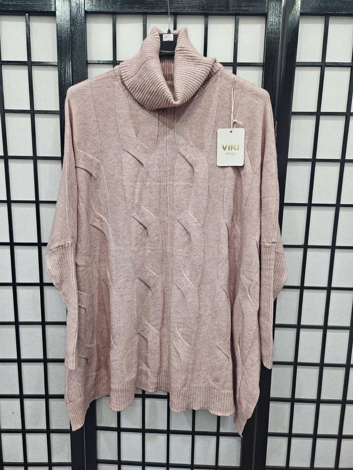 Ladies Cowl Neck Cable Knit Front Jumper - 3817