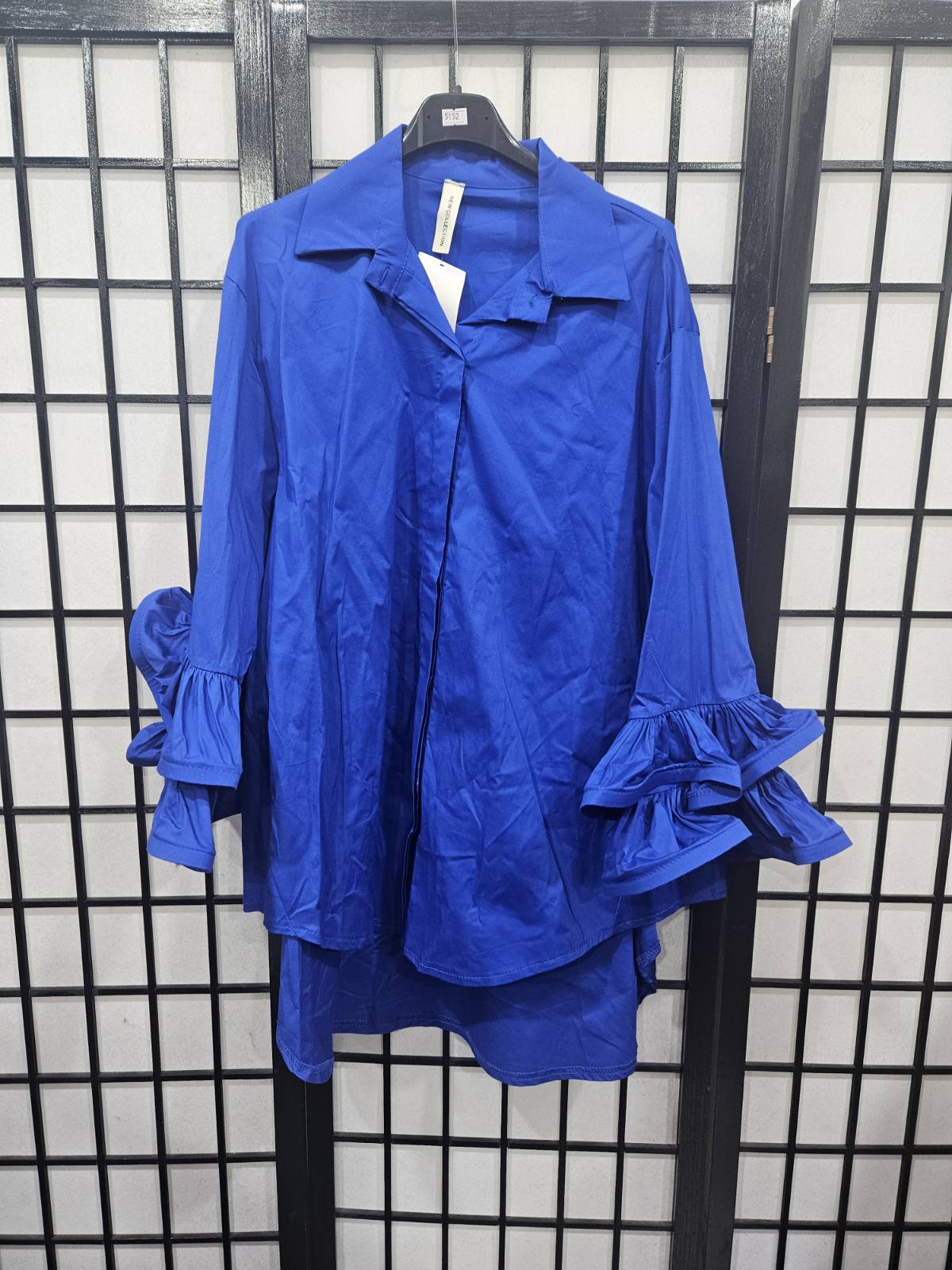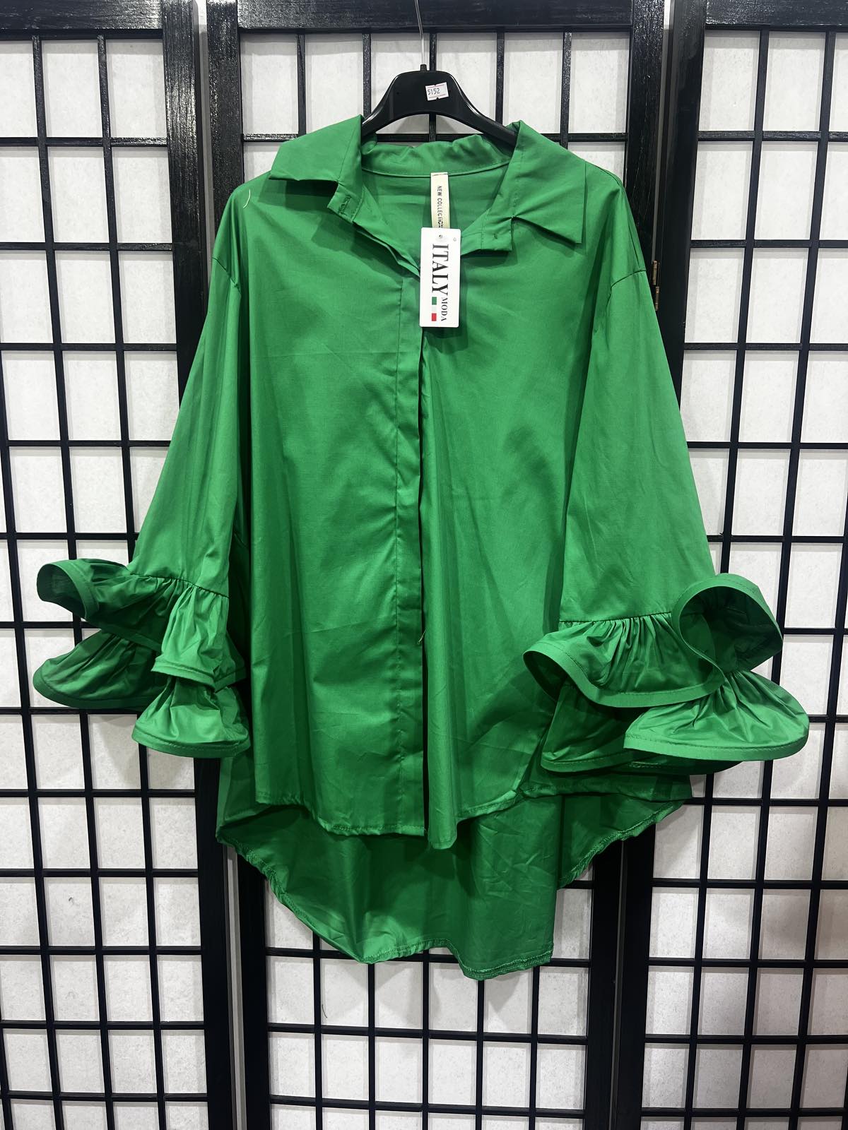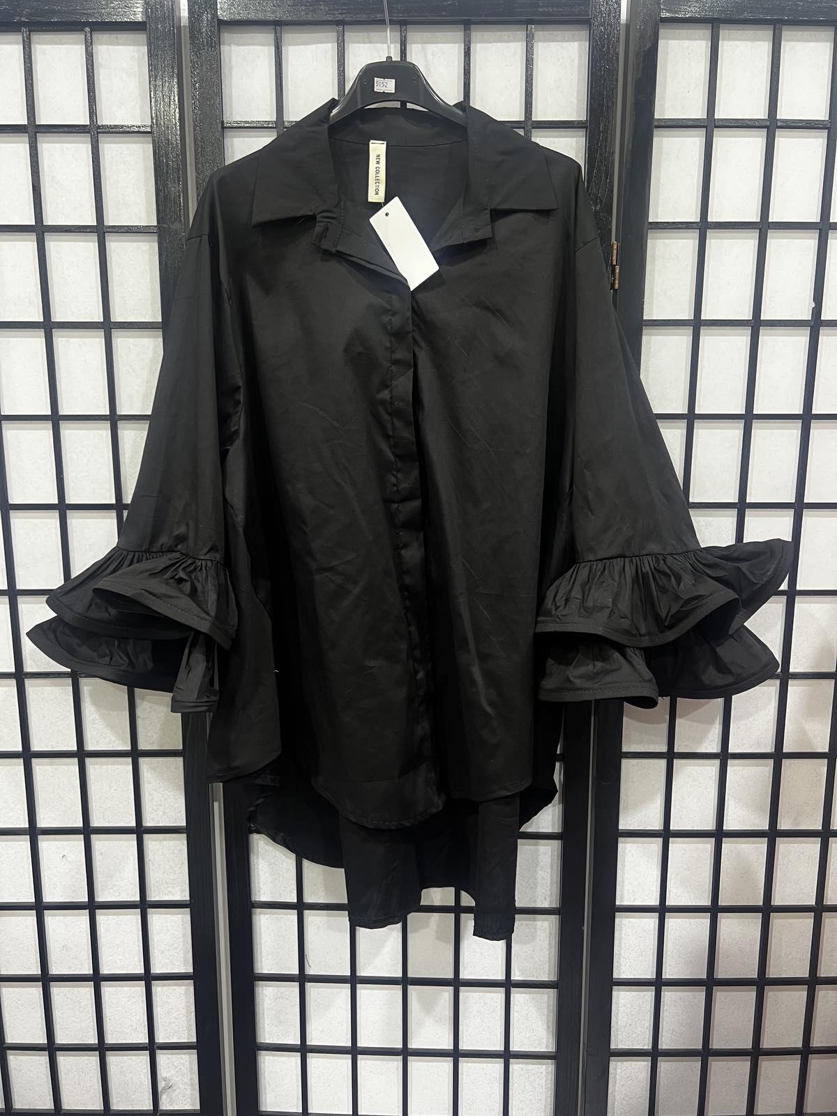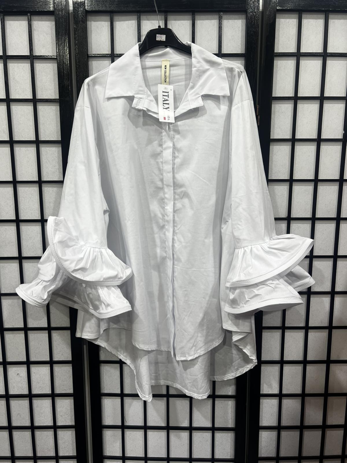 Italian High Low Plain Shirt With Double Ruffle Sleeve-5152