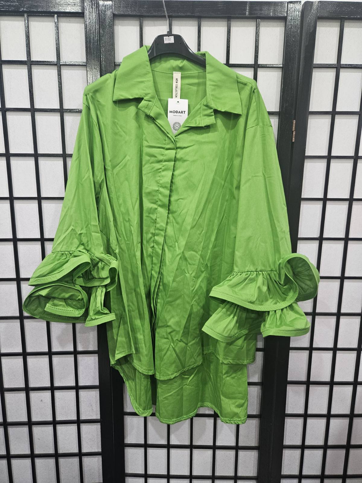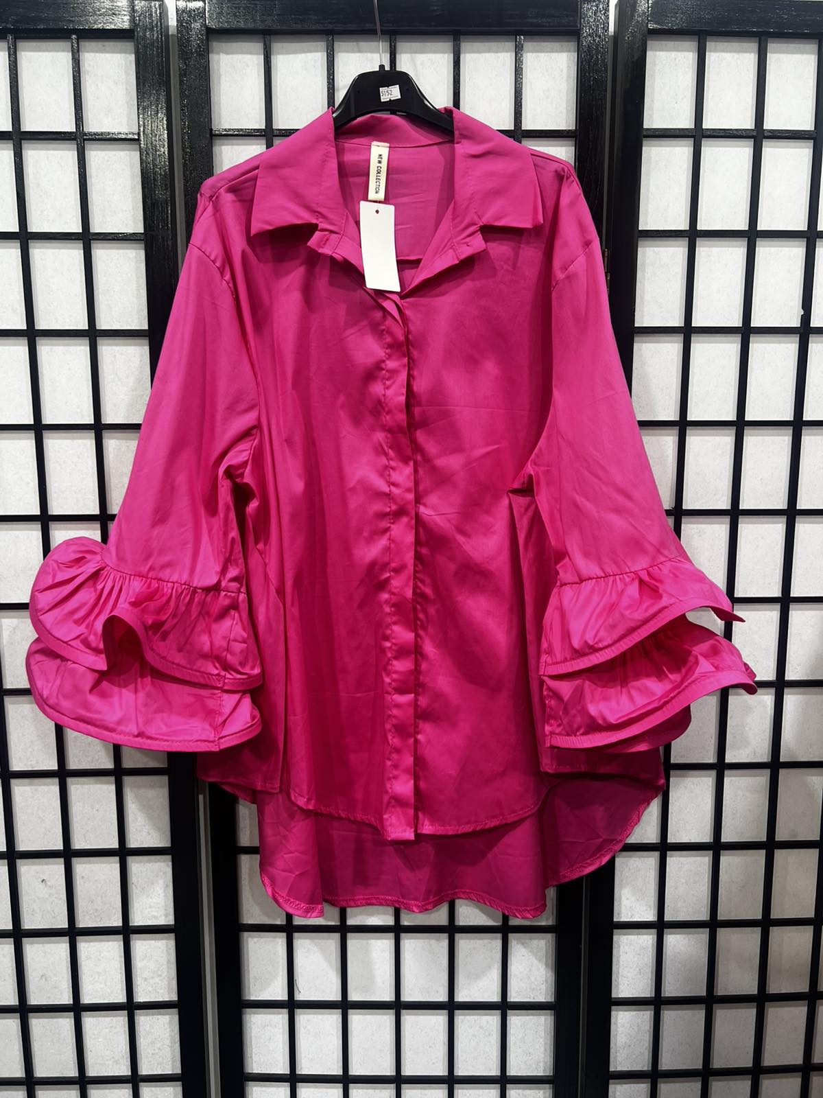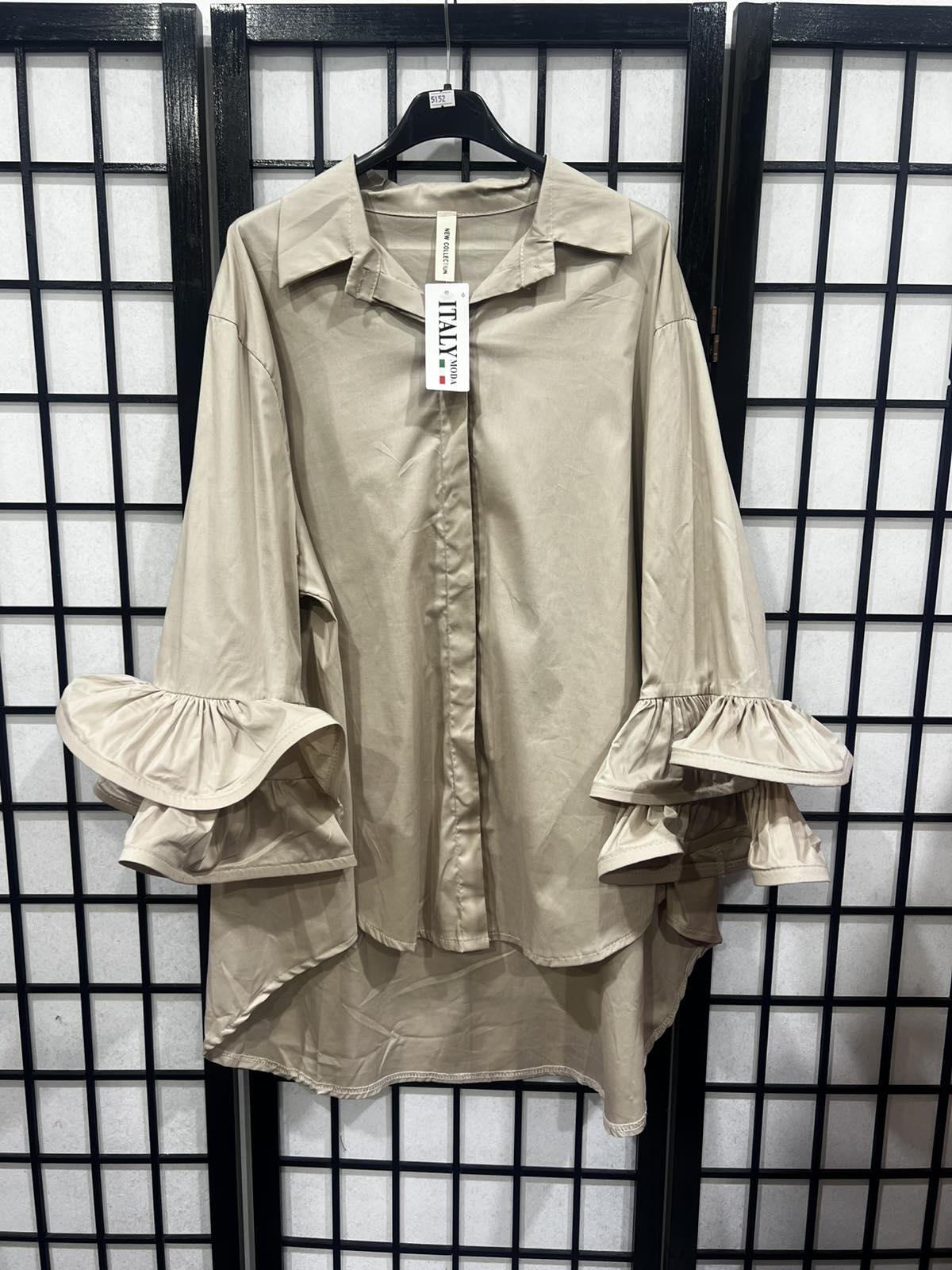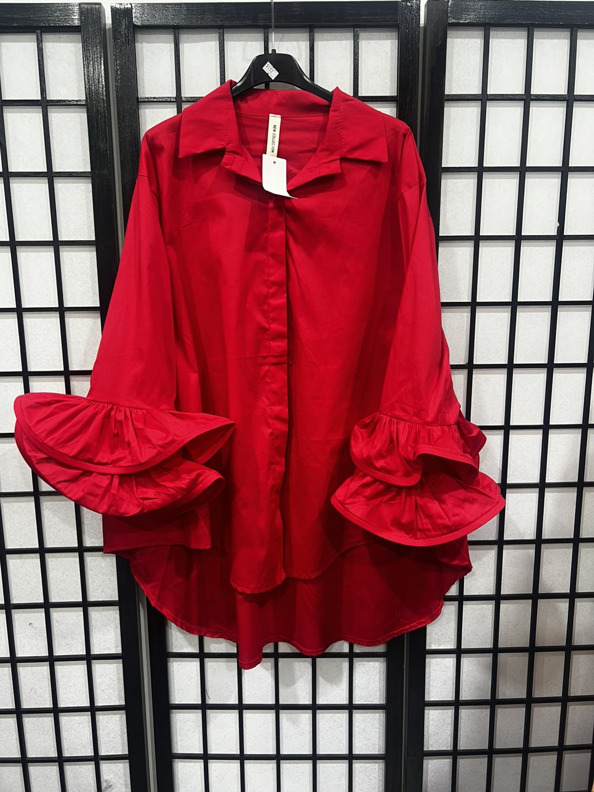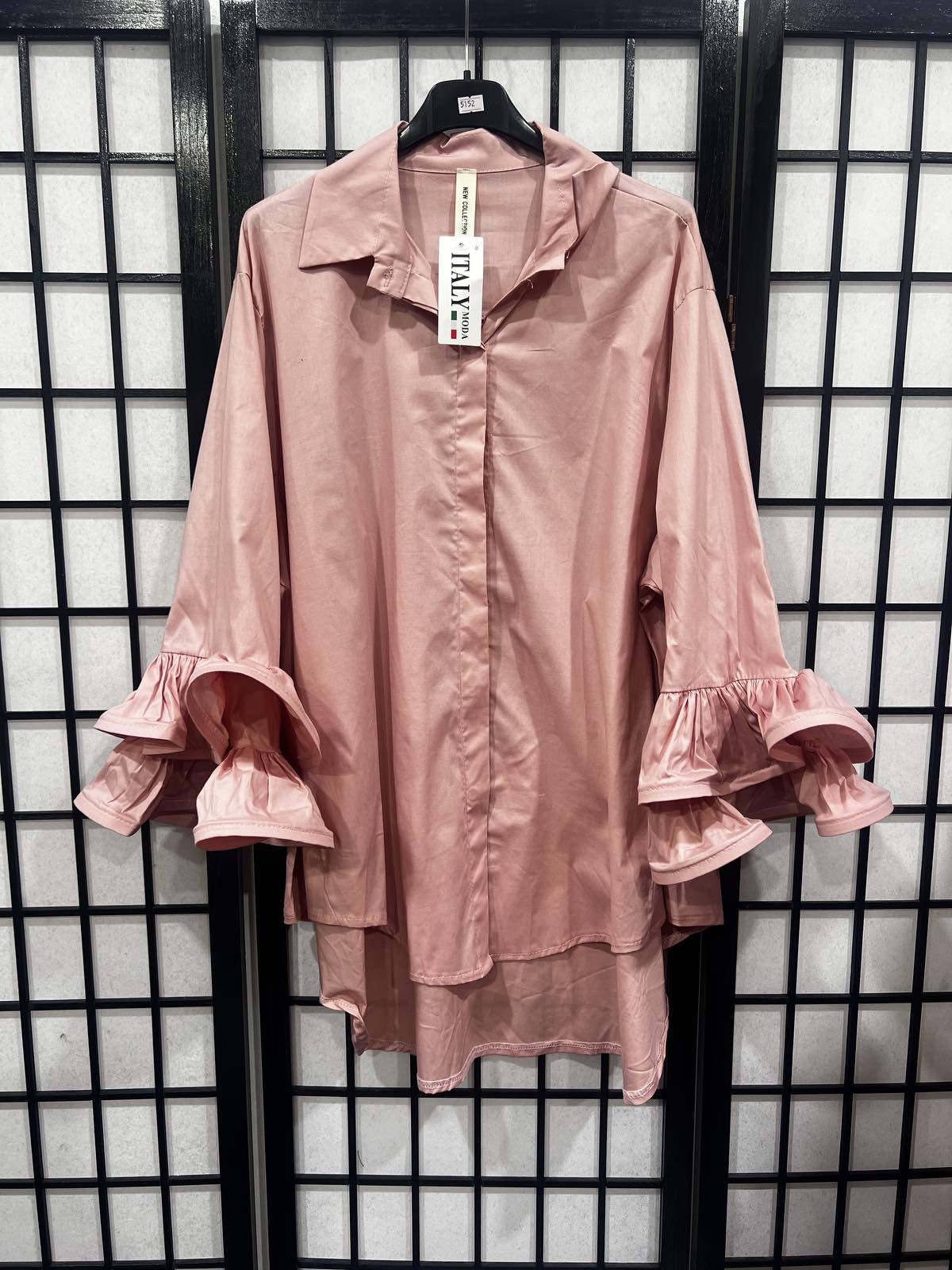 Italian High Low Plain Shirt With Double Ruffle Sleeve-5152