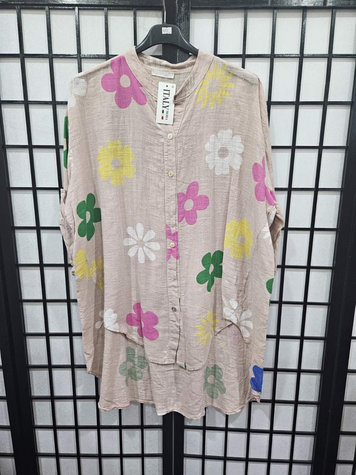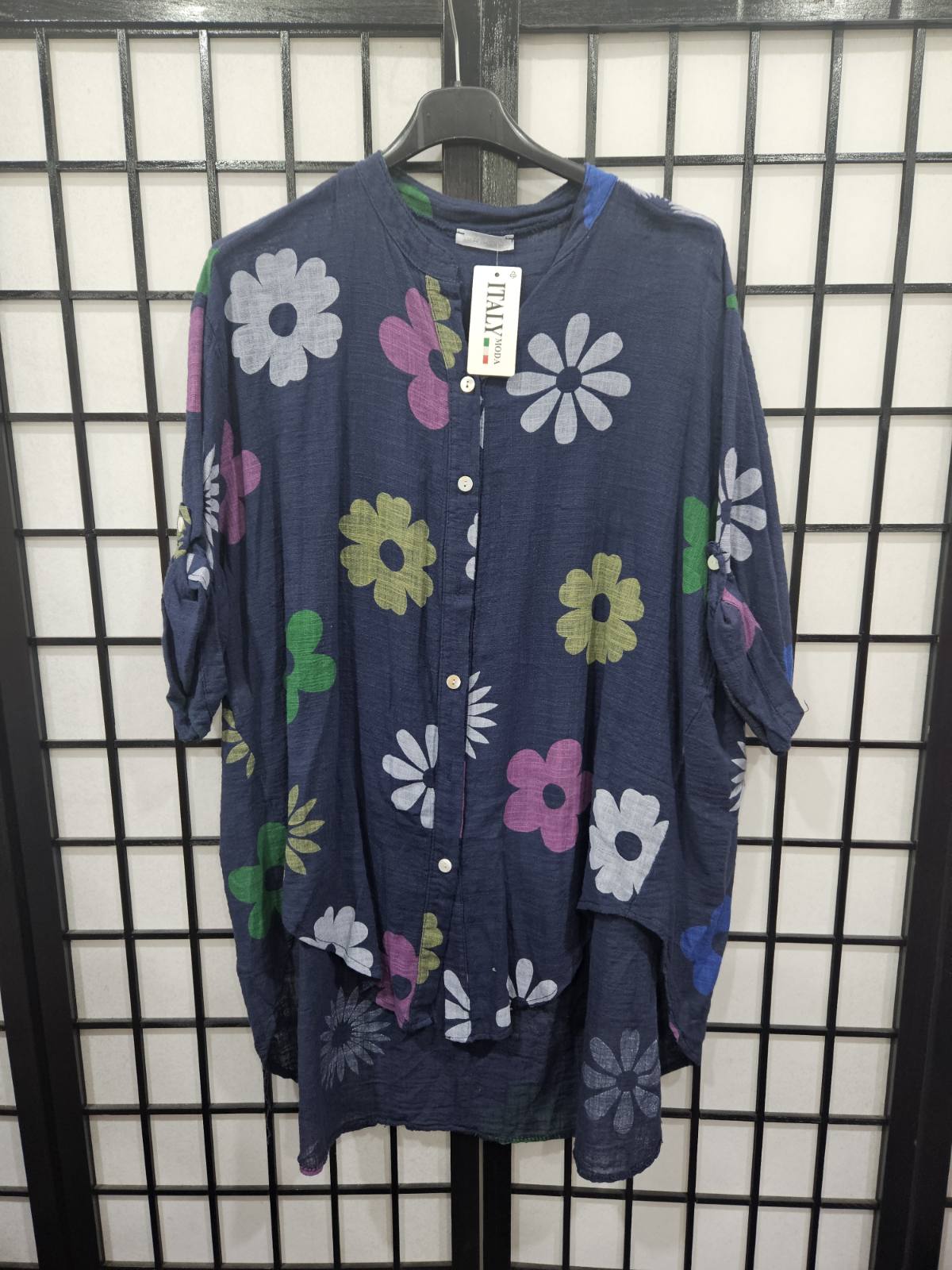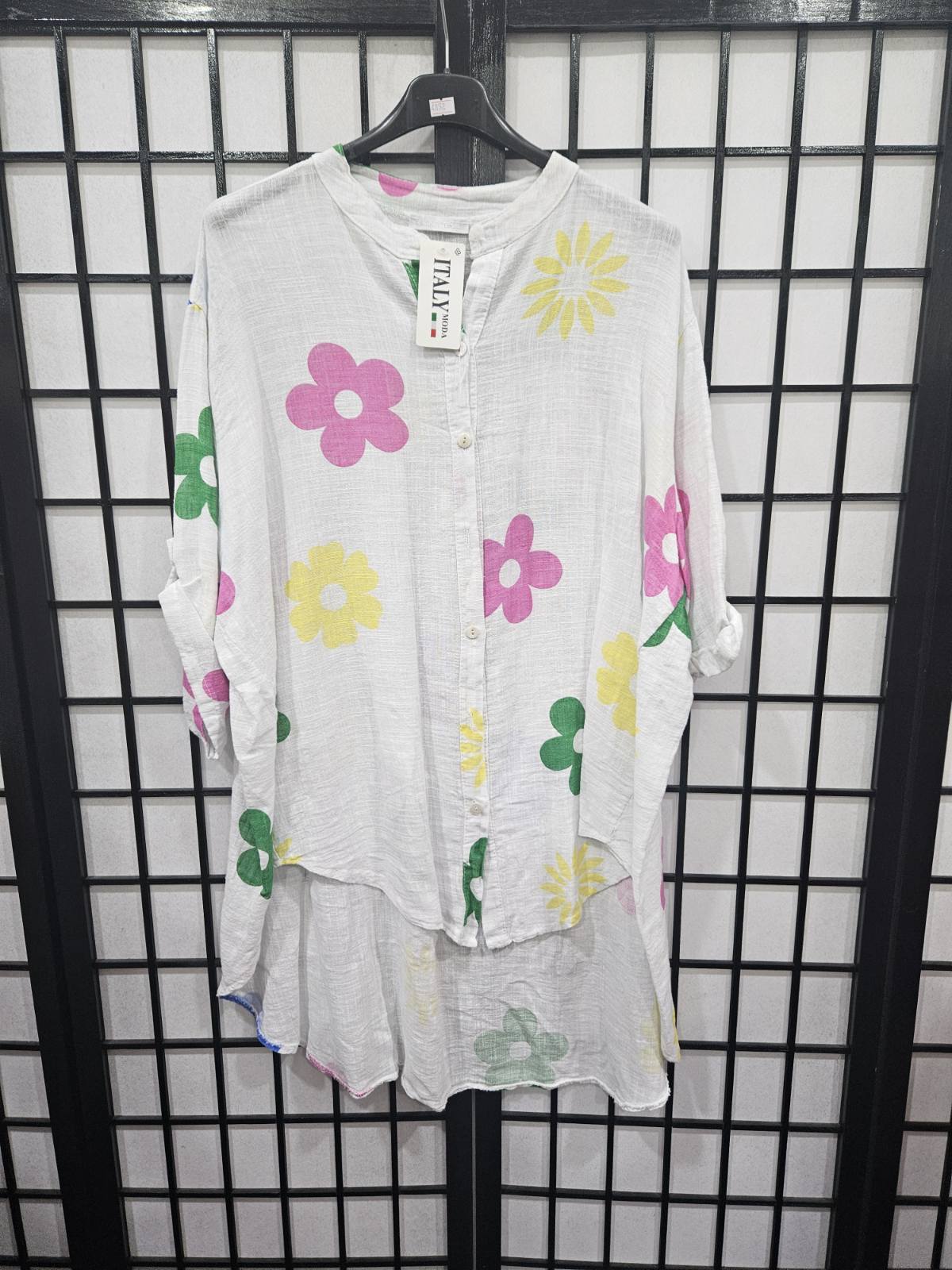 Italian Printed Short Sleeve Button Front Shirt - 4852