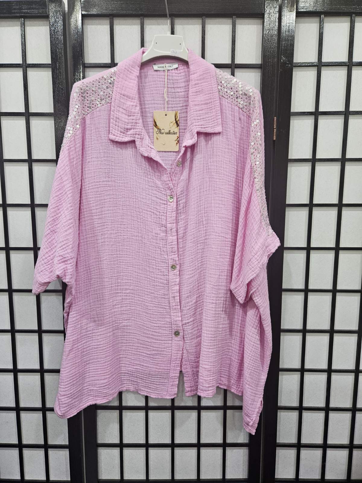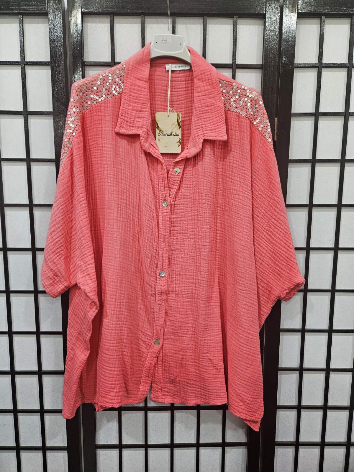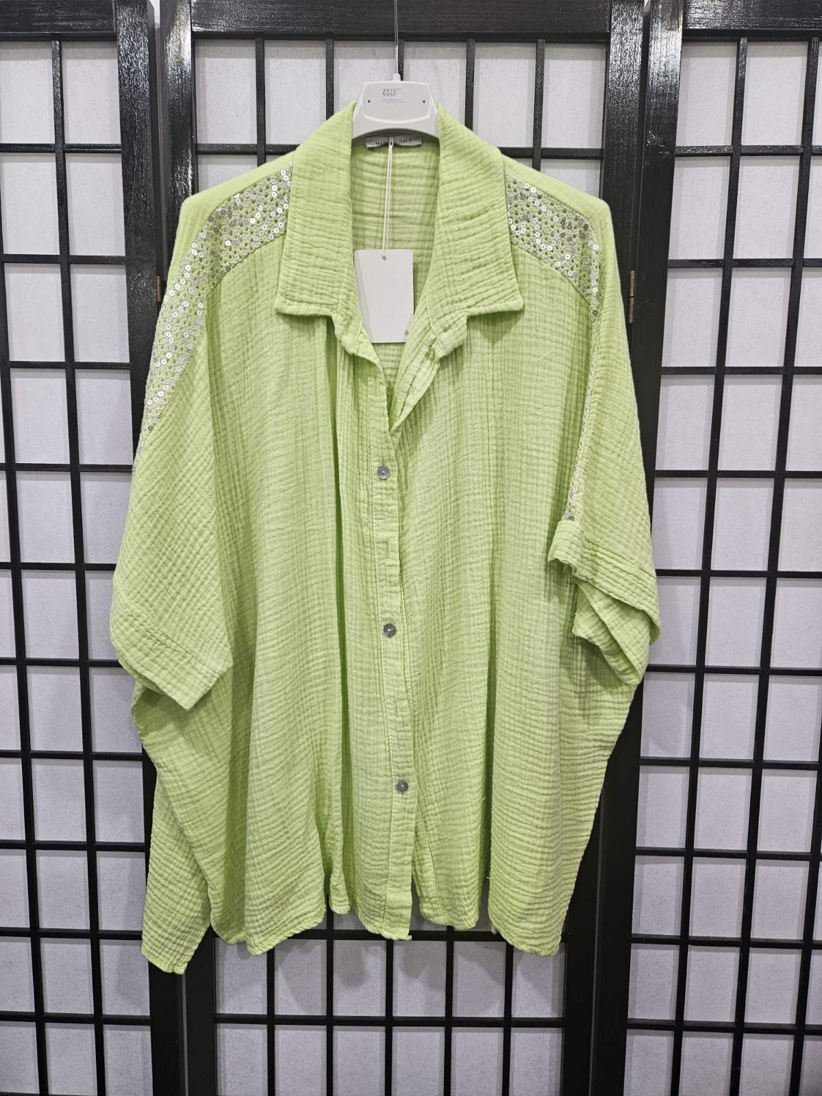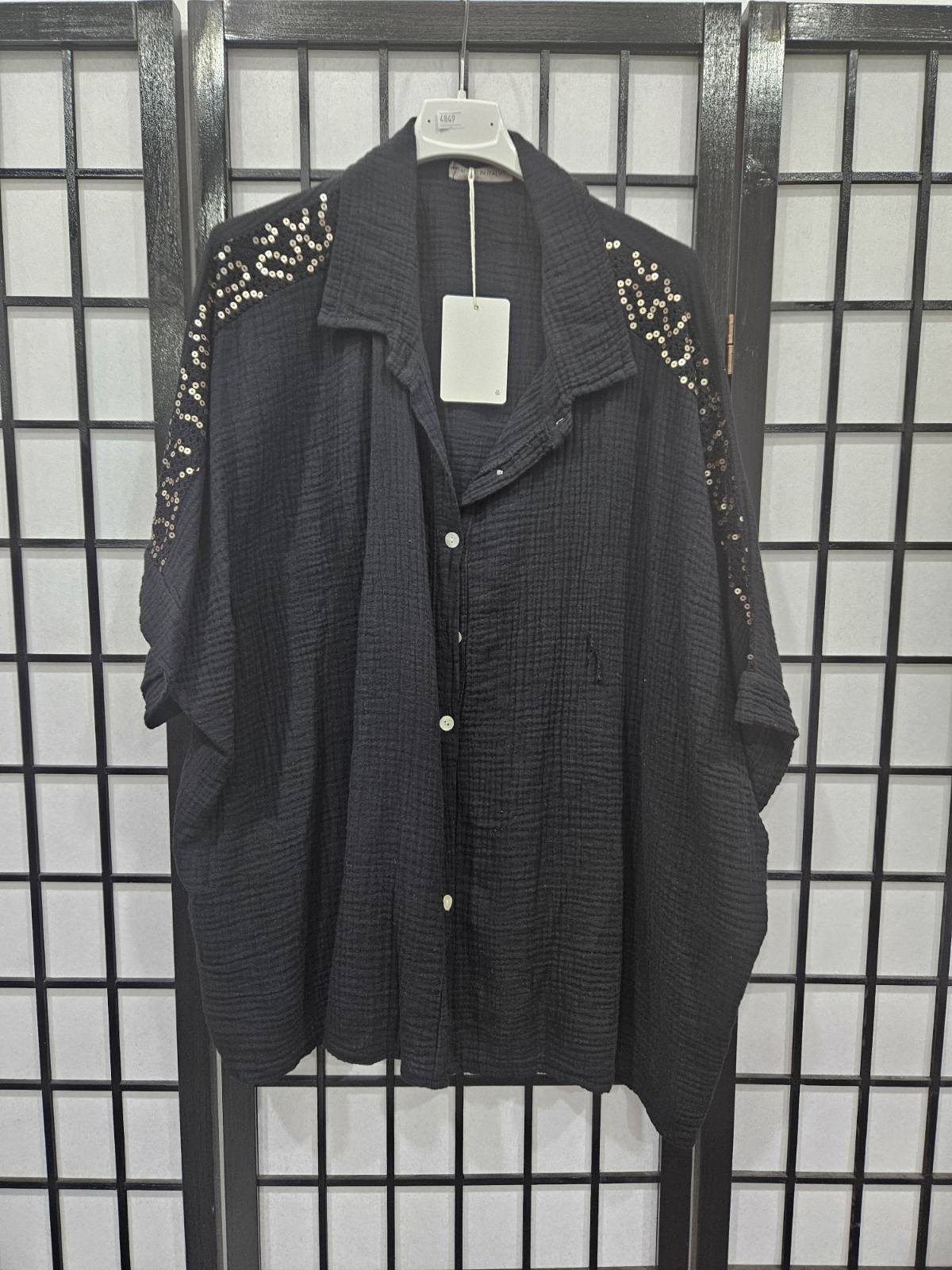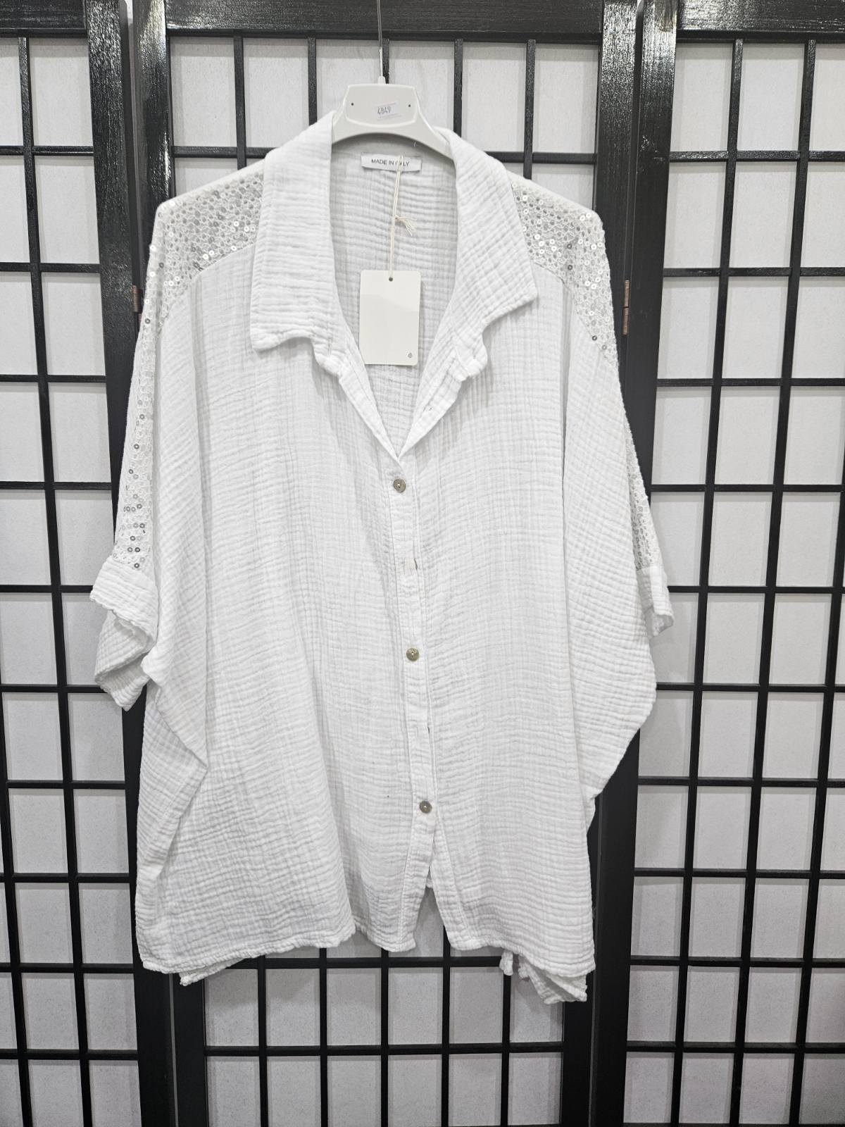 Italian Sequin Detail Short Sleeve Shirt- 4849