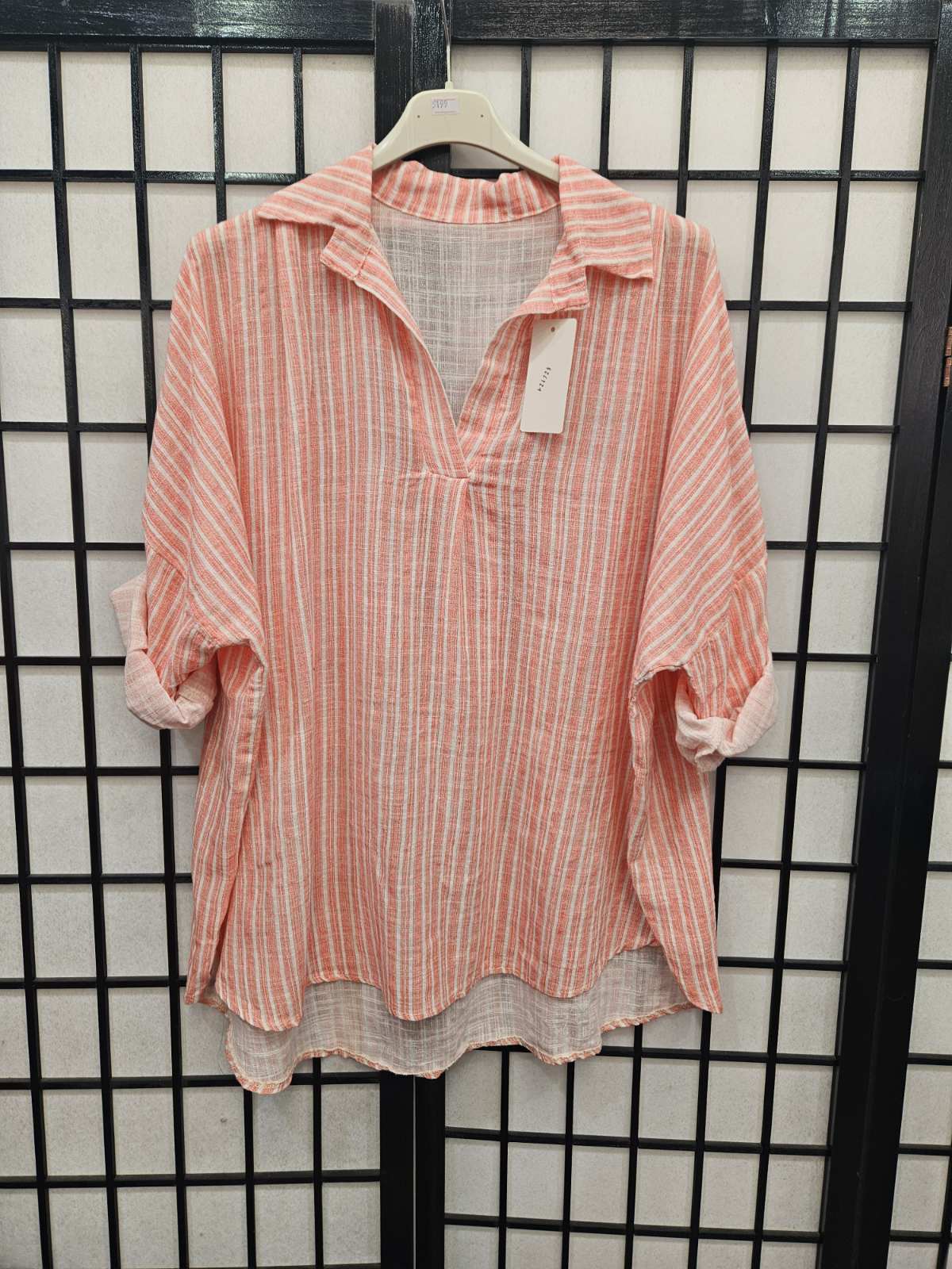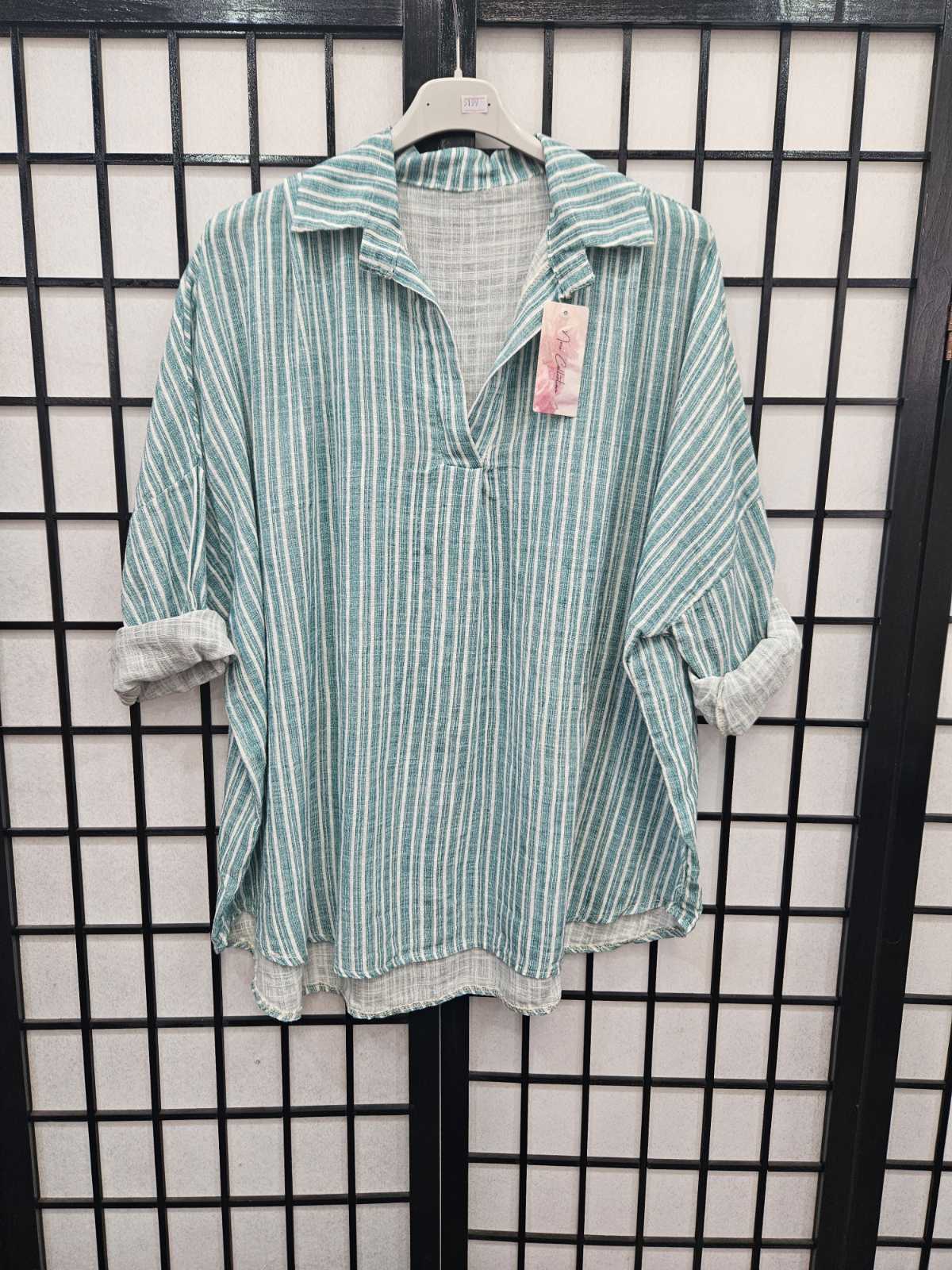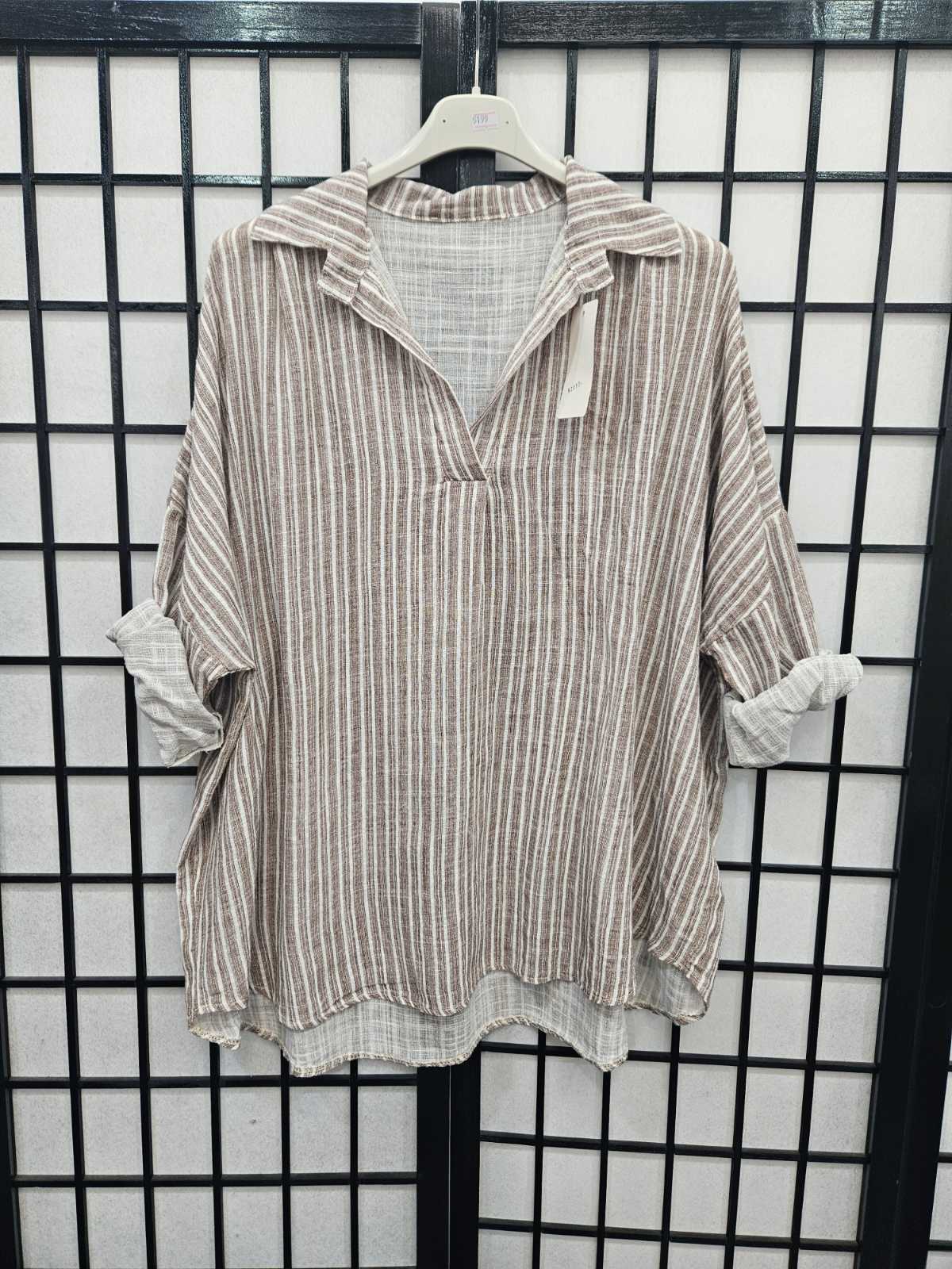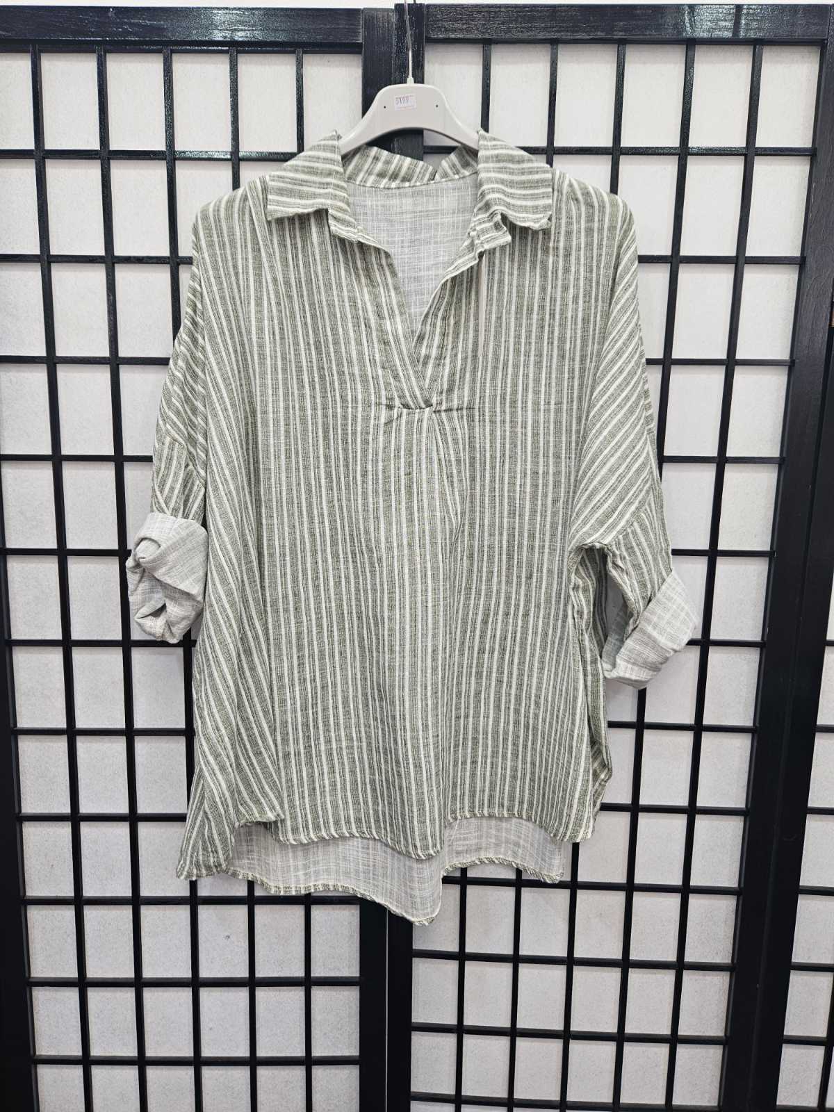 Italian Stripe Detail High Low V Neck Collar Top- 5199