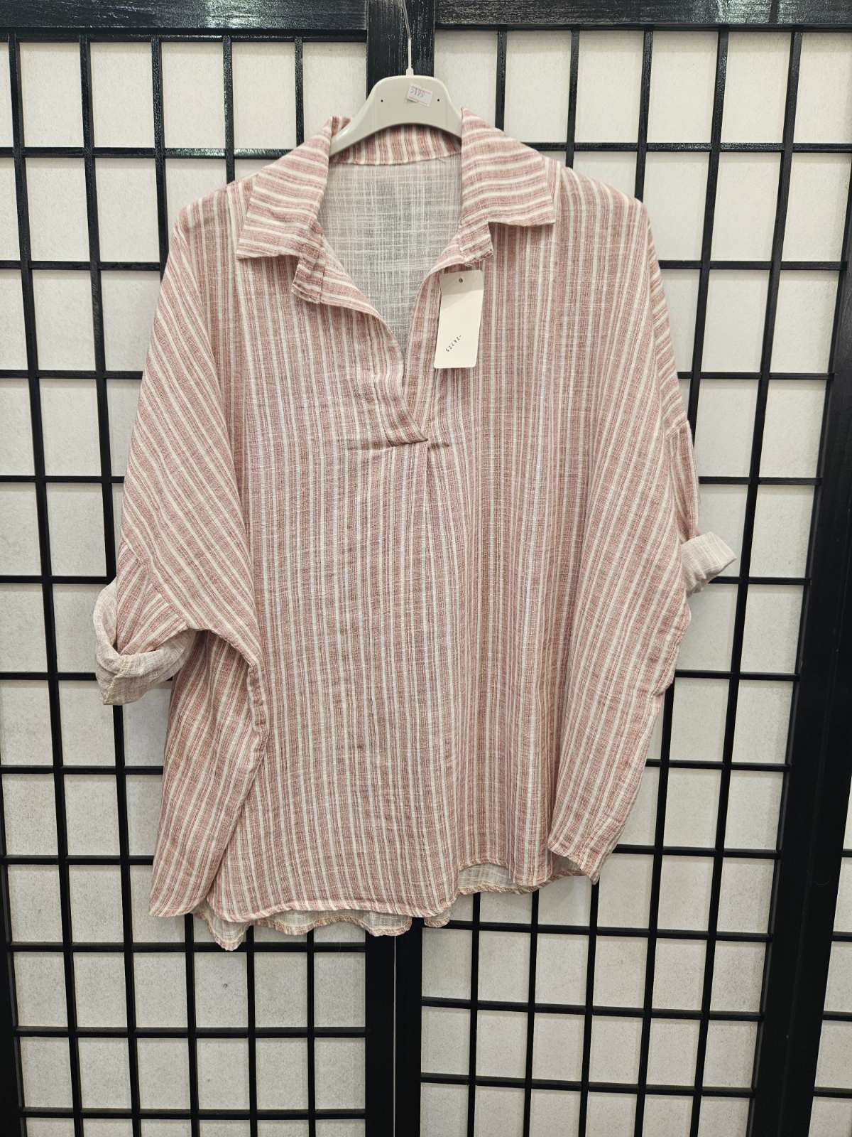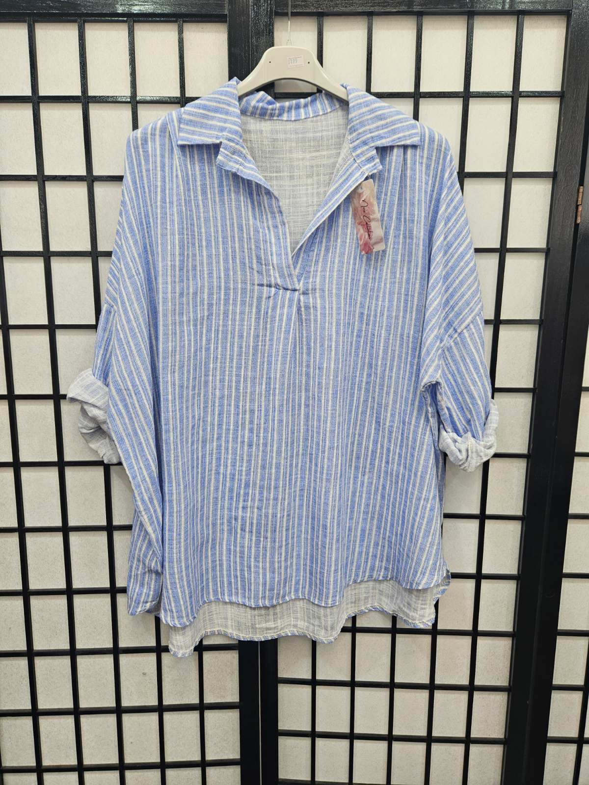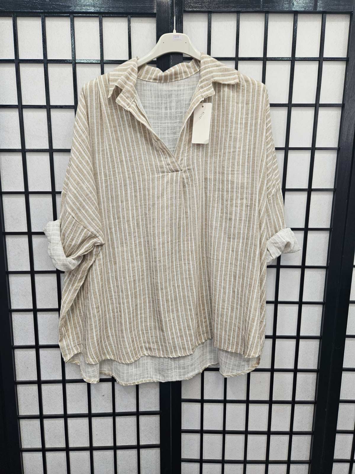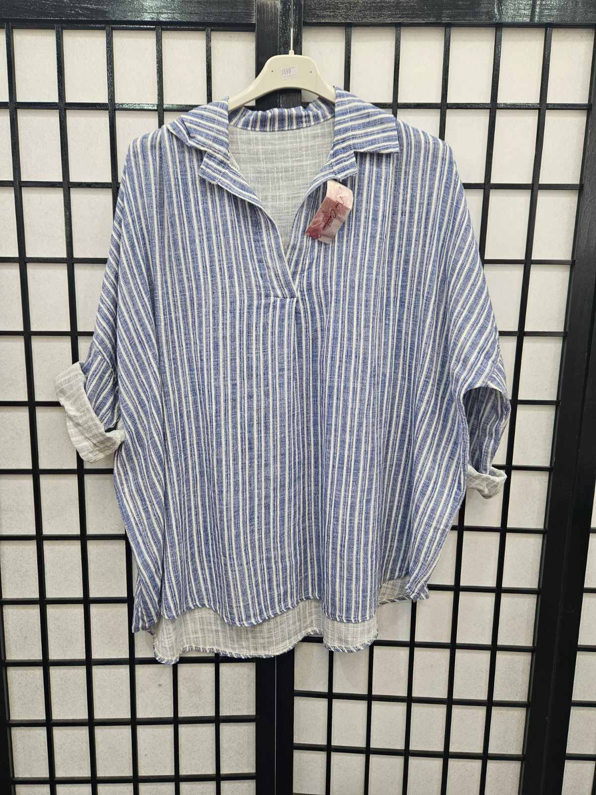 Italian Stripe Detail High Low V Neck Collar Top- 5199