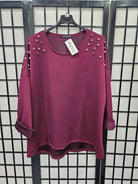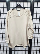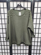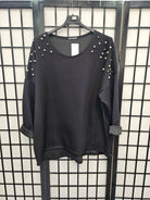 Italian V Neck Pearl Shoulder Detail High Low Top - 5262