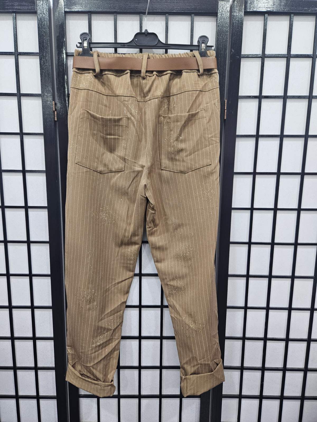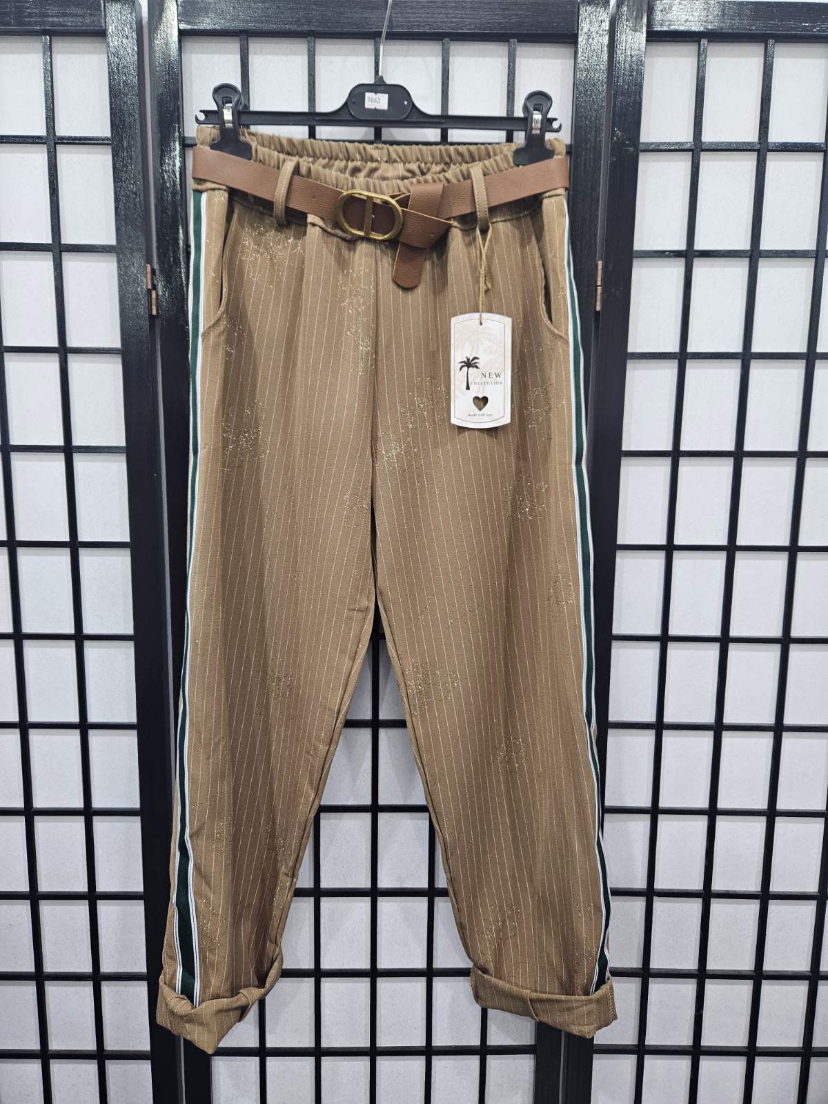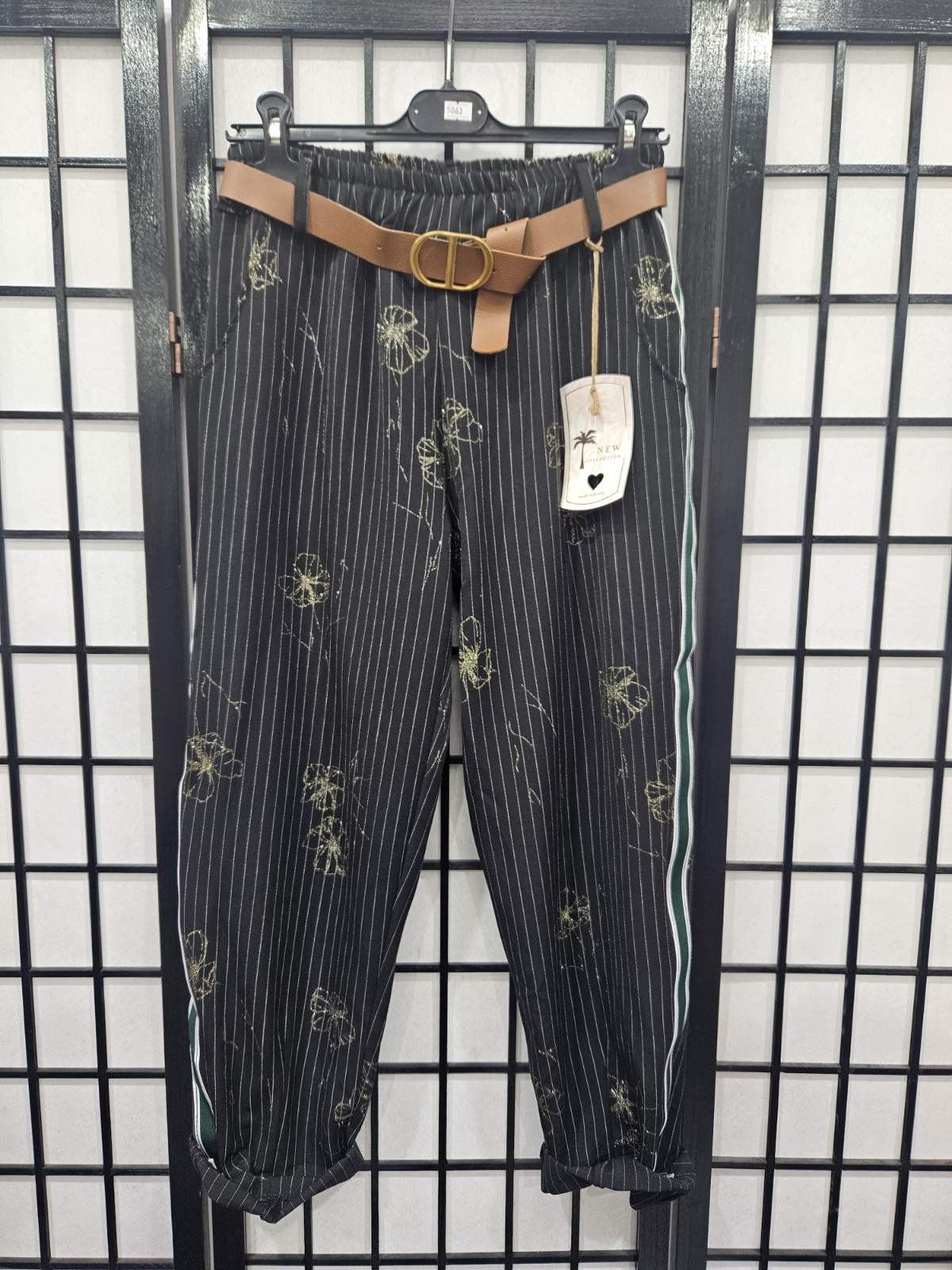 Italian Pin Stripe Trouser With Flower Detail And Stripe Down The Side - 5063