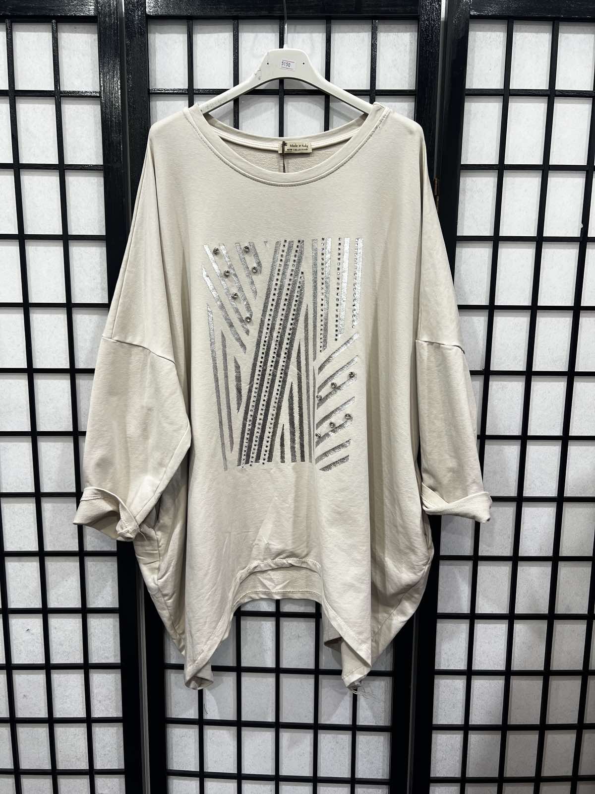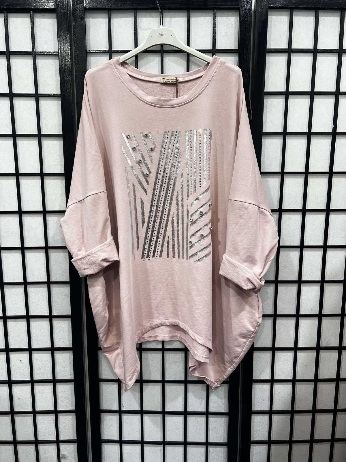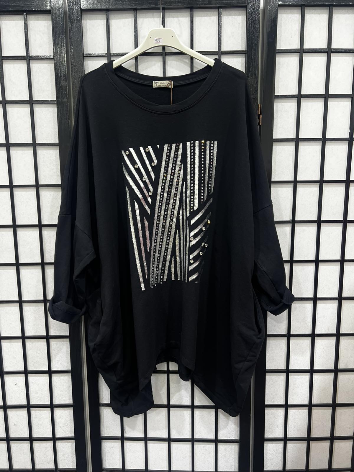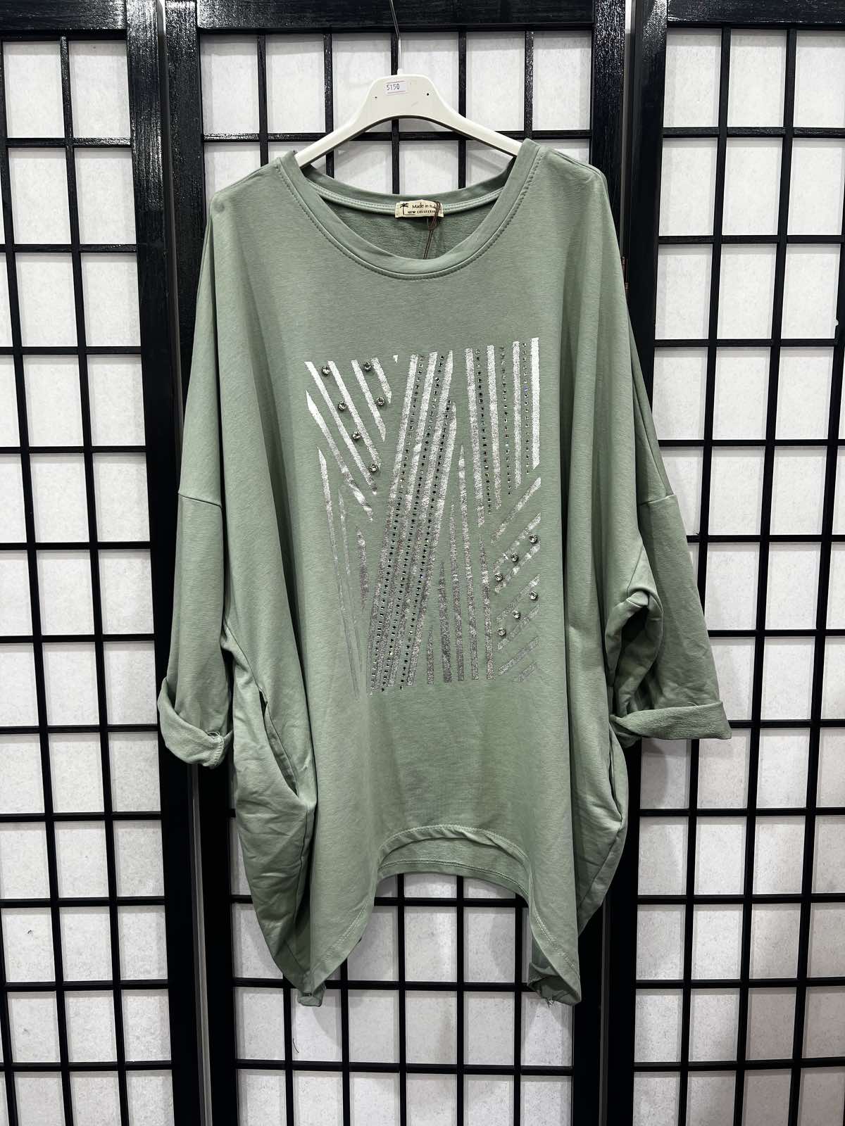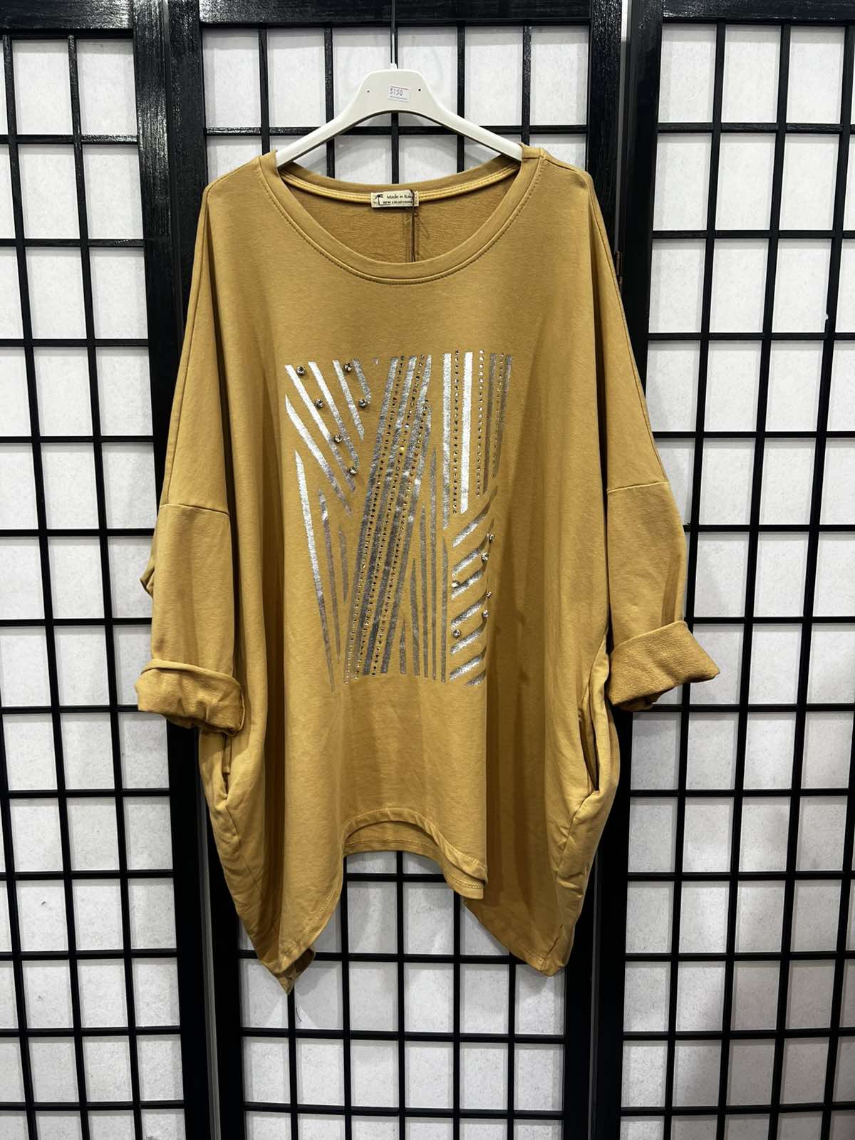 Italian Diamante Front Detail Tunic With Pockets-5150