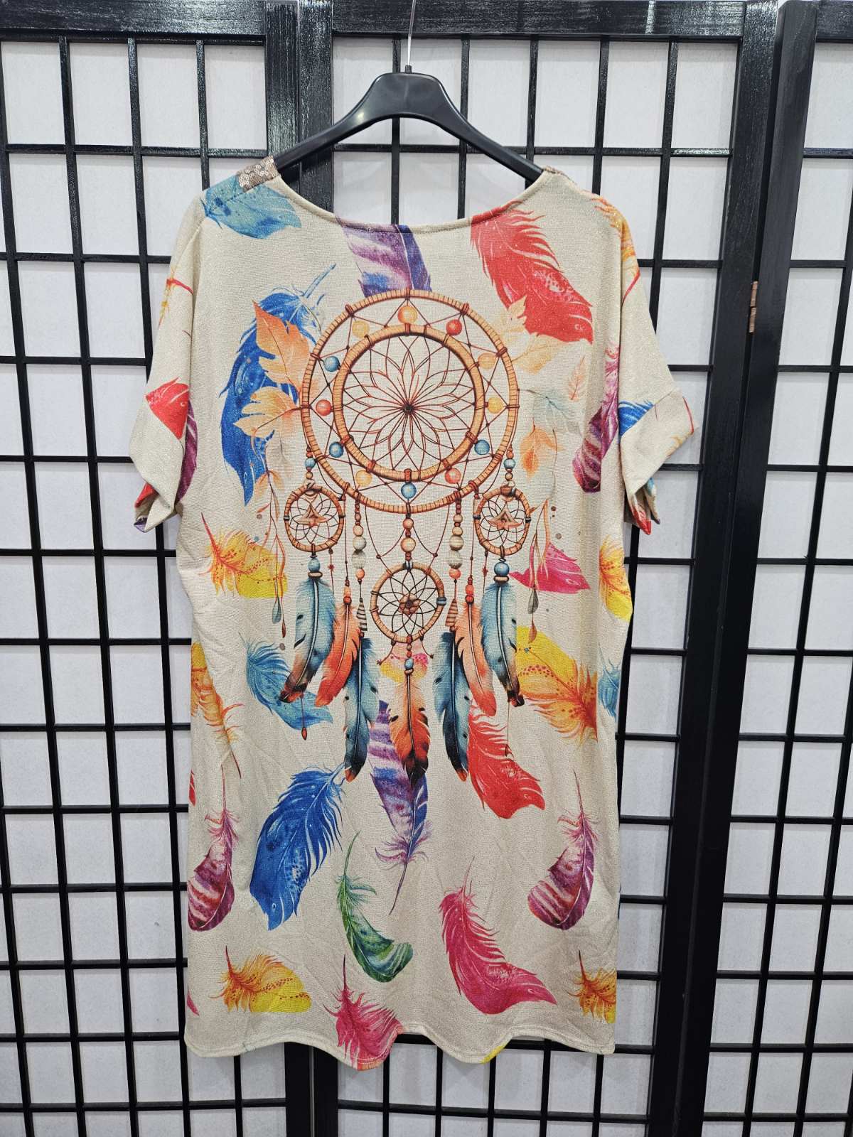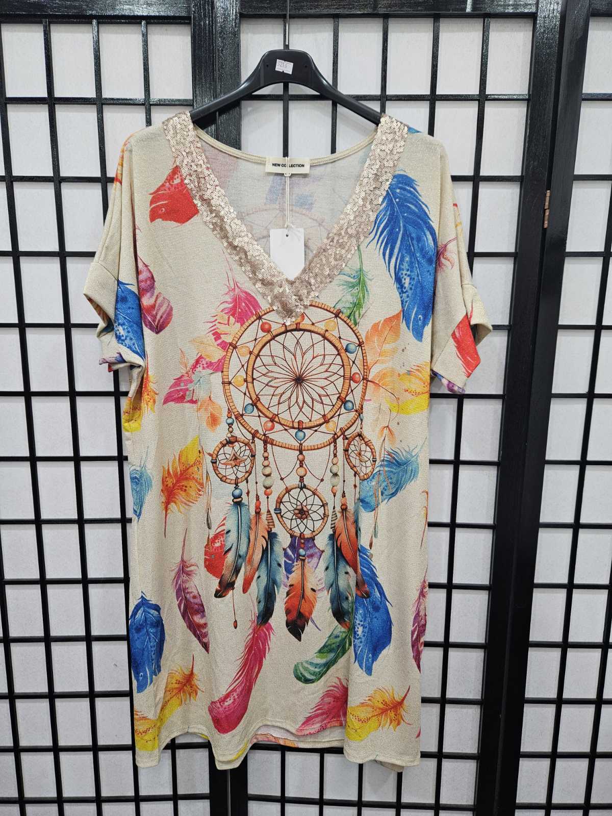 Italian Short Sleeve Sequin V Neck Printed Knitted Tunic - 5216