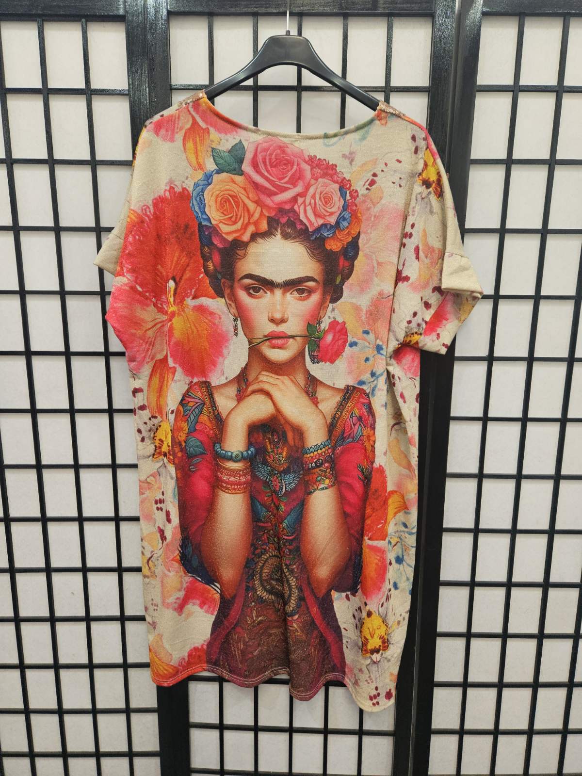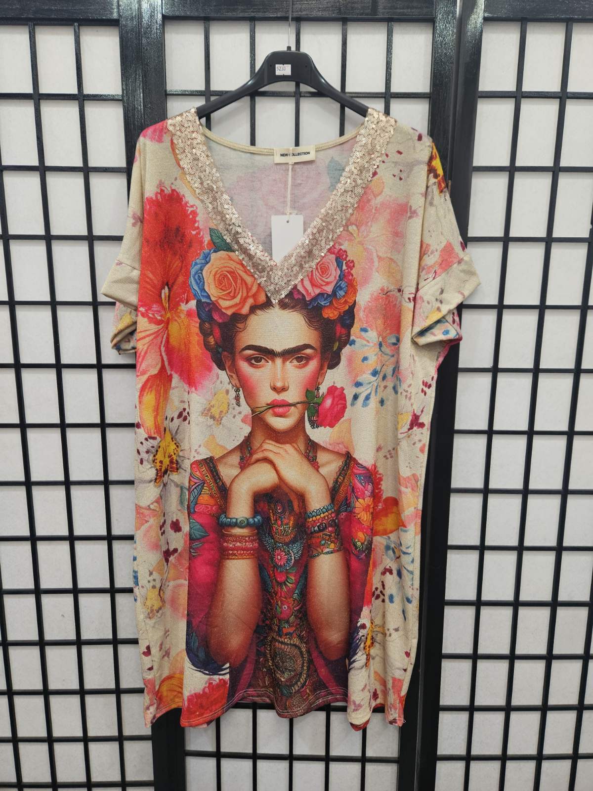 Italian Short Sleeve Sequin V Neck Printed Knitted Tunic - 5230